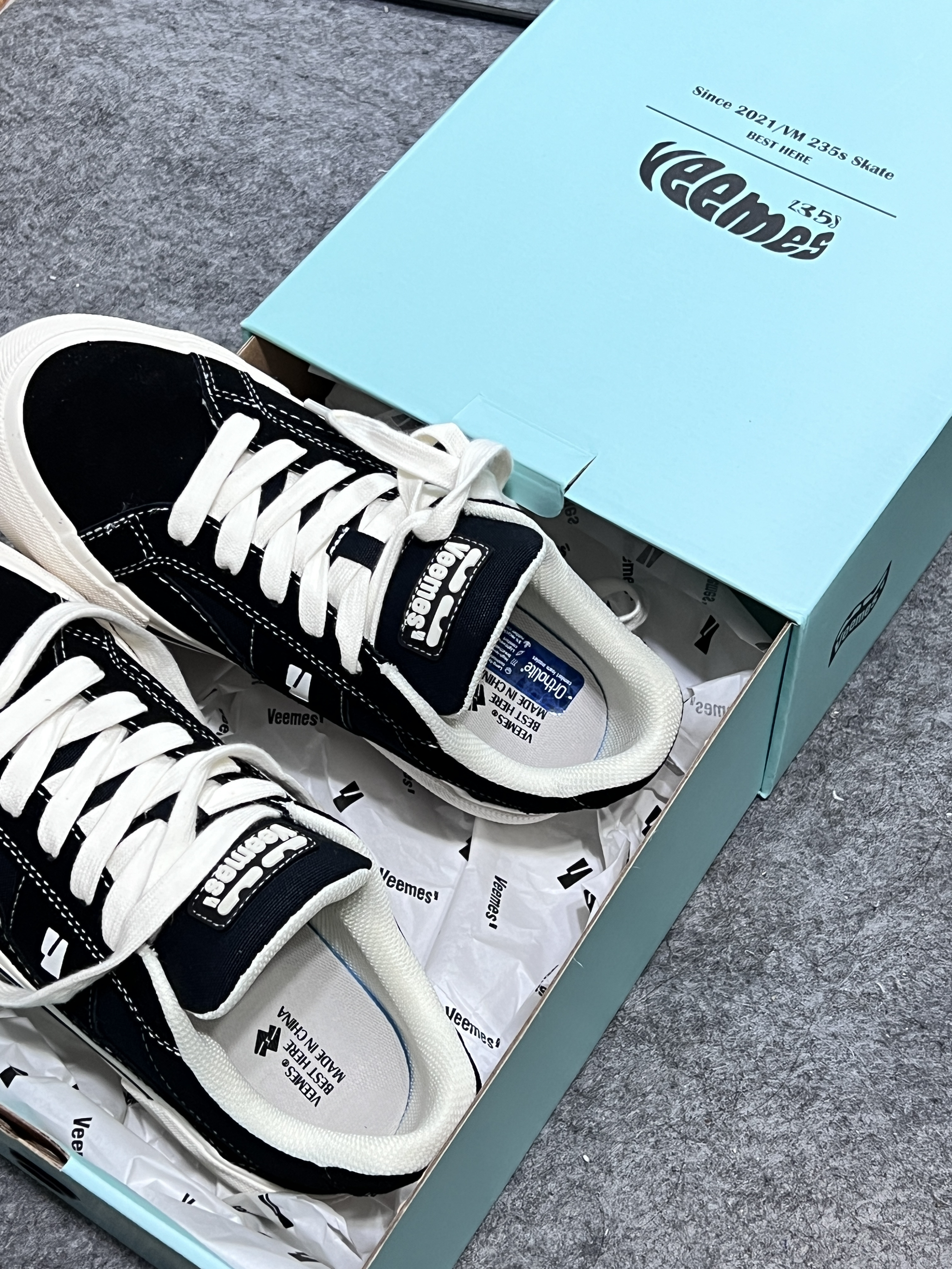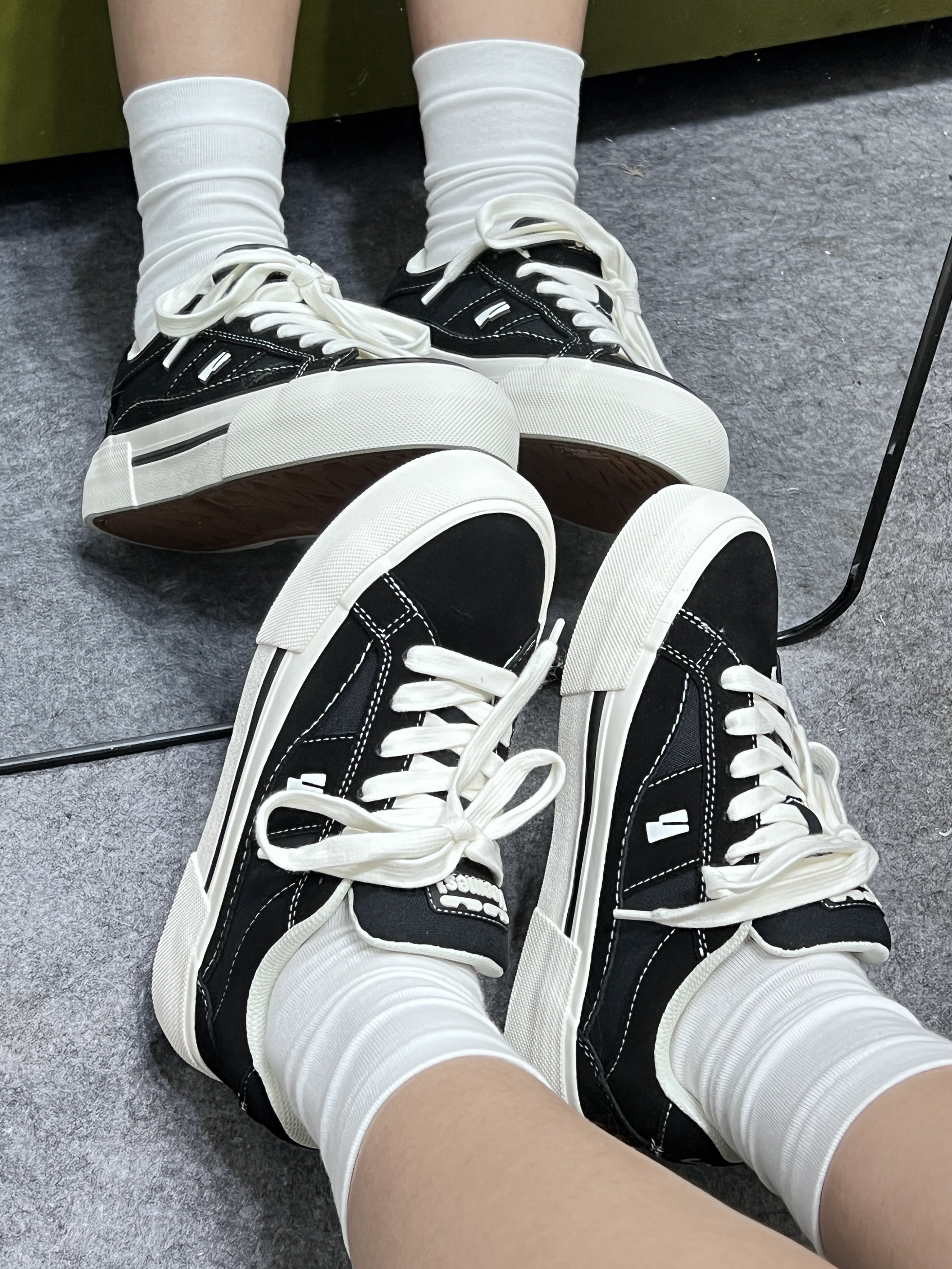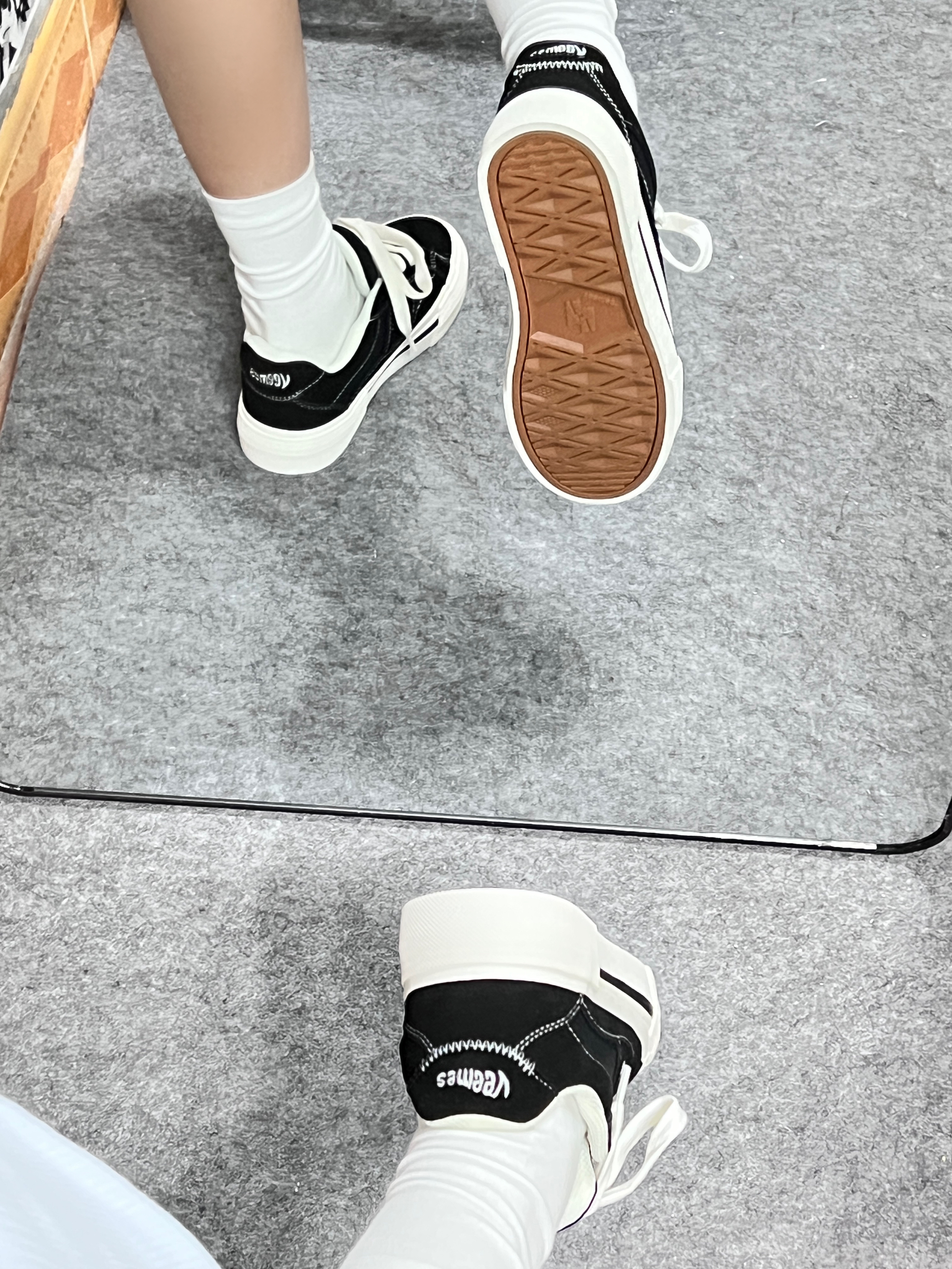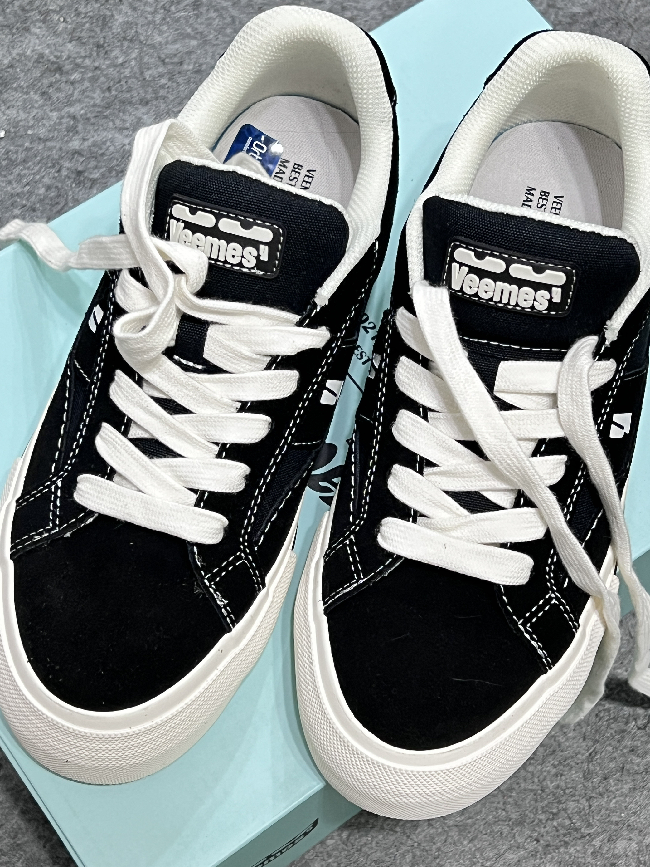 经典永不过时 黑白配色的板鞋百搭无敌了 鞋面的材质是那种帆布的 版型设计很耐看 有减震鞋垫 穿着很舒服 一点也不感觉磨脚 日常或者通勤穿着都非常合适 时尚又休闲 而且码数很准 太喜欢啦~#veemes