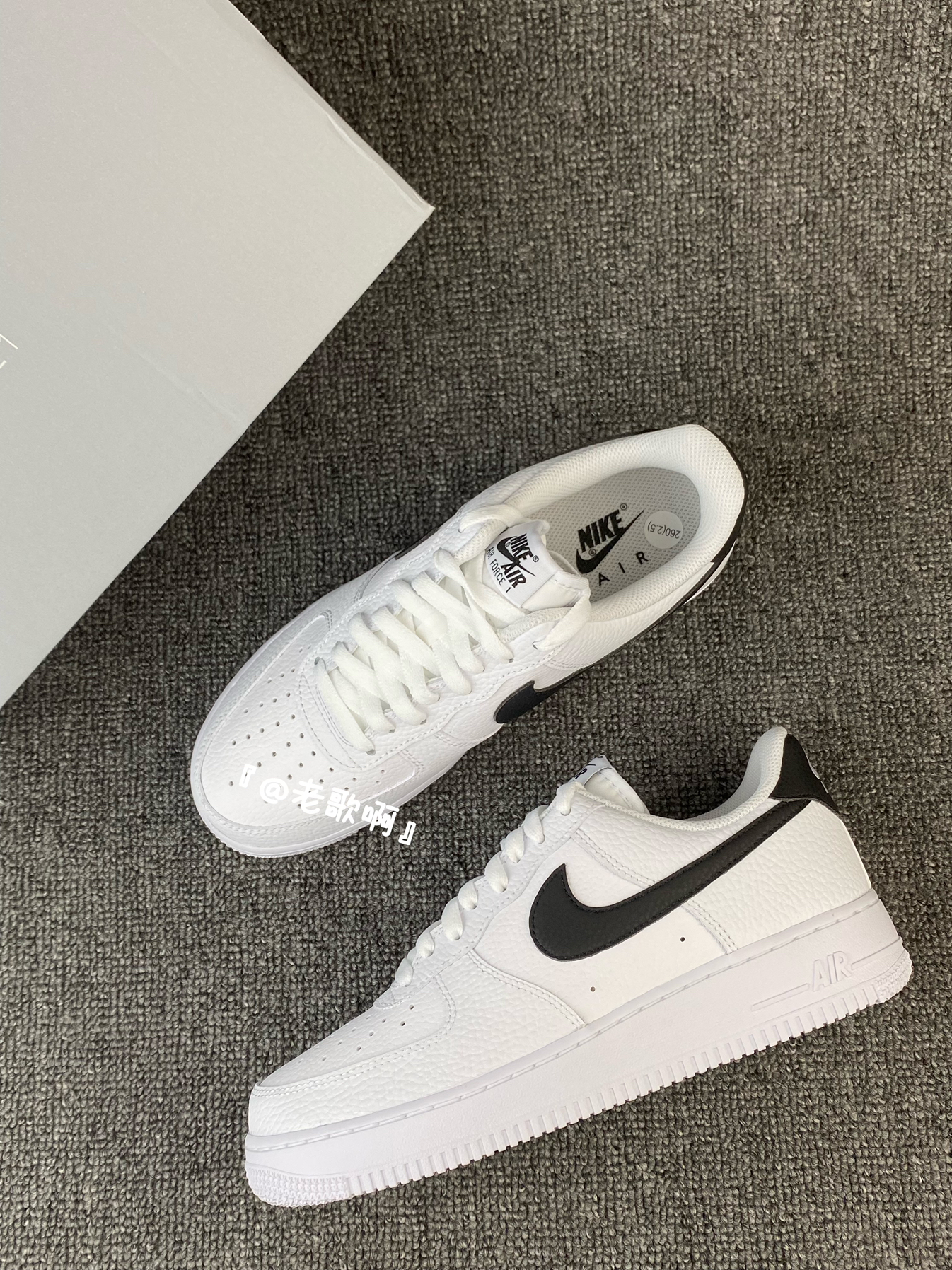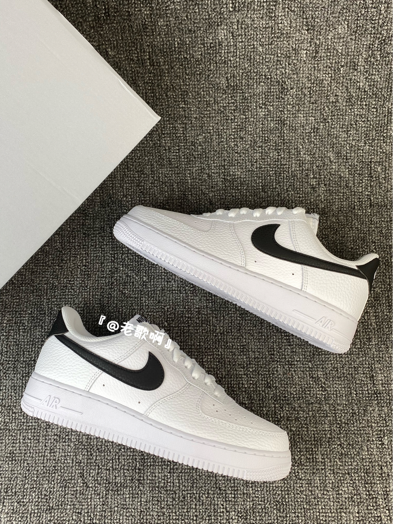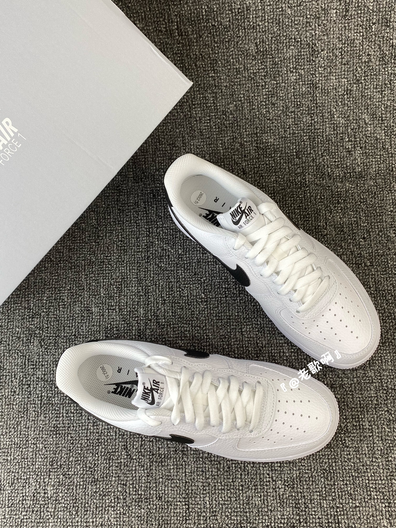 小白鞋中空军一号可以说是在Top榜上了吧! 纯白的鞋身搭配鞋侧黑色的Swoosh 整体很干净清爽,同时也很百搭✨ 而这款皮面是荔枝纹路的 清晰可见的荔枝纹路质感很好也很细腻~ 上脚脚感不错,可以说是越穿越舒适 尺码方面按平常穿的选择就可以啦!