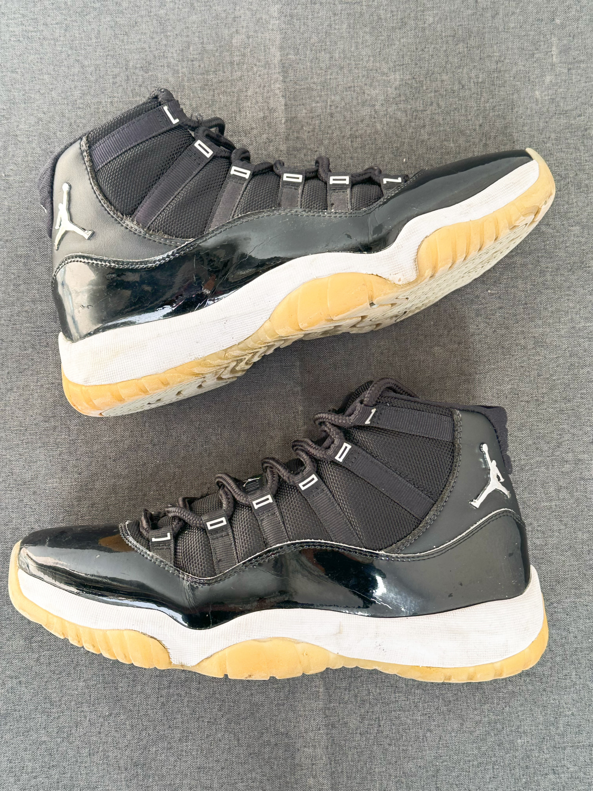 今天分享一双AJ11大魔王高帮, 鞋子外侧是漆皮的设计,让双大魔王更加蹭光瓦亮, 鞋底依然是水晶底,这也是唯一的缺点,氧化发黄。 刚开始还是不习惯穿这双高帮的重鞋子,可是上脚后发现不管穿哪种裤子都很酷,无论是牛仔裤还是工装裤又或者是运动卫裤。 尺码上可以选择大半码,刚开始穿还是比较磨后跟的,穿开了就好了。