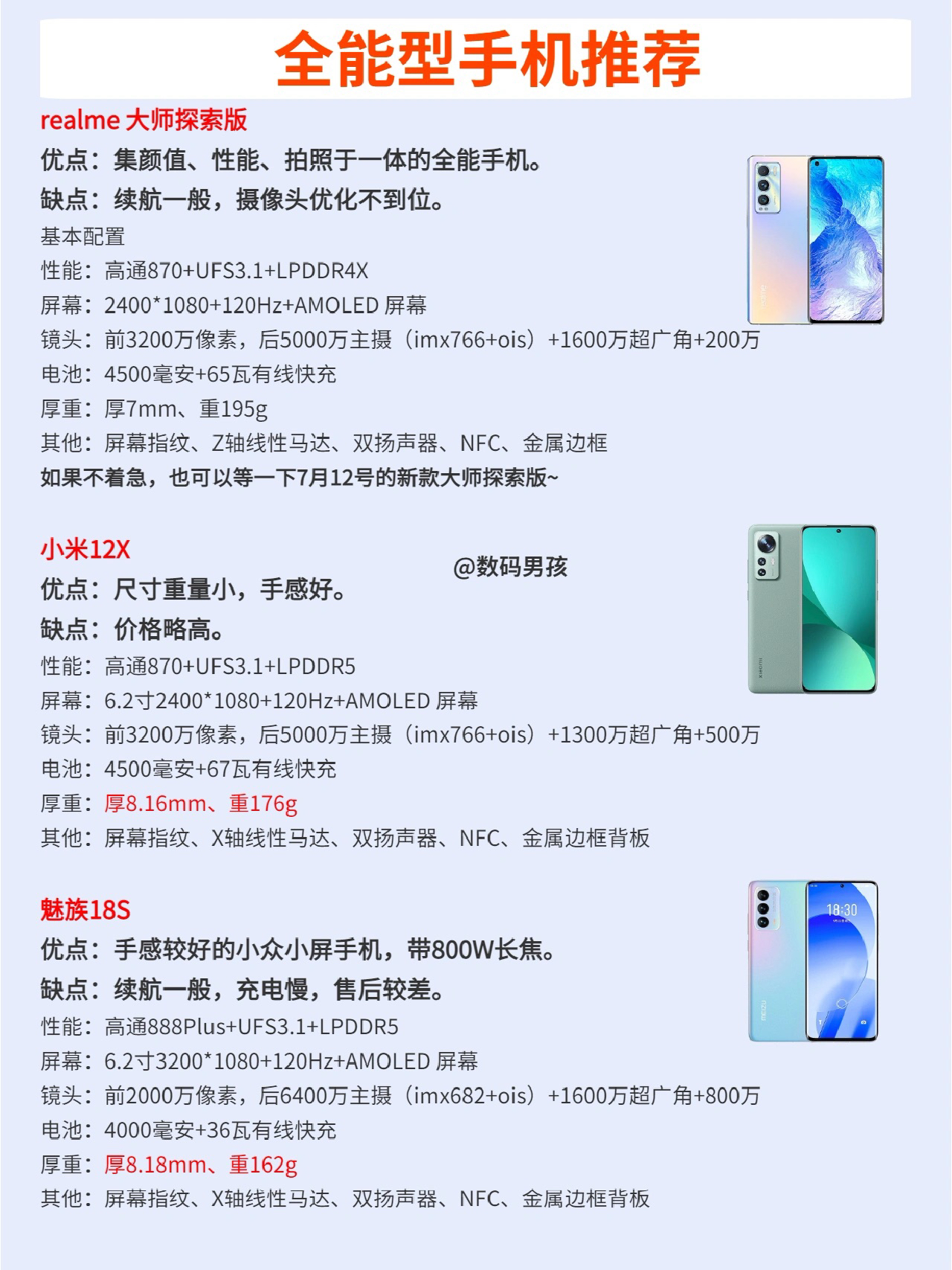 本篇笔记关联了OPPO Reno6 Pro+ 5G 手机 闪充 高感屏 拍照 四摄 全网通 全影像 高刷 夏日晴海、realme/真我 GT 大师探索版 5G 手机 全网通 闪充 晨曦、MI/小米 12X 5G 手机 全网通 超视感屏 高刷 快充 主摄 超清 黄金手感 拍照 疾速影像 全面屏幕 紫色等商品,为用户提供真实的使用体验和购买参考。
