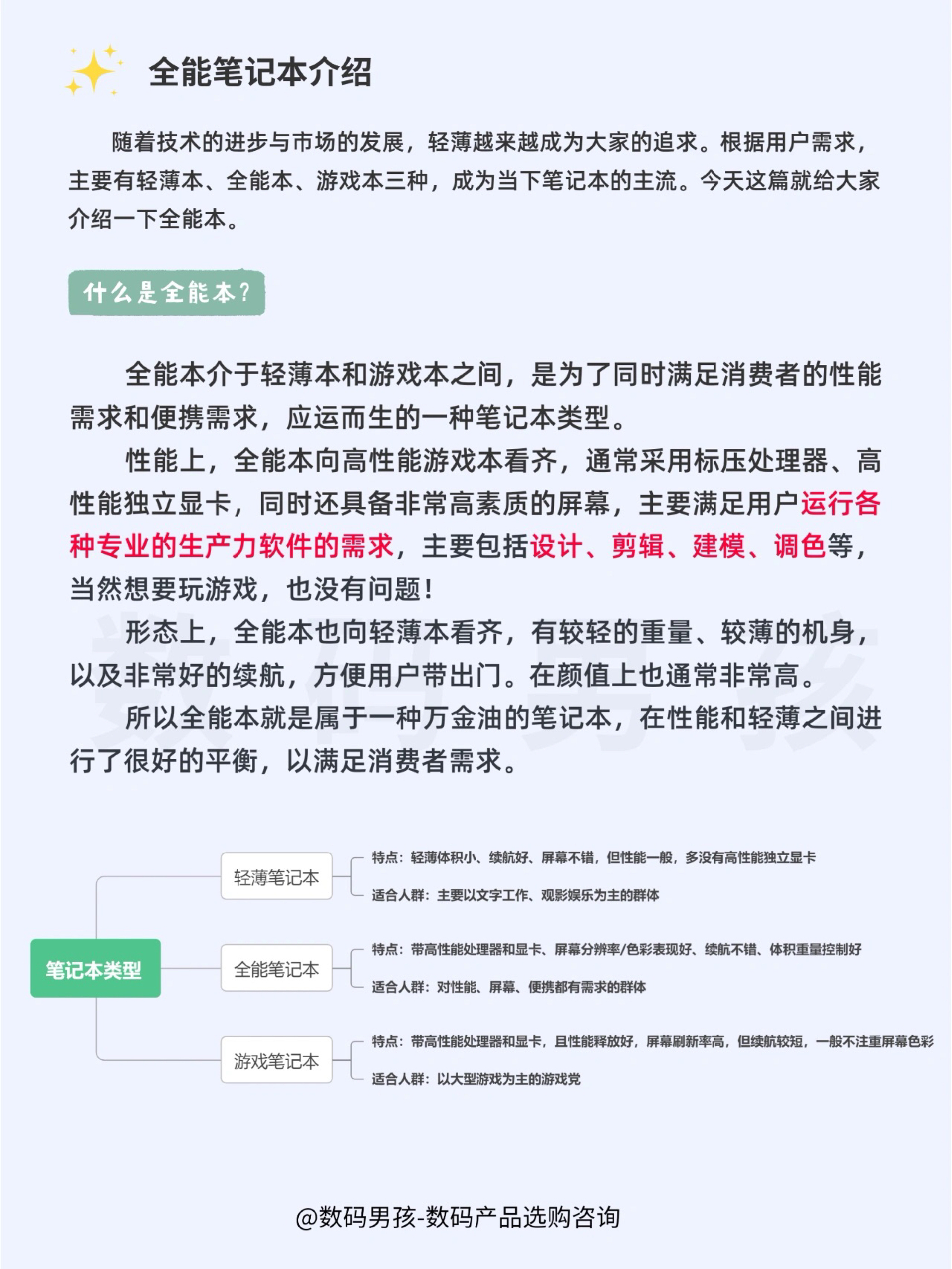 大家好,这里是数码男孩晨暮,一个10年数码控,经常给大家推荐轻薄本,但很多有专业需求的小伙伴轻薄本完全不够用,比如:设计、剪辑、建模、动画这些,都需要高性能笔记本。 但游戏本又较重,屏幕偏向电竞,不适合进行生产力创作。这时候大家都非常需要一款兼顾性能和便携的笔记本电脑了。全能本就应运而生。 👉🏻性能上,全能本向高性能游戏本看齐,通常采用标压处理器、高性能独立显卡,同时还具备非常高素质的屏幕,主要满...