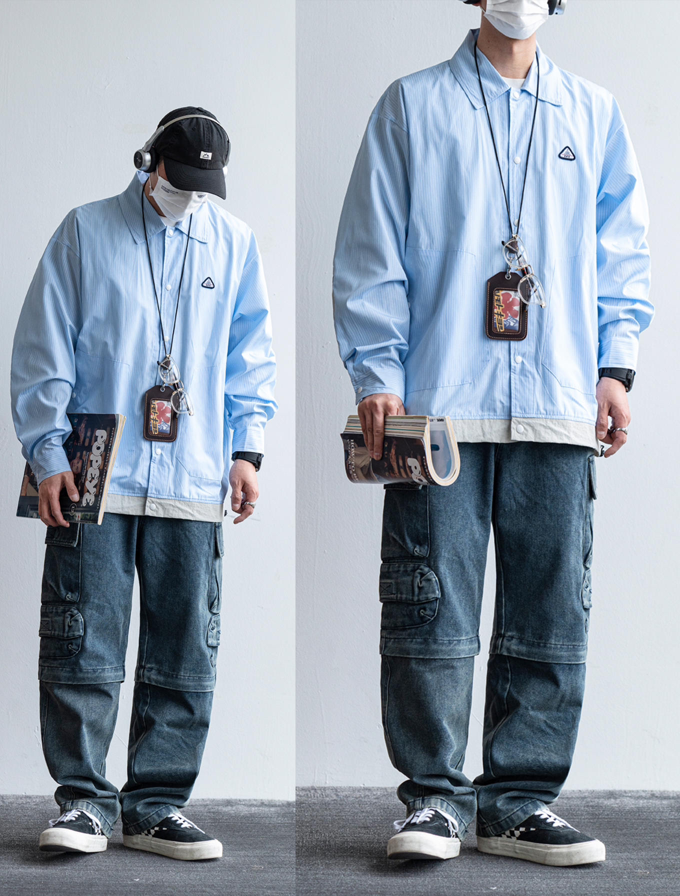 宽松的版型和简单的款式是日系的重要因素之一 早春就得整点日系叠穿!! 过于紧身的衣服无论是体型偏瘦还是偏胖的男生都很不友好 那种宽松有点廓形的衣服上身更方便叠穿 很容易视觉欺骗,更加美观 经典的配色也不容易出错,耐看又不挑人 家人们谁懂啊!!真的很爱这种工装 这期很省心为大家整理了几组矮个子的氛围感穿搭 - 模特:身高172CM | 体重62.5KG Flostore花轮故事