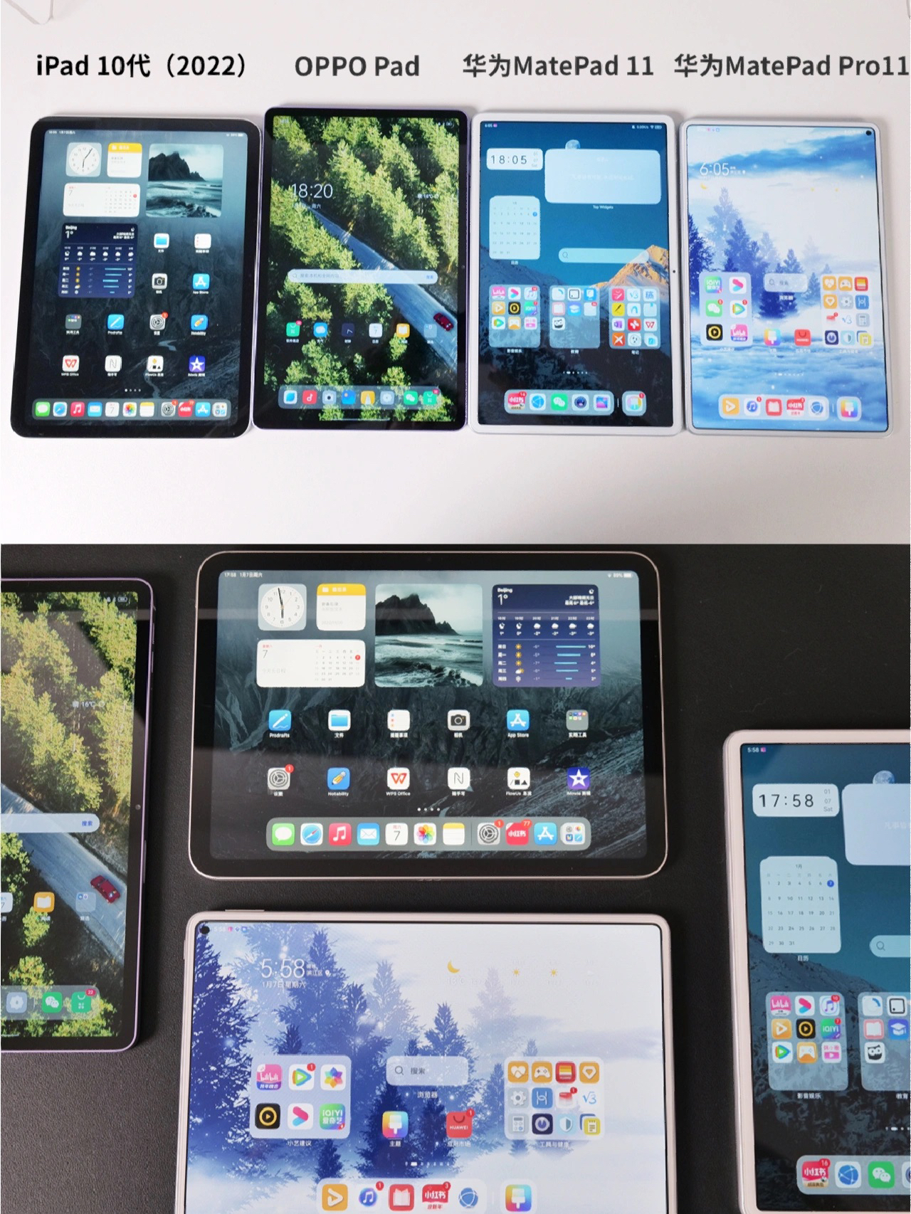 手上有4款平板电脑给大家分享一些真实感受~ 1.外观 iPad和OPPO 都是金属材质直角边。华为11是塑料,Pro11是纤维塑料,且都有弧度。手感Pro11更好,iPad质感强,OPPO颜值比较出挑。 2.屏幕显示 Pro11是OLED屏幕,显示上效果更好,边框非常窄。iPad10是非全贴合屏幕,表面有一层玻璃。观感Pro11>OPPO Pad>华为11≈iPad10, 3.系统 iPad10是...