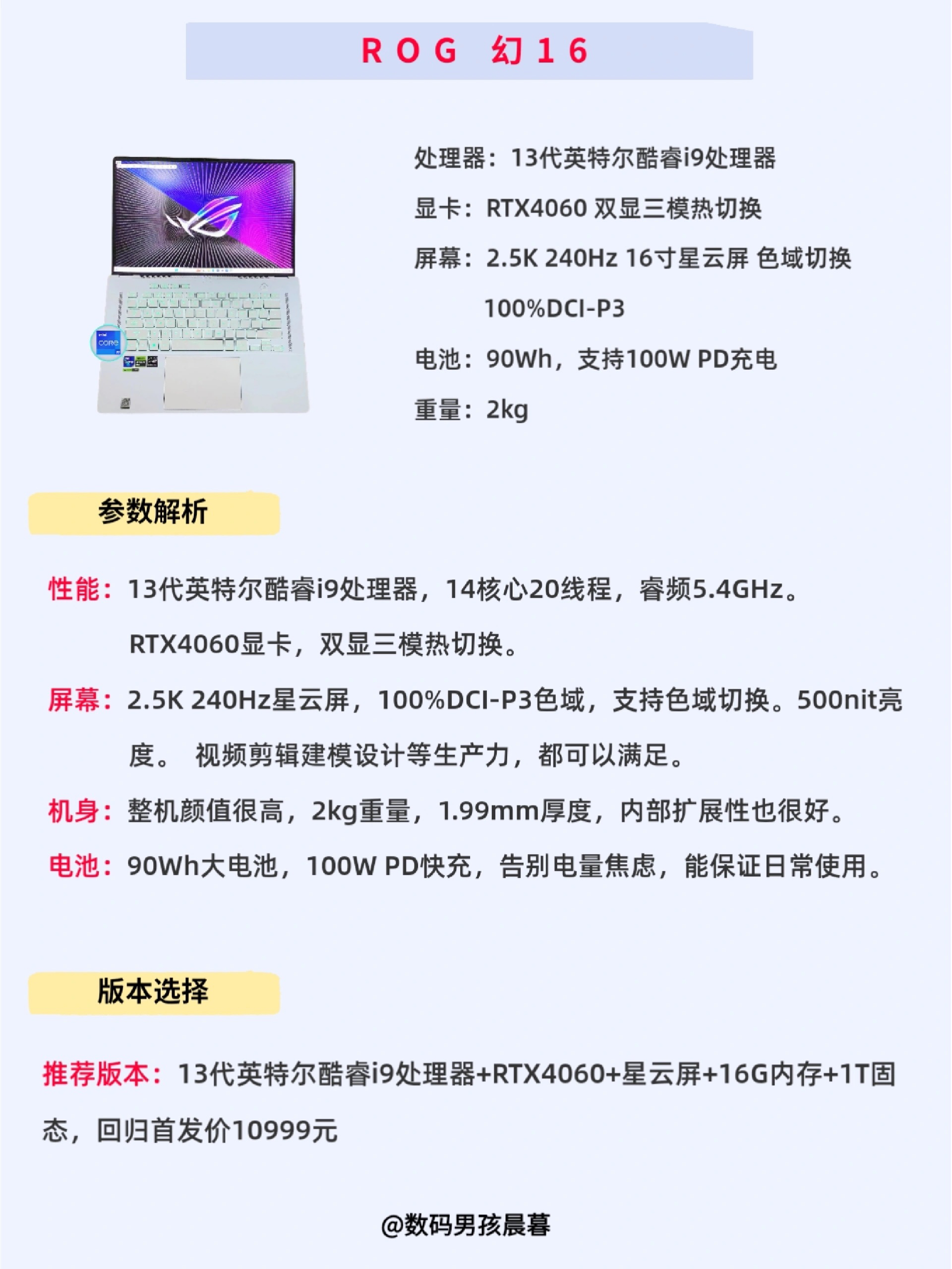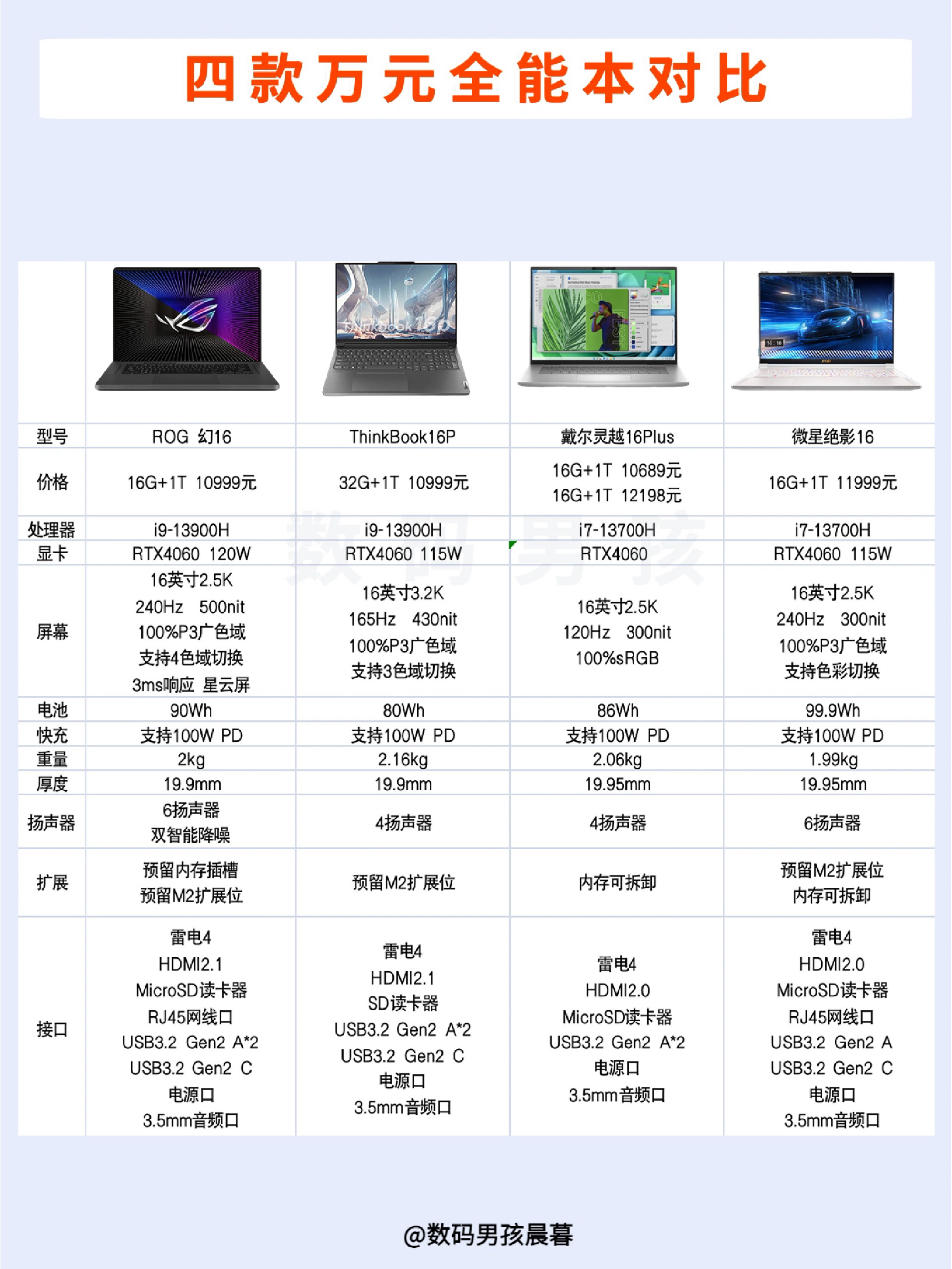 本篇笔记关联了ROG/玩家国度 幻16 RTX4060显卡 2023款 16英寸 游戏本 高性能 星云屏 广色域 日蚀灰、DELL/戴尔 灵越 Plus 16 酷睿版 2023款 16英寸 笔记本 高性能 大屏 学习 高刷 渲染 银色等商品,为用户提供真实的使用体验和购买参考。