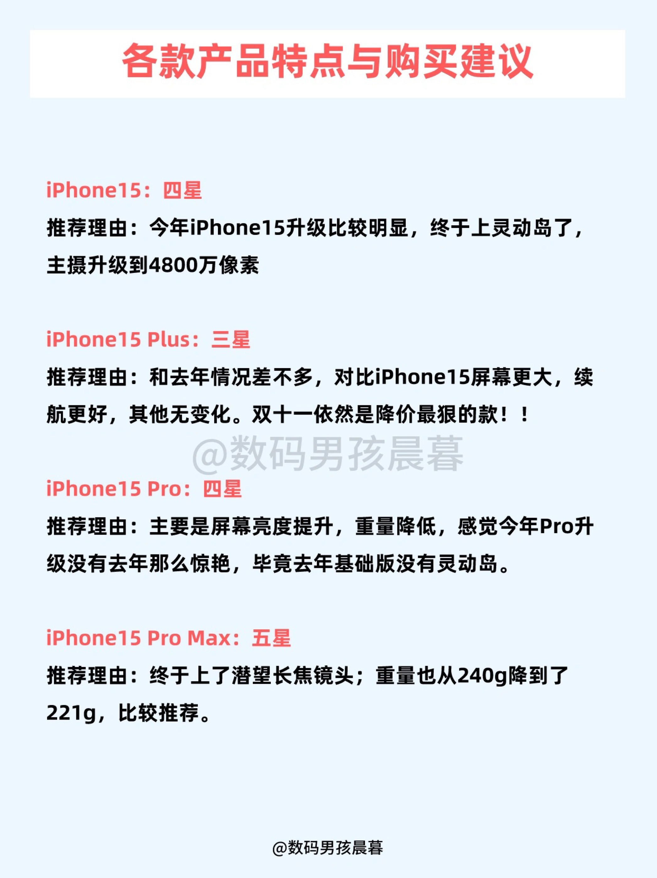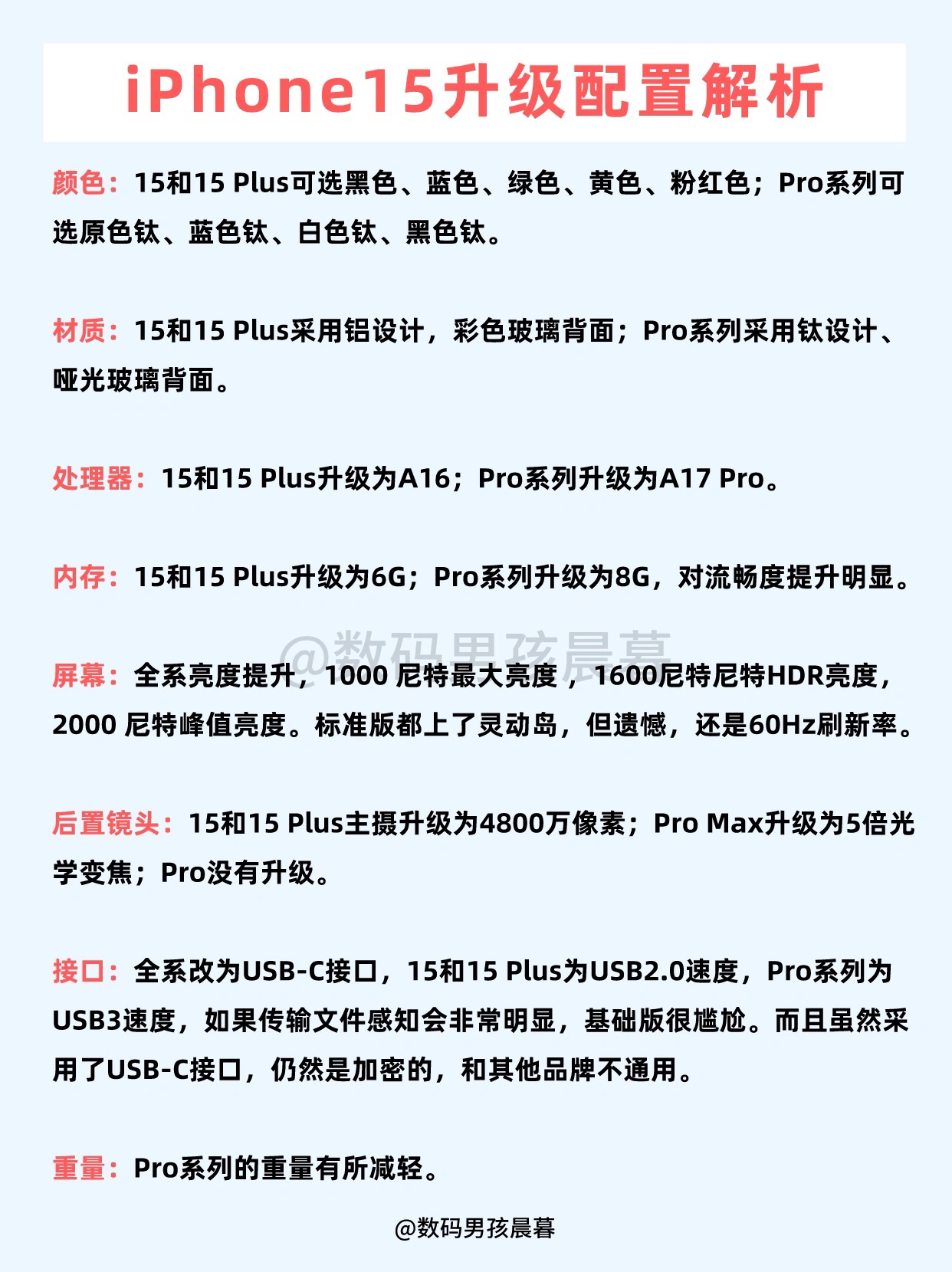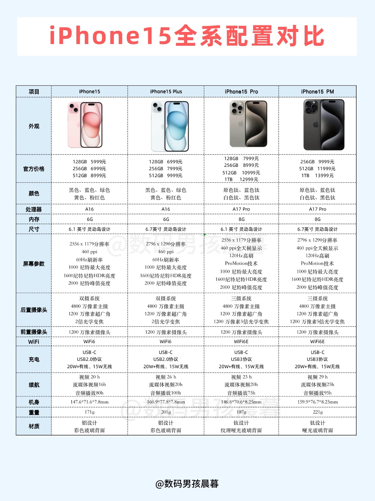 【一图看懂iPhone15系列!怎么选?一看便知!】,由用户 晨暮评测 分享,来自IP未知。这是一篇来自识货社区的真实用户分享笔记。
