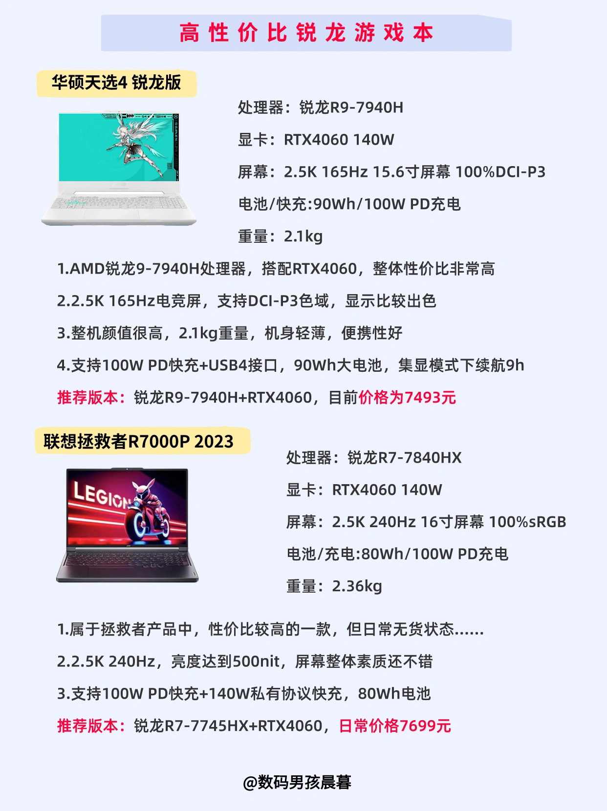 本篇笔记关联了Lenovo/联想 拯救者 R7000P 锐龙版 2021款 15.6英寸 游戏本 标压 电竞屏 黑色、HP/惠普 暗影精灵9Plus RTX4070显卡 2023款 17.3英寸 游戏本 黑色、Asus/华硕 天选4 RTX4060显卡 2023款 15.6英寸 游戏本 畅玩热门网游 高性能 高色域 魔幻青等商品,为用户提供真实的使用体验和购买参考。