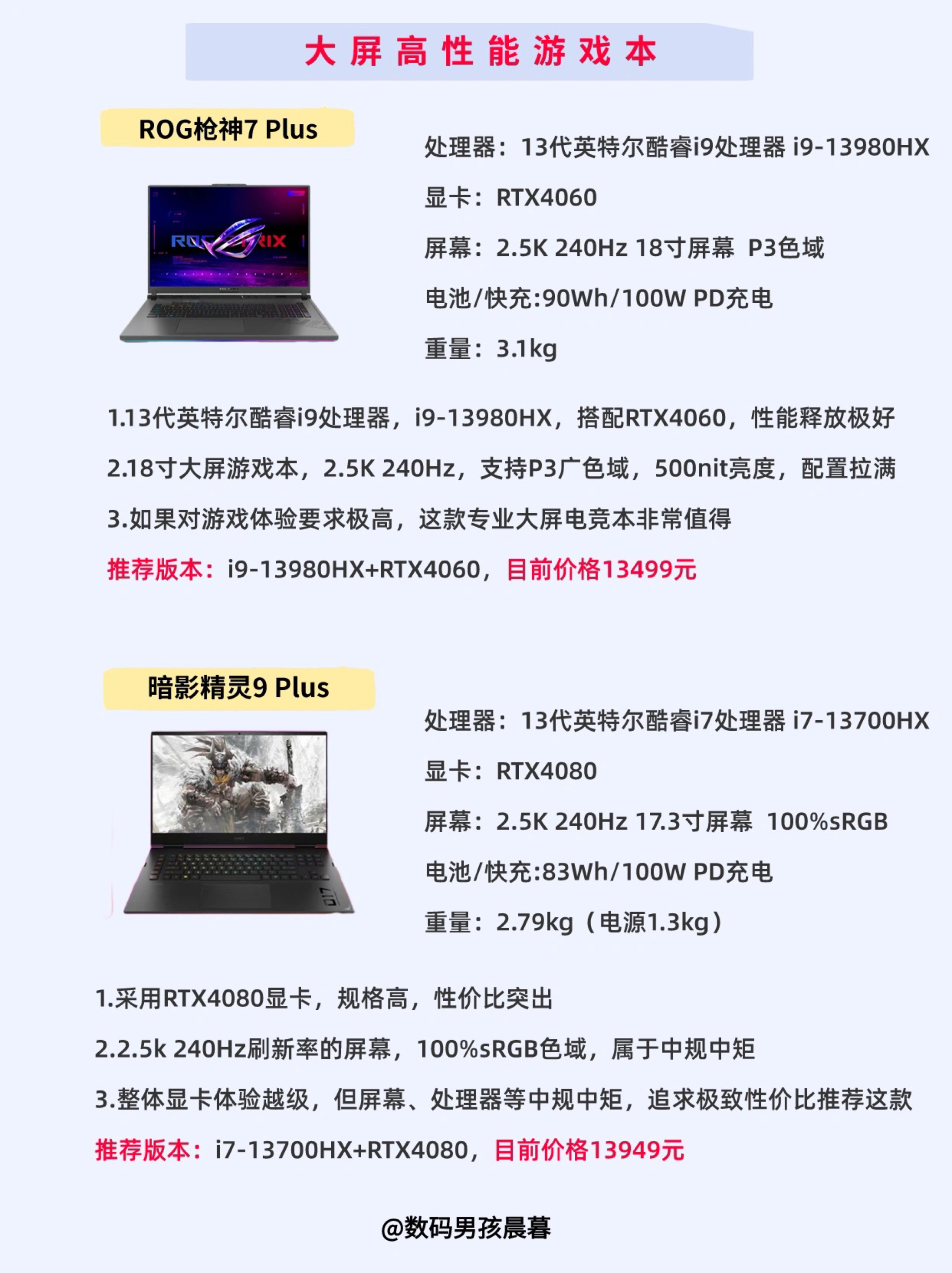 本篇笔记关联了HP/惠普 暗影精灵9Plus RTX4070显卡 2023款 17.3英寸 游戏本 黑色、MECHREVO/机械革命 极光Pro RTX4060显卡 2023款 15.6英寸 游戏本 高刷 高性能 黑色、ROG/玩家国度 枪神7 Plus RTX4060显卡 2023款 18英寸 游戏本 广色域 电竞星云屏 高端 液金导热 日蚀灰等商品,为用户提供真实的使用体验和购买参考。