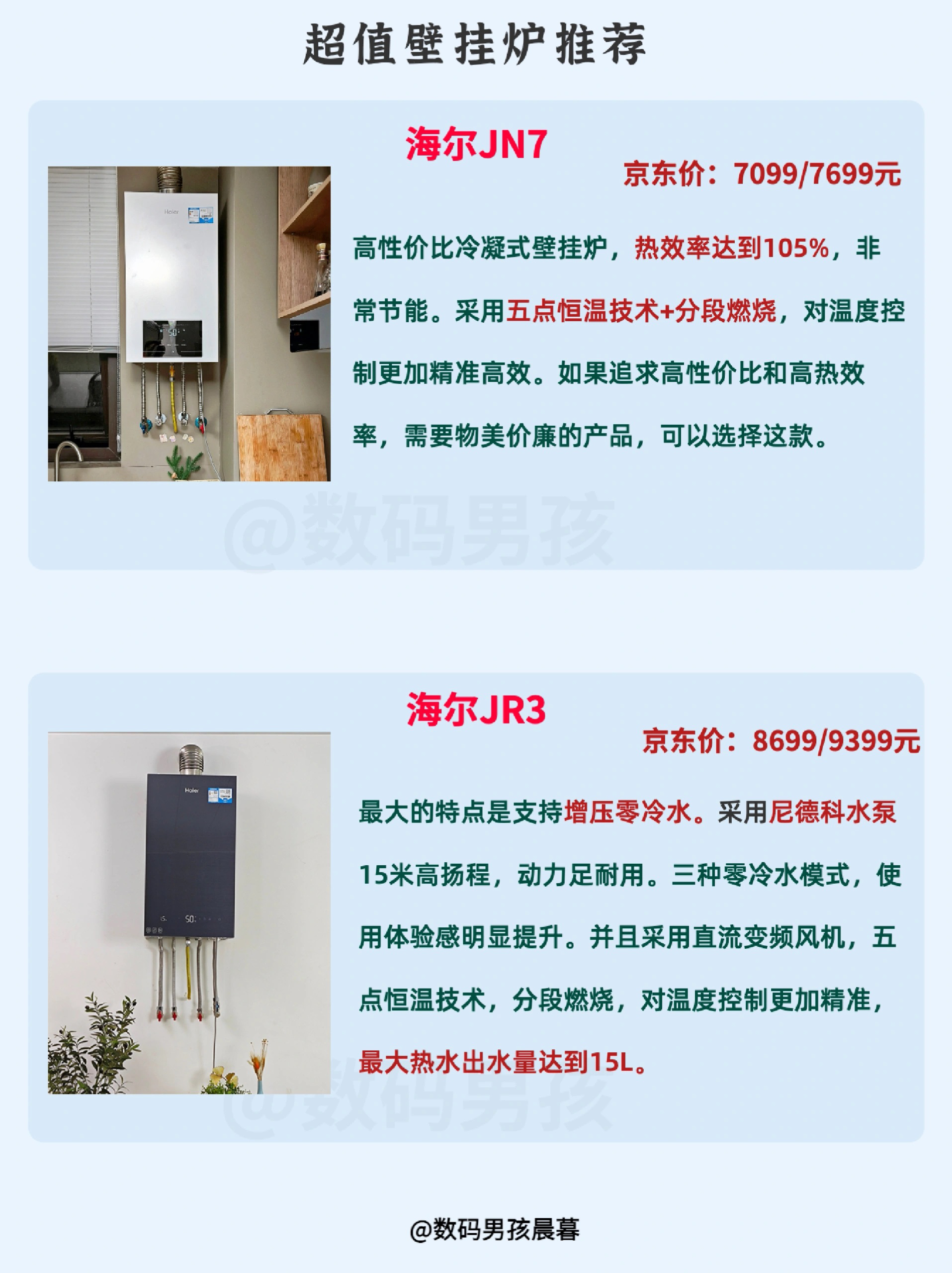 本篇笔记关联了Haier/海尔 HJ7系列 燃气壁挂炉热水器 天然气 地暖 全屋 板换式采暖炉 智慧节能 L1PB20-HJ7(T)U1 白色、Rinnai/林内 热水器 恒温热水 远程智控 节能省气 安全防护 LL1GBQ35-35Q55A 白色35KW等商品,为用户提供真实的使用体验和购买参考。