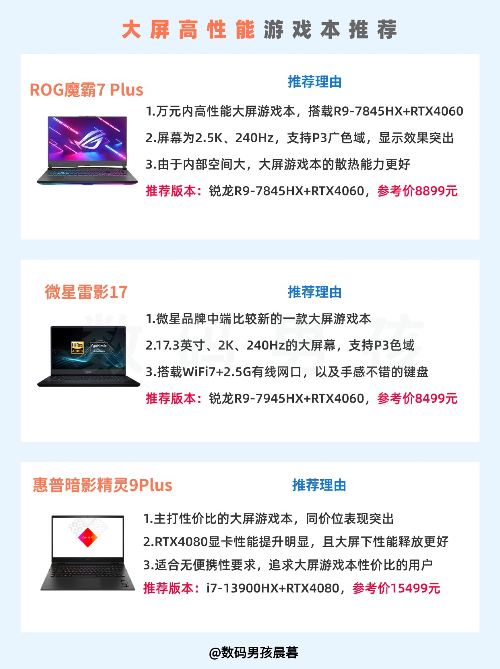 本篇笔记关联了HP/惠普 暗影精灵9Plus RTX4070显卡 2023款 17.3英寸 游戏本 黑色、MECHREVO/机械革命 极光Pro RTX4060显卡 2023款 15.6英寸 游戏本 高刷 高性能 黑色、ROG/玩家国度 魔霸7 Plus RTX4060显卡 2023款 17.3英寸 游戏本 广色域 高性能 电竞大屏 灰色等商品,为用户提供真实的使用体验和购买参考。