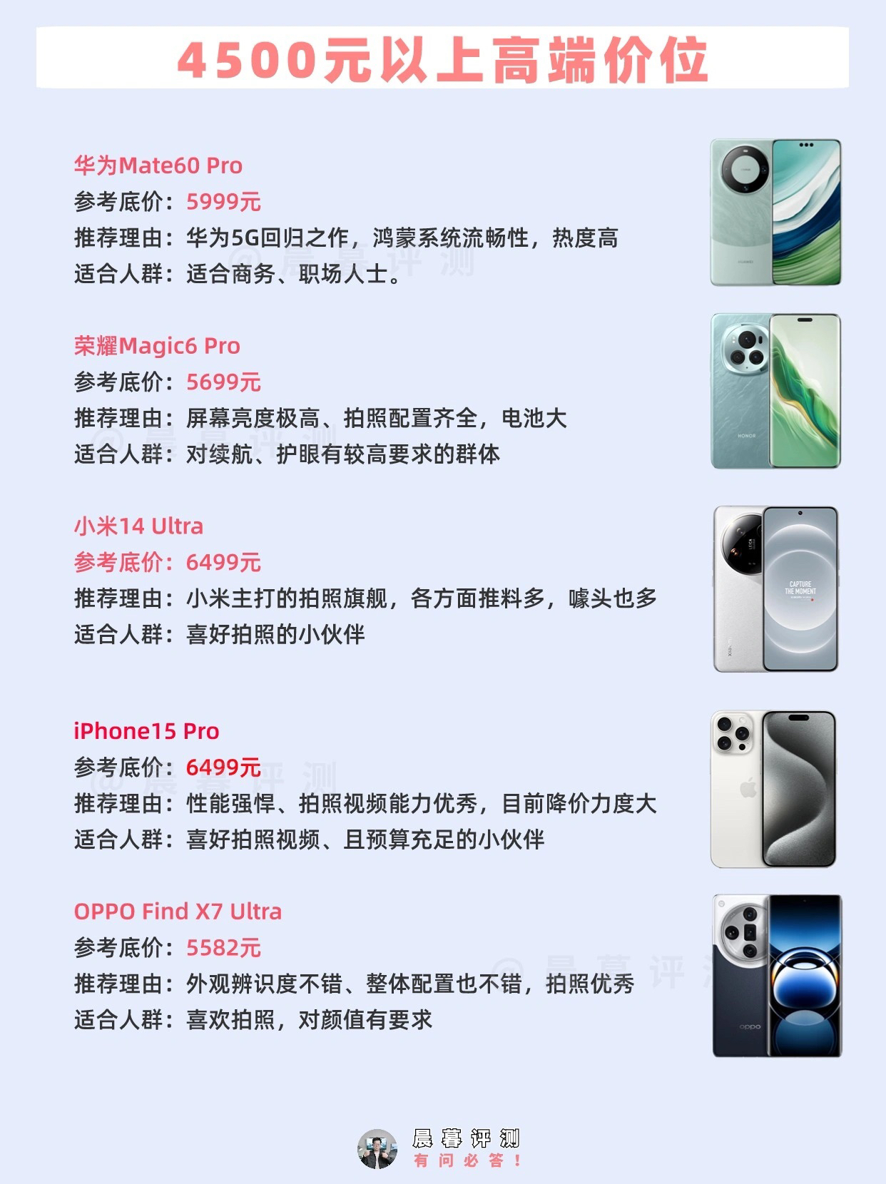 4500元以上:各家的大杯和超大杯旗舰区间,尤其突出拍照方面的性能。