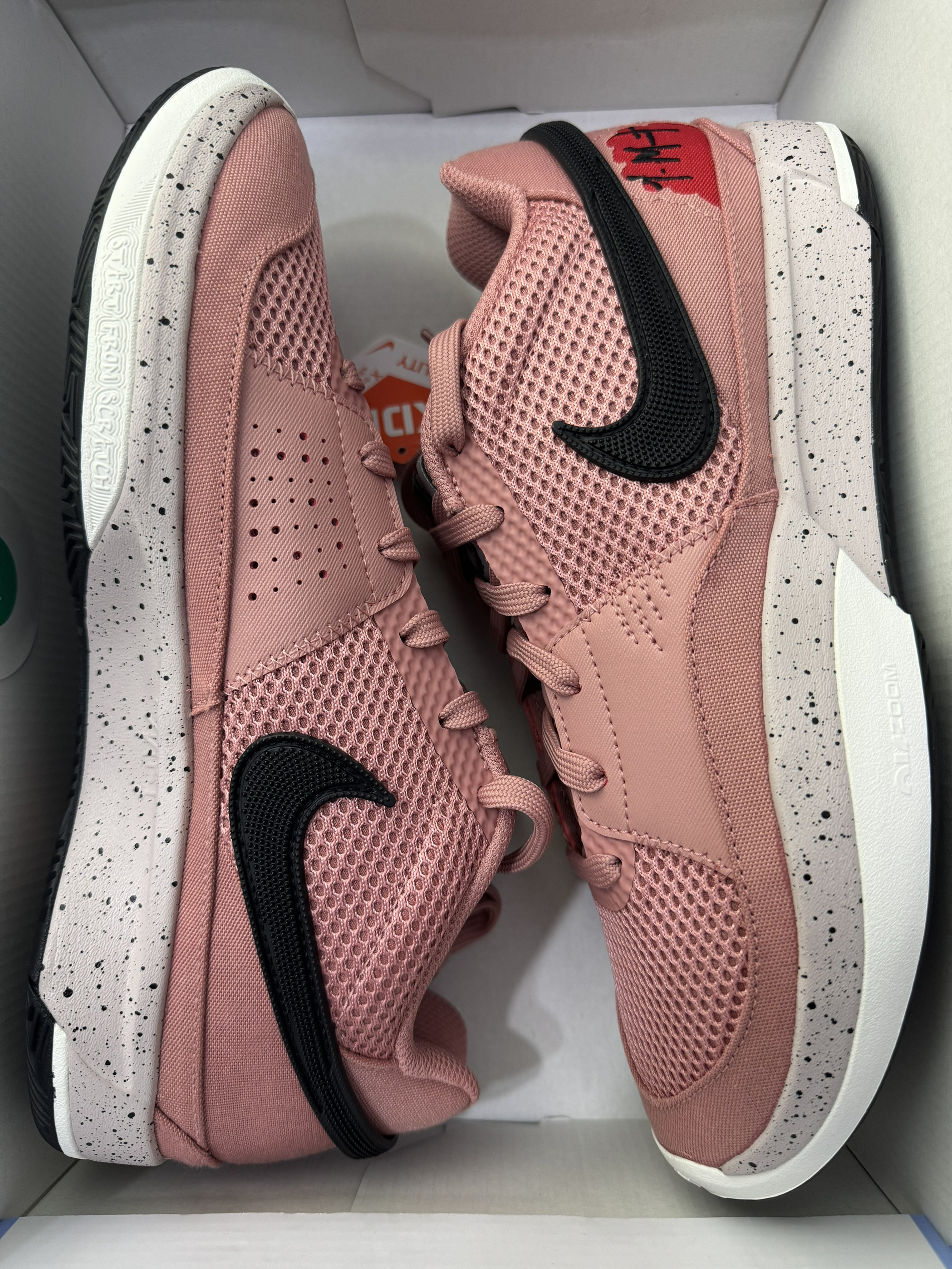 Nike Ja 1 “Red Stardust” EP 红色星尘 这个配色颜值还是不错,粉色非常柔和。 鞋面材料用的也很细腻,整体质感非常棒。 粉色水洗布材质既增加了层次感又加强了支撑性! 就是不知道后期会不会褪色! 中底还是前掌Zoom Air气垫加后掌泡棉 前掌还不错后掌缓震一般! 鞋楦有点奇怪,鞋头偏尖偏窄,尺码建议大半码选择!