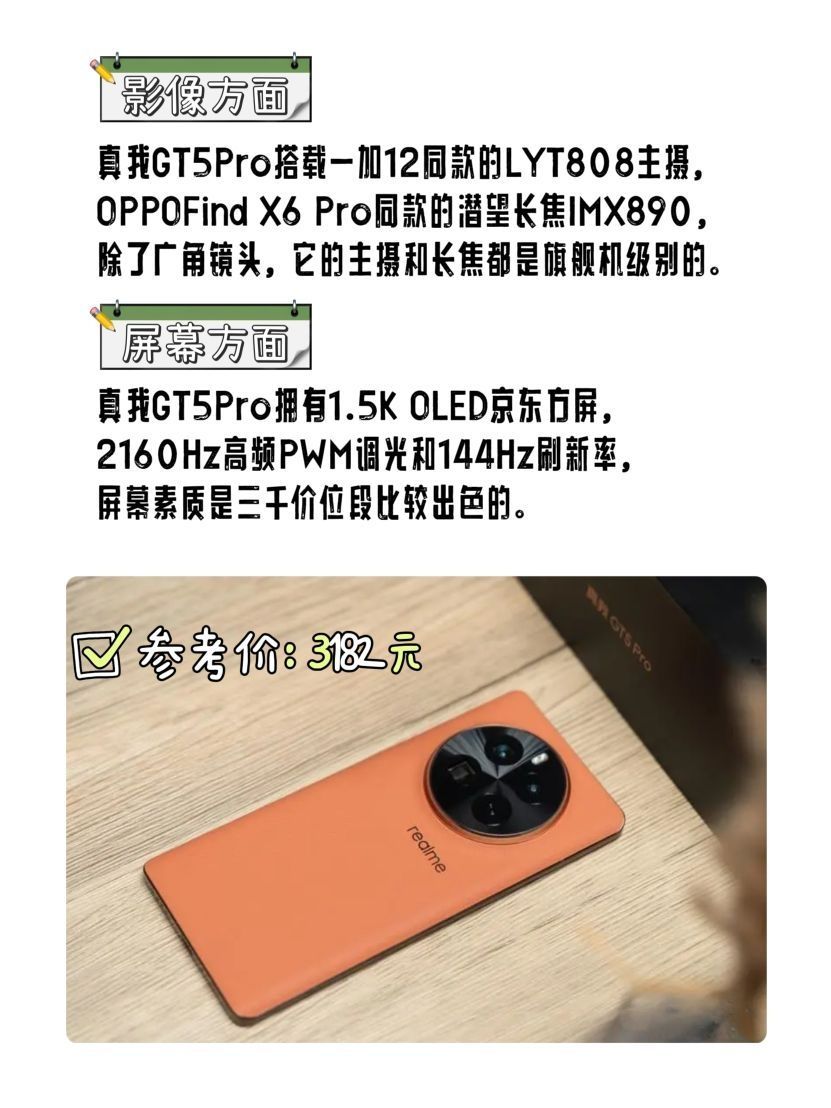 虽然今年搭载天玑9300处理器的手机跑分已经超越了搭载骁龙8Gen3处理器的手机,但后者依旧是综合表现更为出色的年度芯片。 红米K70Pro:2K屏和骁龙8Gen3的组合是很多旗舰机都未达到的高度,除了影像实力稍微逊色,三千元价位段真的难找敌手。 魅族21:flyme任何时候都是值得夸赞的,小尺寸机身和白色面板也是业内不可多得的存在。 真我GT5Pro:敢和红米K70Pro“叫板”的就剩真我G...