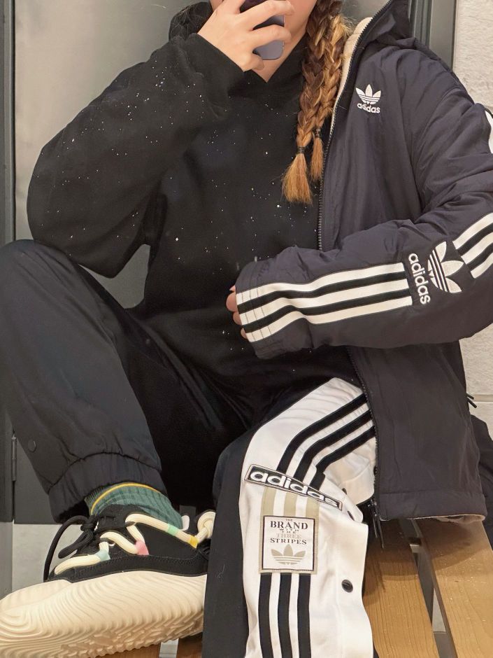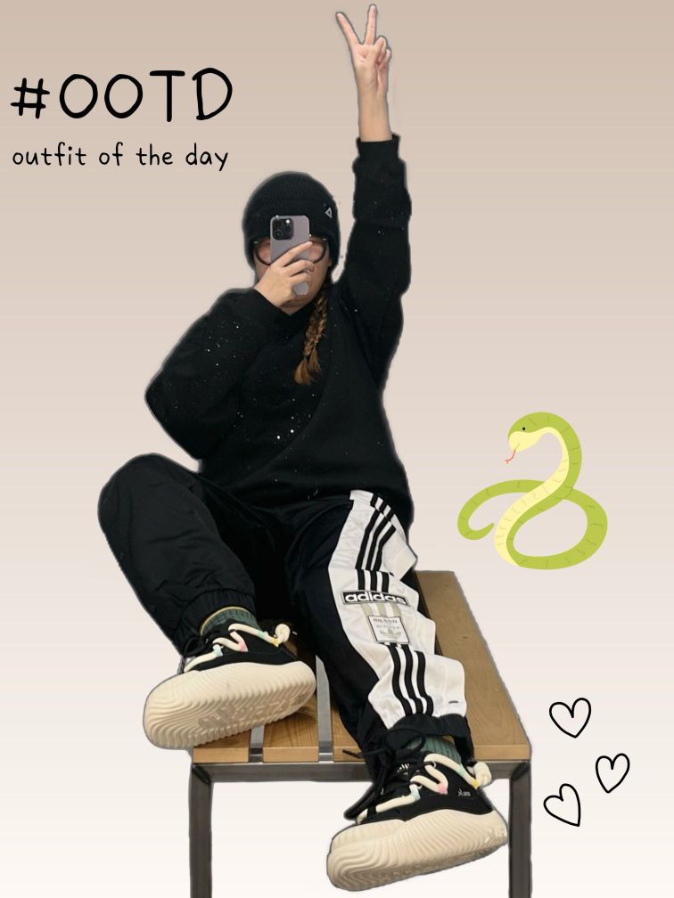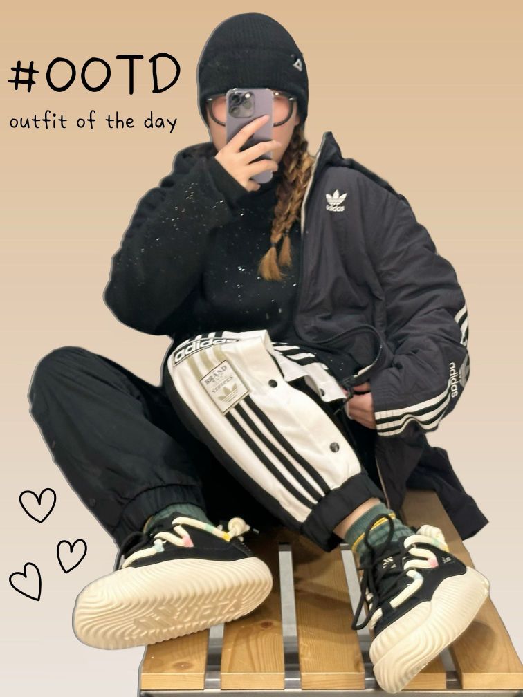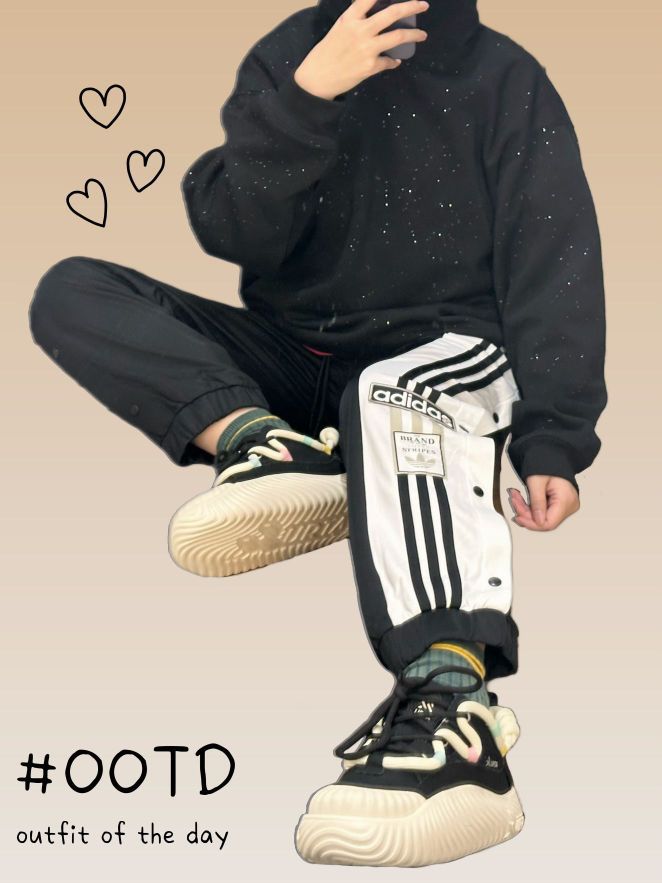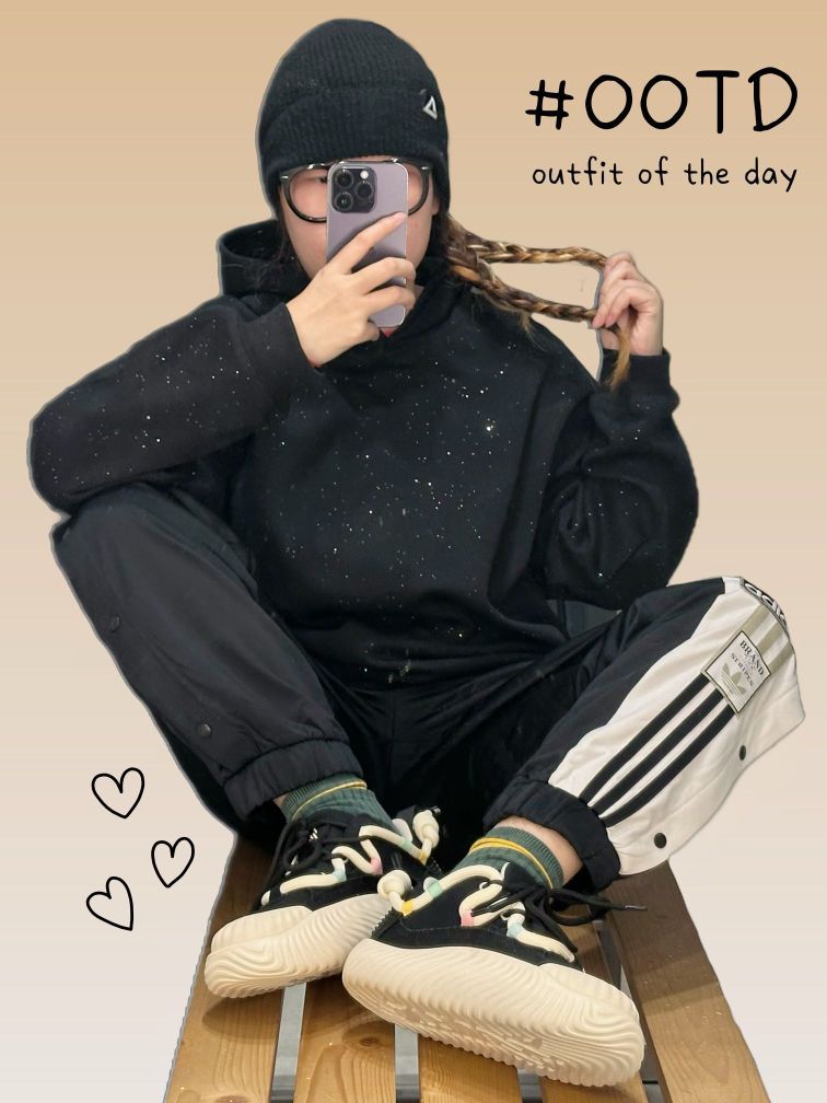 今日OOTD: 👧🏻:162cm|50kg 👕外套:#adidas 👕上衣:#MEIPIN TANG 👖裤子:#adidas originals 👟鞋子:#URTA 嗨嗨宝子们,今日出街一身all black潮酷感🆙 ♥︎ 👕M|黑色 穿了一件很浪漫的会闪的卫衣,基础百搭款,黑色卫衣上的星空闪真的很高级,酷酷的哪怕对方穿基础黑也不怕撞款 👖M|黑色 搭了一条阿迪运动三条杠卫裤,面料...