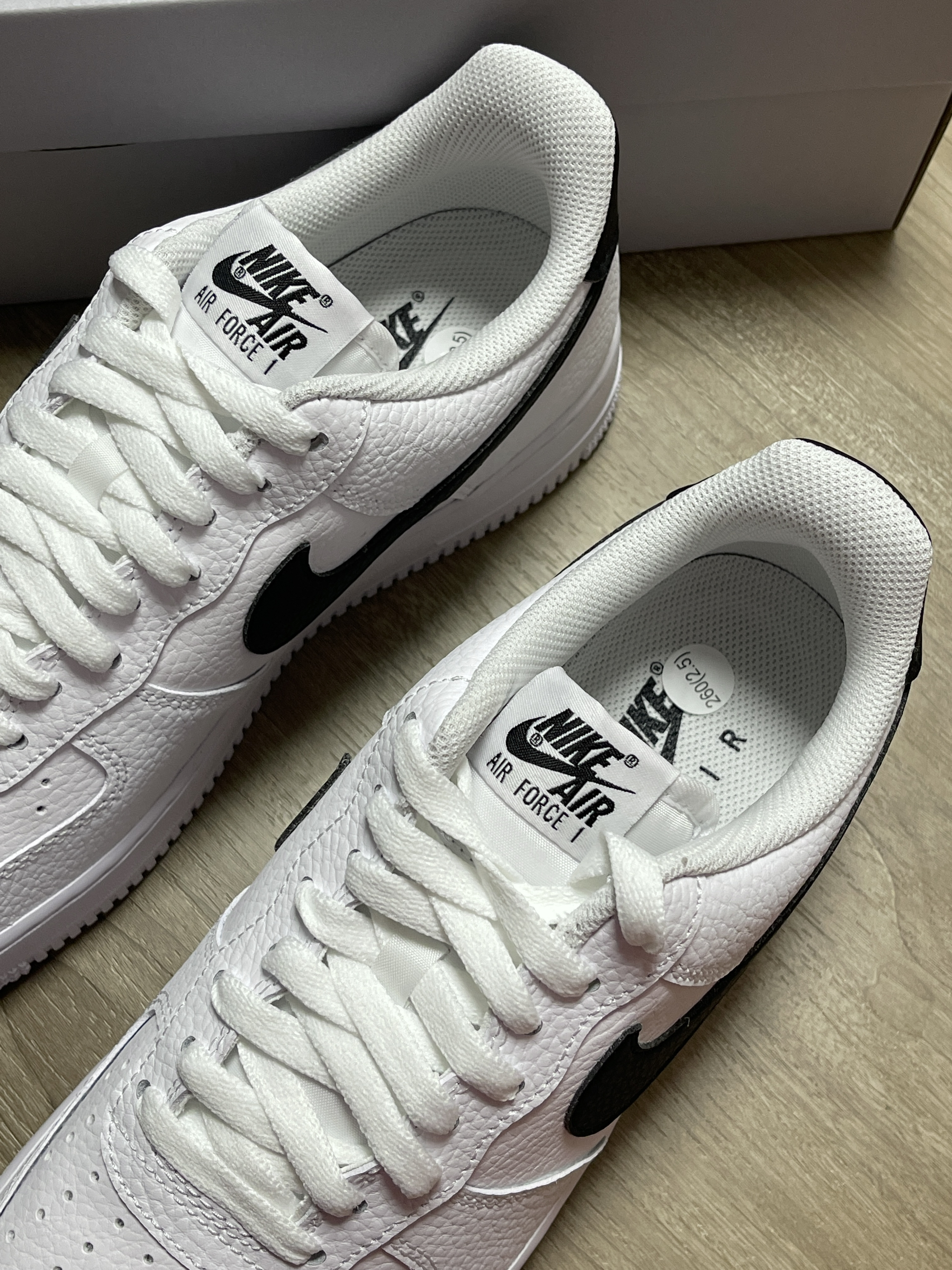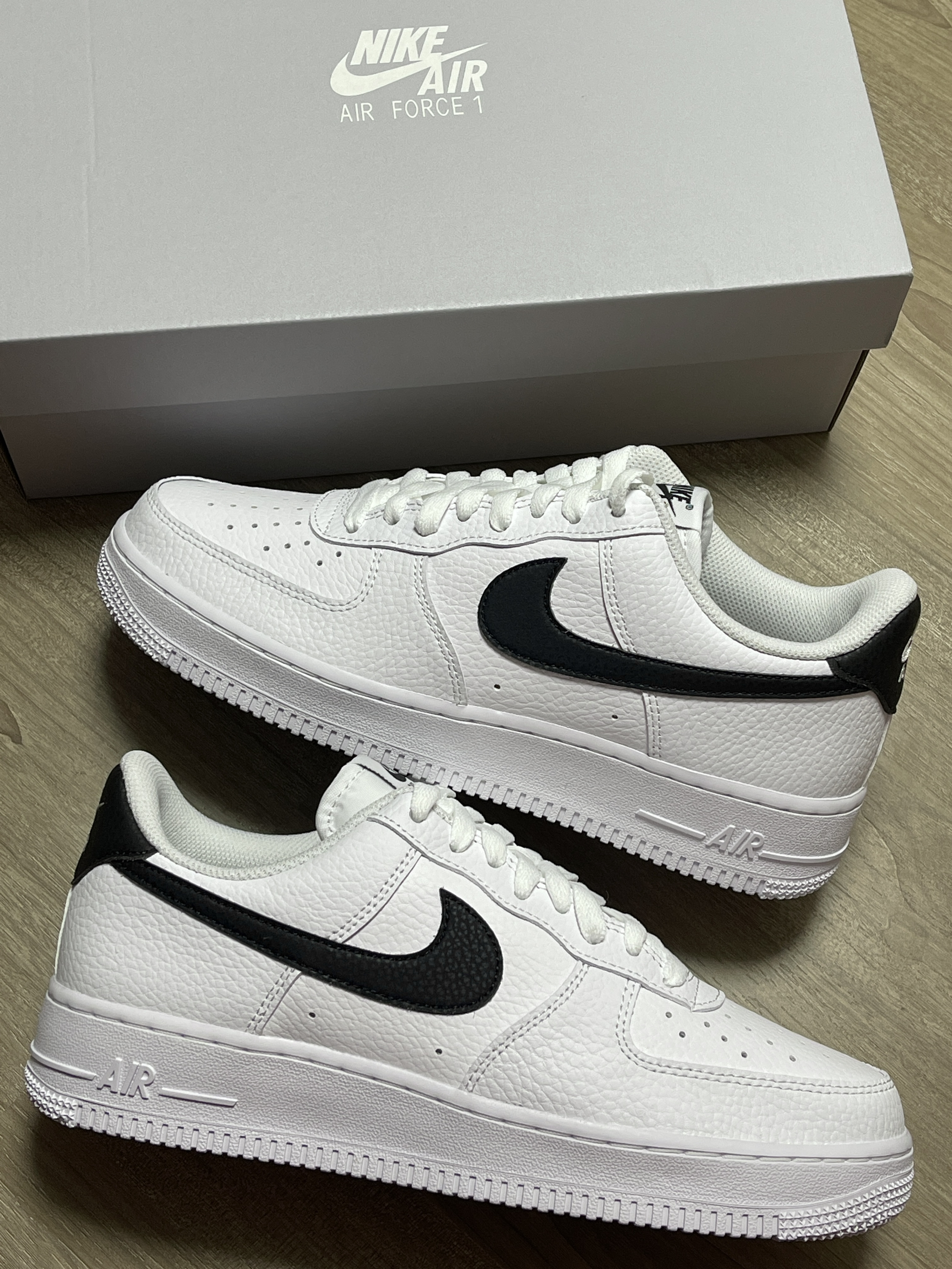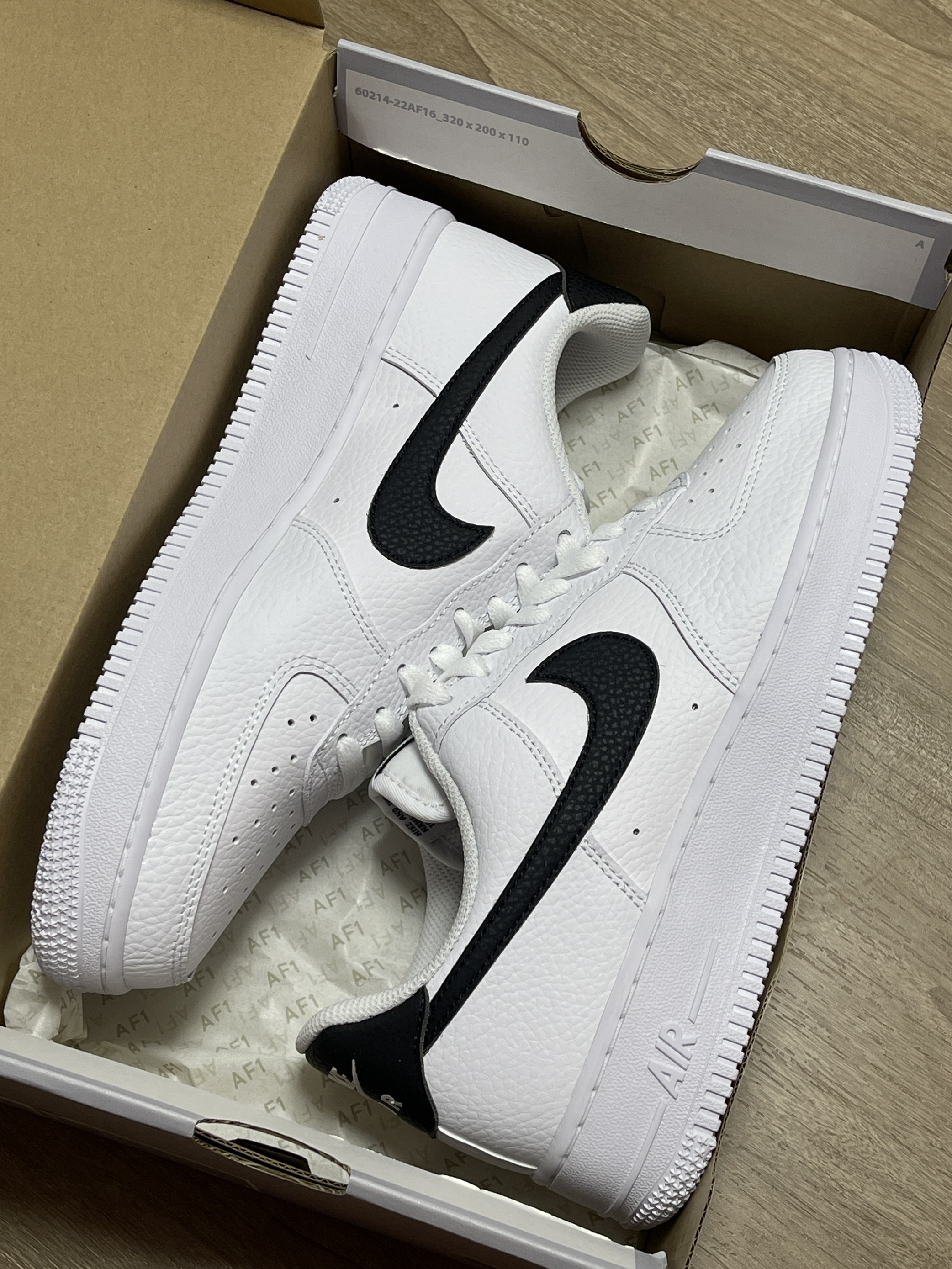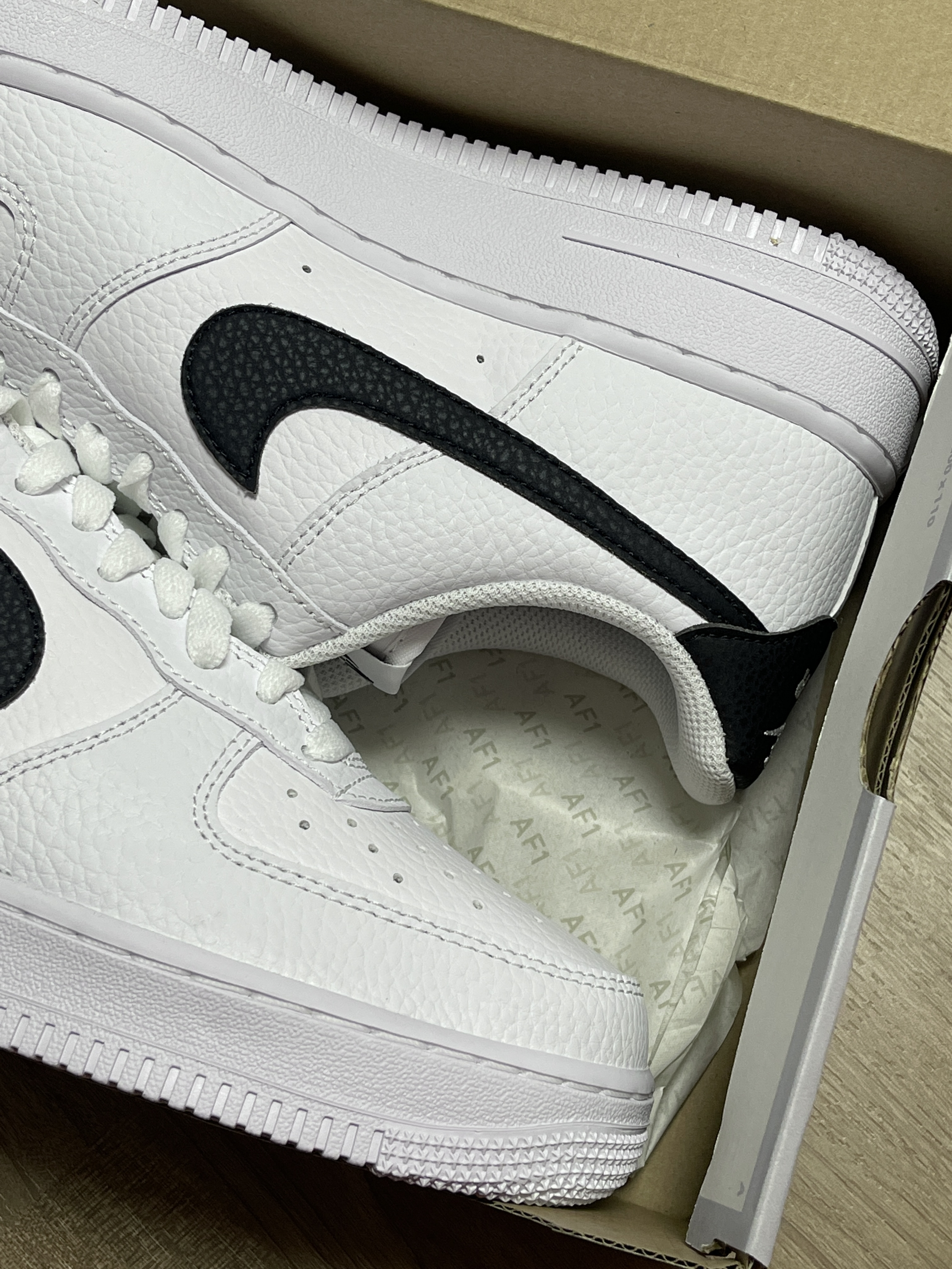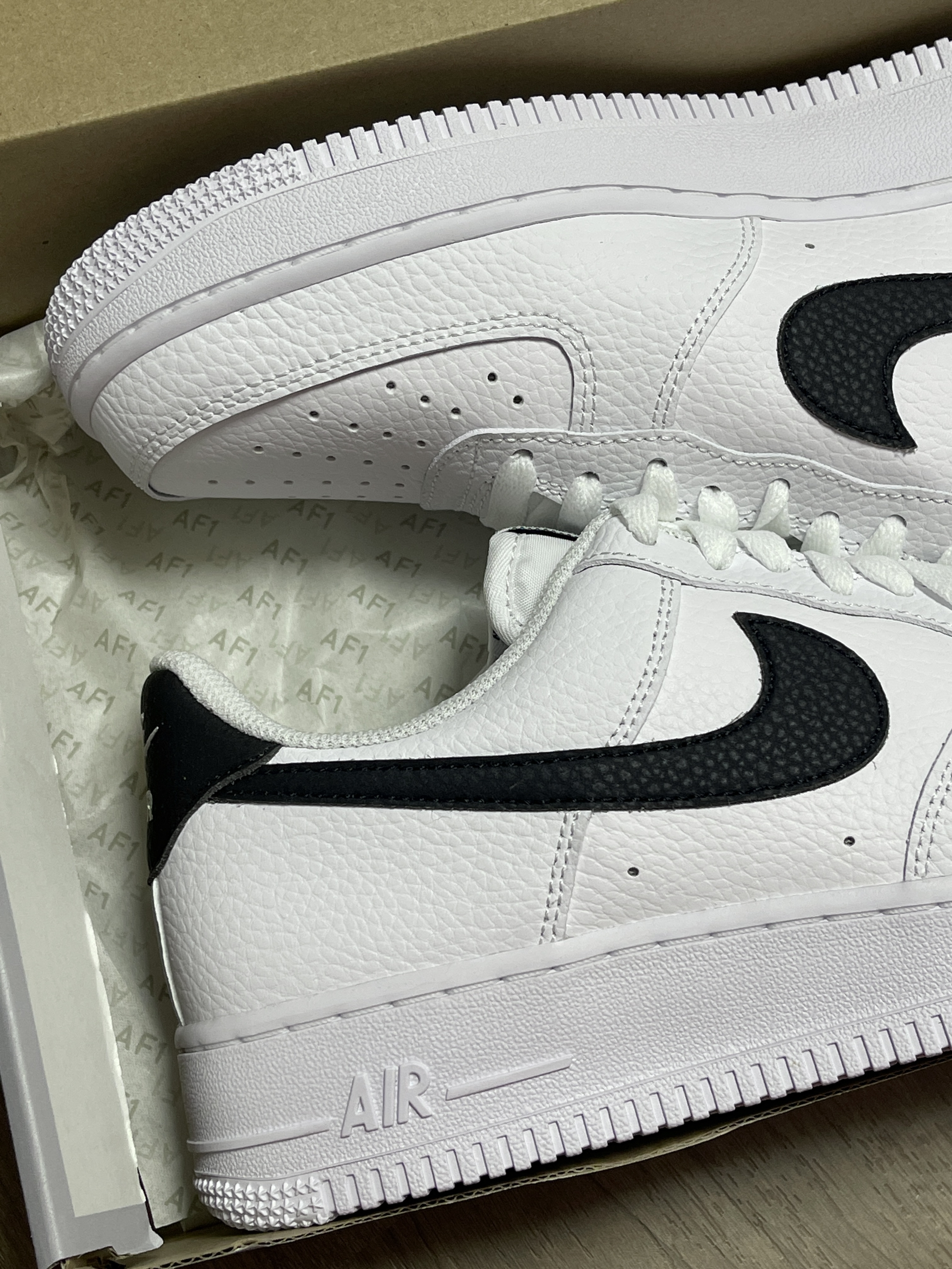 AMBUSH和空军一号联名球鞋你了解过吗,现在已经涨价高不可攀!不妨看看这双平替~😎 Nike|Air Force 1 Low "White and Black" 复古低帮板鞋“白黑”🐻❄️,经典百搭的AF1鞋型,鞋面采用荔枝皮材质,上脚柔软舒适!大面积白色点缀黑色Swoosh,颇有联名系列的感觉,性价比拉满~😍