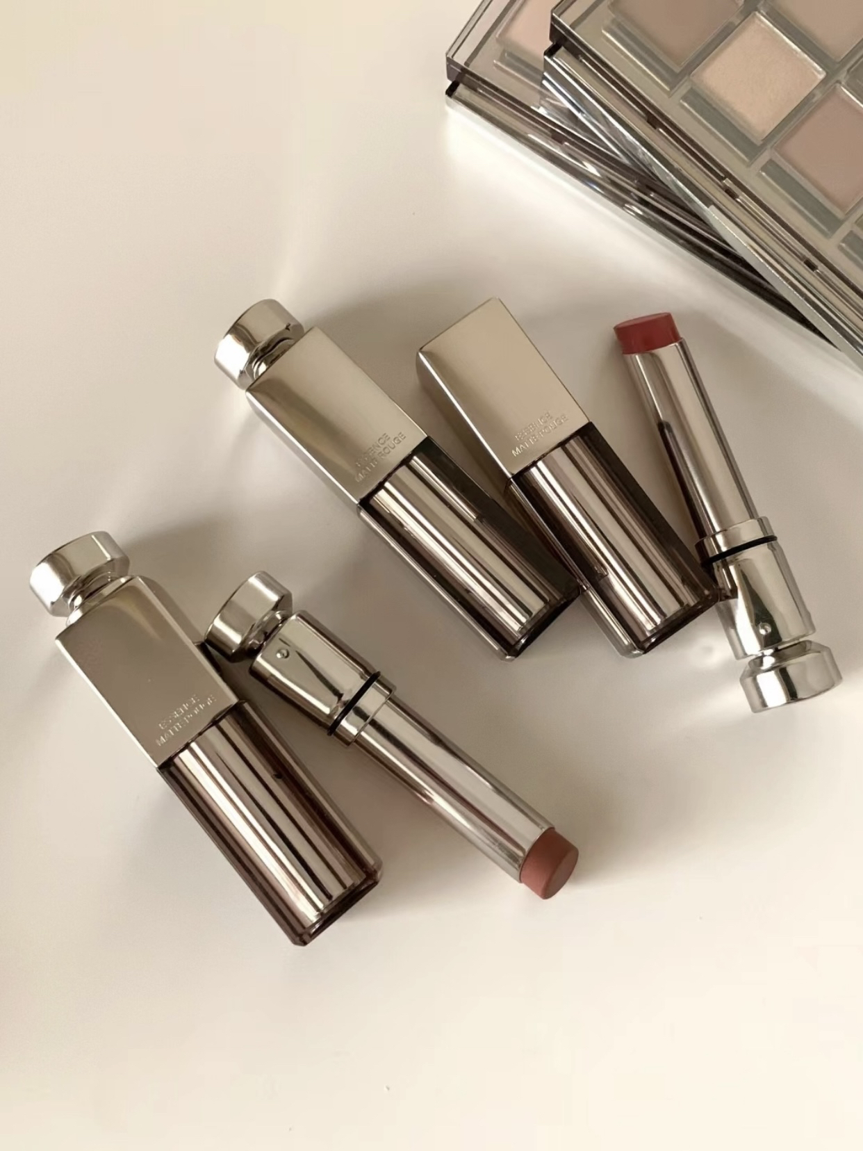 酵色这波新品把裸色系和低饱和卷出next level12 色眼影盘 两盘都是日常实用挂的哑光色软糯顺滑又显色 01烟粉木 早八人的爱! 米灰/灰棕/裸粉任意组合都不出错 02粉蜜瓜 蜜瓜棕色系+粉棕色系属实是把韩女流行色卷明白了 7支水精华口红一抿化雾的质地 水润又兼顾高级质感 覆盖力也很好 爱哑光口红的干唇星人真的爱了! 调色上整体裸色调为主 个人偏爱00原色裸和211裸皮革~