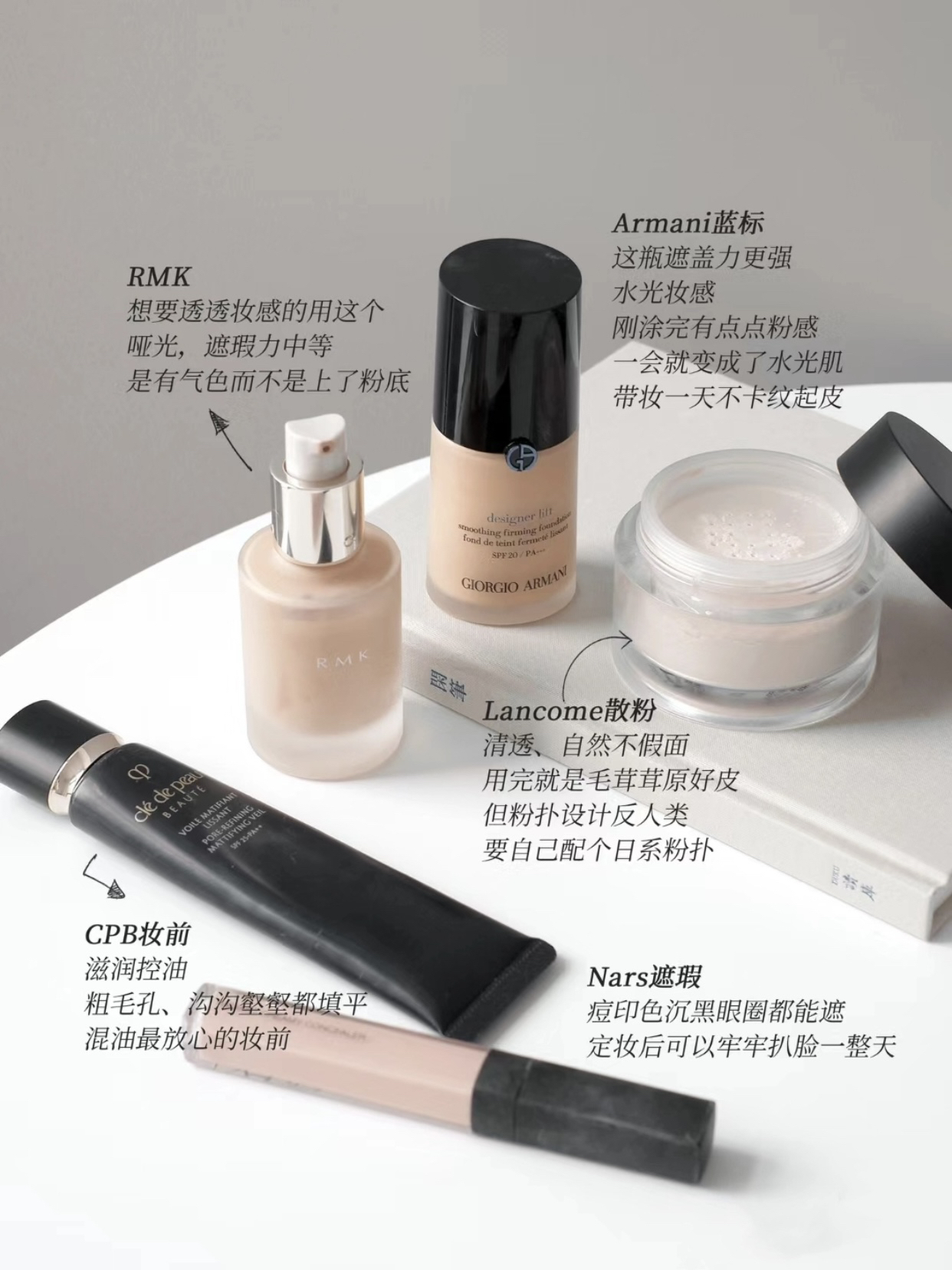 本篇笔记关联了RMK 水凝柔光粉底霜 30ml 哑光 #201瓷白色 适合白皙肤色、CPB/肌肤之钥 光凝润彩隔离长管妆前乳 防晒隐饰毛孔钻石光感 滋润版 全肤质37ml、NARS/娜斯 亮采柔滑遮瑕蜜提亮液 遮痘印 6ml 香草粉色 Vanilla等商品,为用户提供真实的使用体验和购买参考。