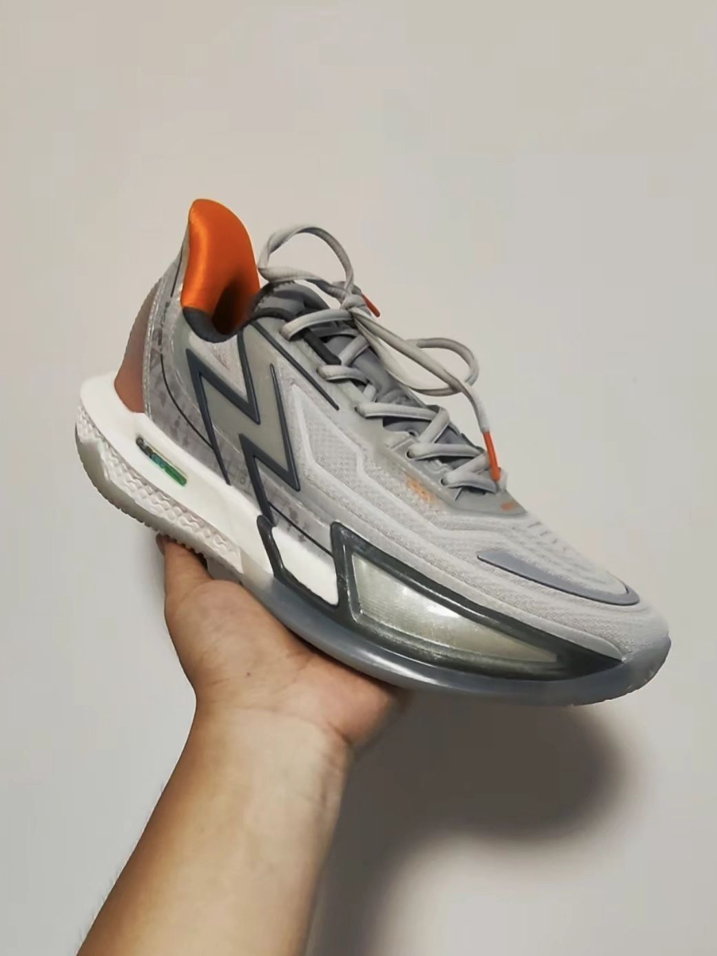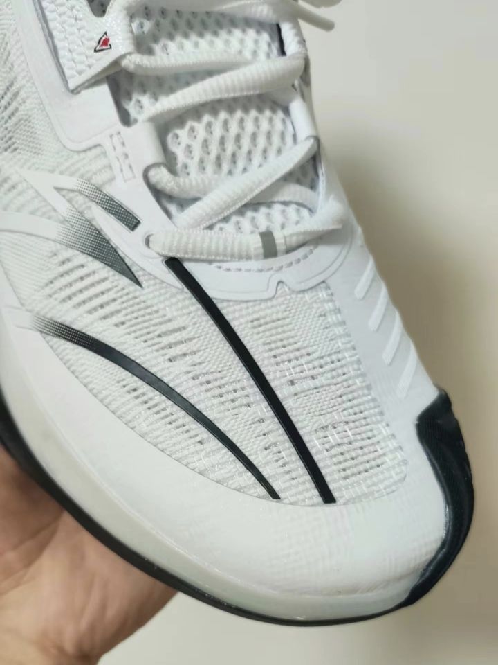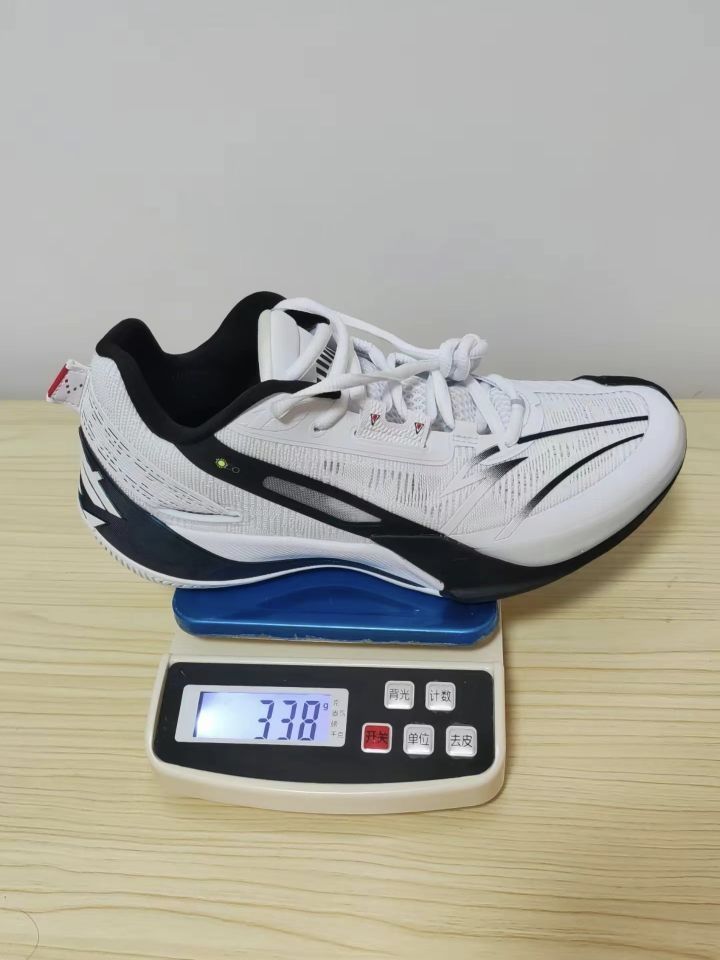 这双鞋是我之前抢的首发。 整双鞋拿到手就是感觉很轻,42码单只仅有338克,关键它还配备了大面积的耐磨橡胶外底,属实惊人! 鞋面设计乍一看有点复杂,其实还是公式化设计,直接说结果,强度一般,但其实中底下沉的比较深,脚两侧有一部分是被中底框架兜住的,在实战过程中,侧向支撑我觉得没有太大的问题。 鞋带中间两组是连在一起的动态绑定,这个系统要重点说一下,它的动态绑定是一直连着两根橡皮带,穿插到足底,在后...