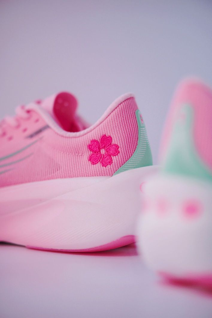 中乔跑鞋这两年的成功有目共睹 尤其是飞影PB系列的超高性价比 成为很多人的马拉松口粮鞋 也帮助很多跑者实现PB 这双飞影PB4.0再度升级而来 板材发泡工艺升级更软弹 全掌碳板助力刷新🔄个人成绩 樱花粉🌸配色也是经典配色了 后跟的一朵樱花点缀真心好看 上脚这双跑鞋跑进春天~