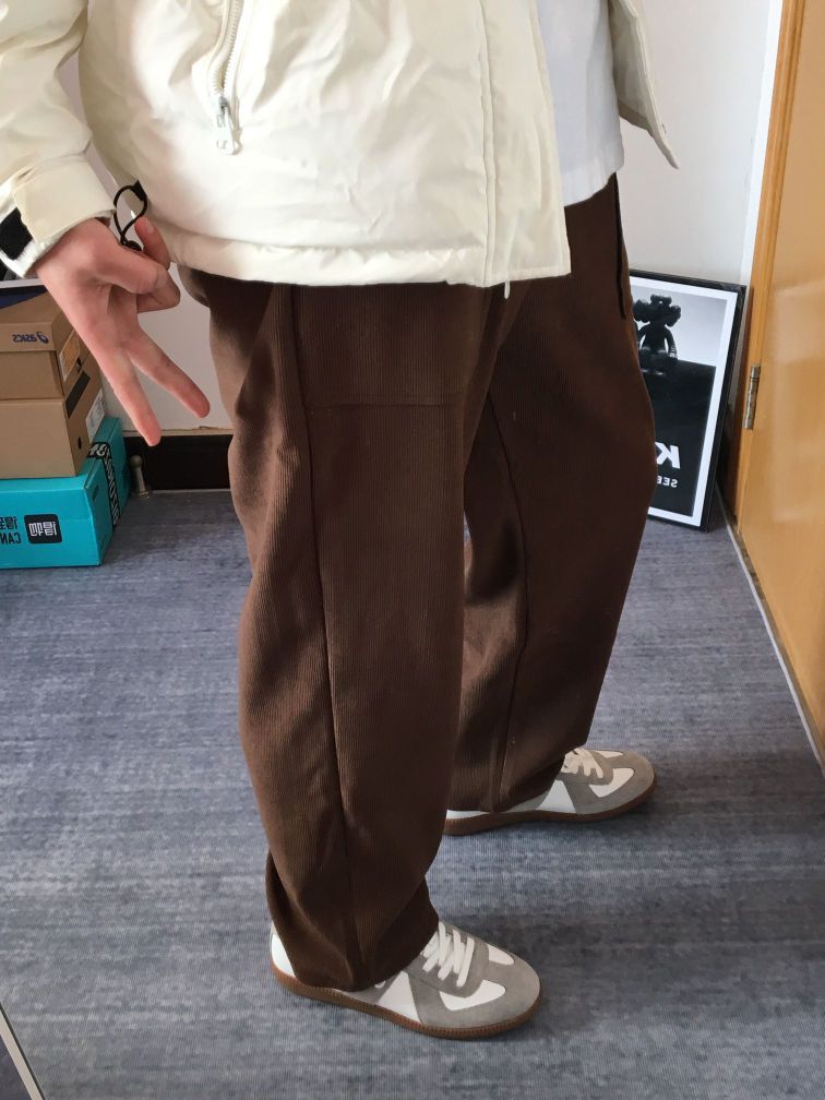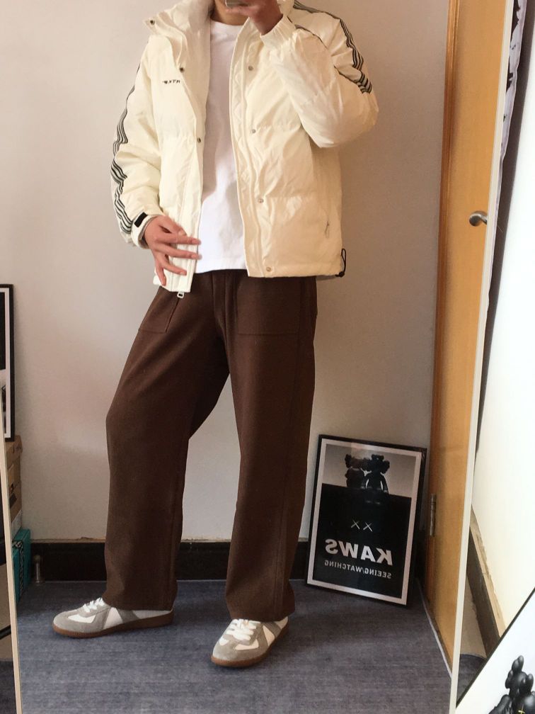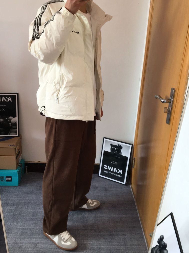如果不想穿一身黑的朋友,一定要试试白色和咖色的搭配 白色的轻薄棉服,上身不会过于臃肿衣长可以适当短一点,视觉上会显腿长穿的是一件咖色休闲裤,面料摸起来特别舒服,抗皱易打理,都不用烫 宽松版型 粗腿壮腿都适合,显瘦又显长裤子得垂感也是显而易见 咖色也特别百搭,搭配什么Look都合适