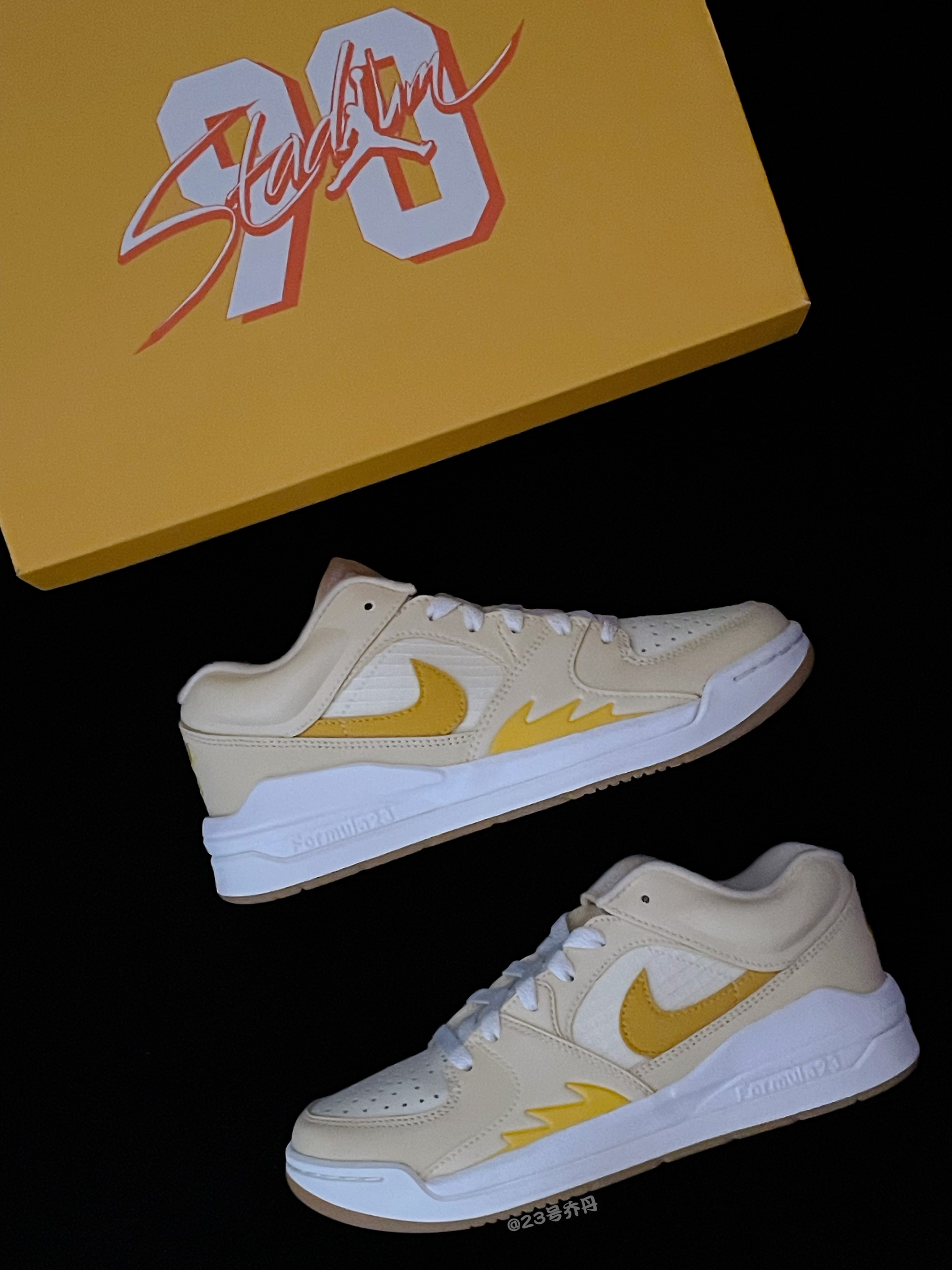 今天给大家分享这双近期发售的 Jordan Stadium 90『淡黄色』复古篮球鞋👟 这双鞋采用了椰奶色/淡黄色/黄色等搭配 鞋面大面积选用了易于打理的的光面皮革材质 鞋头密集的透气孔保证了良好的透气性 鞋舌/鞋侧/鞋尾均设计优品牌Logo刺绣图案 中底部分搭载了软弹舒适的Formula23缓震科技 最后由白色/生胶色拼接的橡胶大底收尾 整体来说这是一双颜值挺不错的复古篮球鞋👟 嫩嫩的配色很适合...