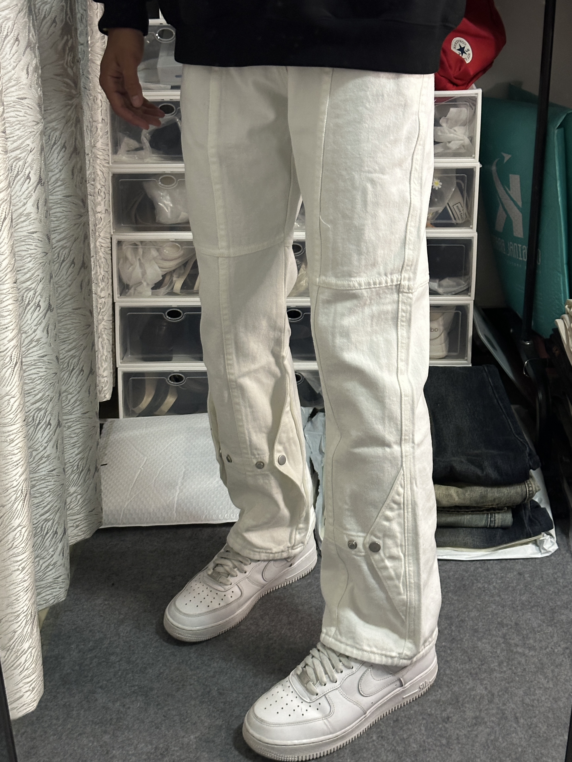 180 130 ootd穿搭分享 白牛直筒➕白色空军 简约干净穿搭 👖直筒裤,裤脚有纽扣设计,风格可以由自己定,我喜欢把扣子扣起来,会更显腿瘦腿直,真的是满分白牛,今天也太帅啦,很美式。 👟搭配了一双白色空军,上身搭配一件黑色卫衣,黑贝搭配,简约干净。