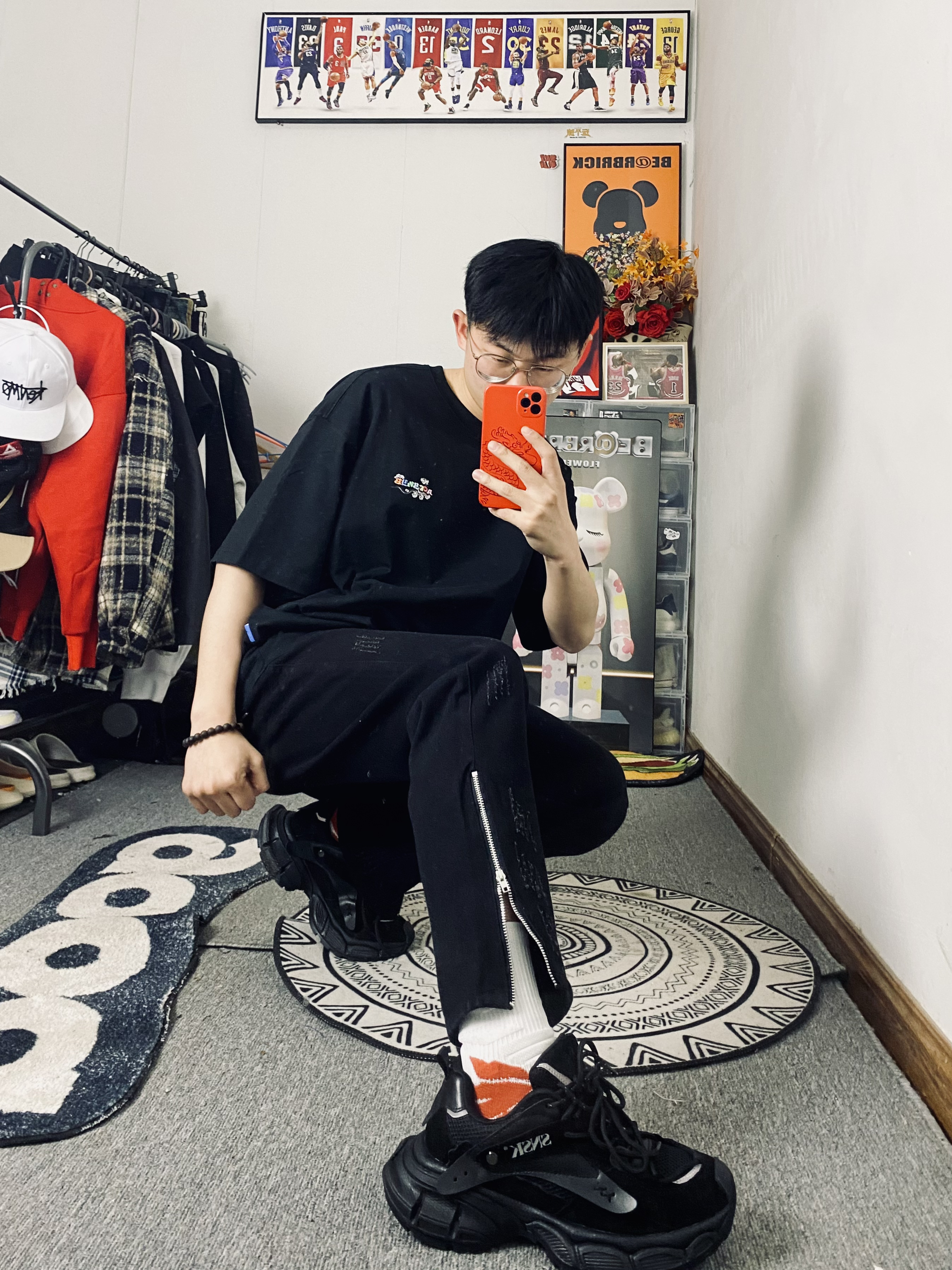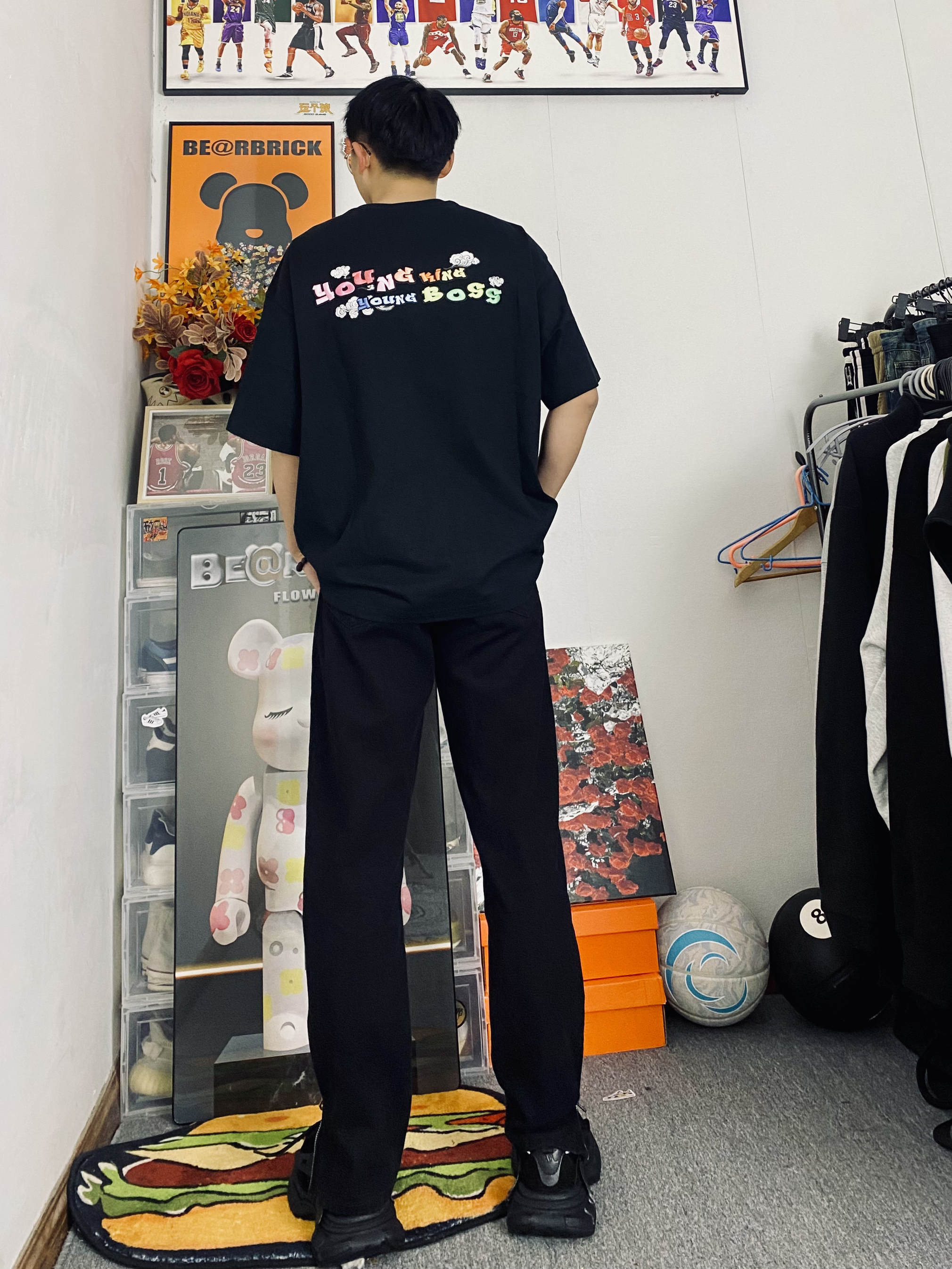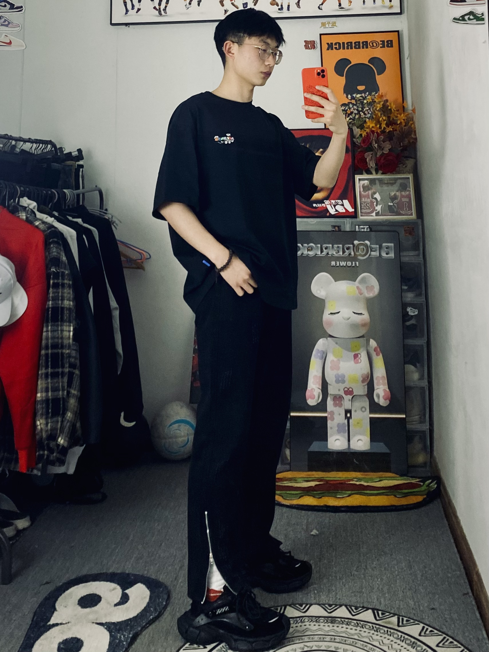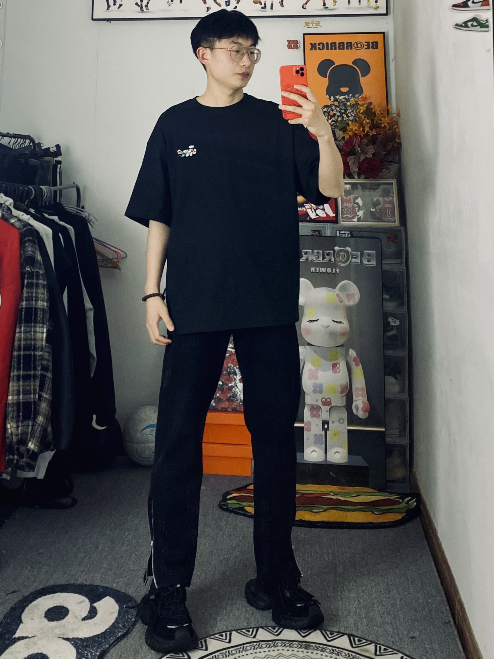 ootd/好漂亮的彩云刺绣短袖🪡 冰美式今日穿搭 👔衣服穿了一件纯棉材质的刺绣T恤 刺绣做了渐变设计新颖独特 春夏穿都适合🙈出门逛街百搭 — 👖裤子是一条黑色侧边拉链牛仔裤 裤子是款宽松直筒的版型百搭耐看 — 👟黑色老爹鞋 厚实的大底对小个子友好 — 尺码推荐:身高/体重:178/130 衣服裤子:L