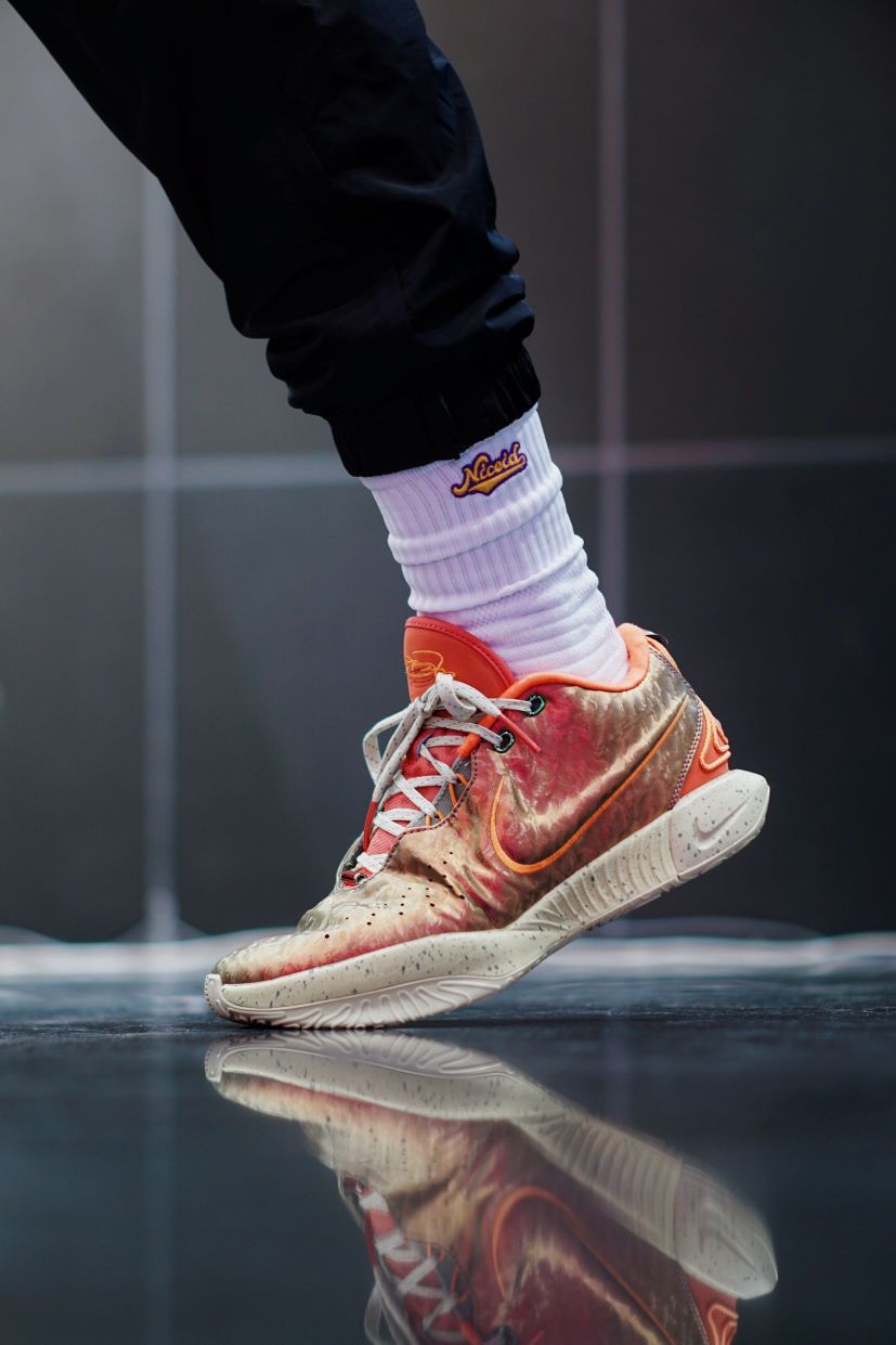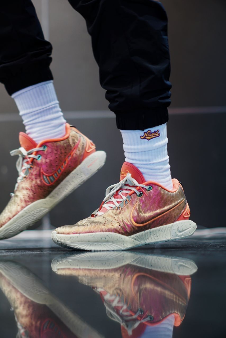 今日上脚LBJ 21全明星 配色灵感和之前一脉相承 之前绝大部分配色都是以珍珠为灵感 这双则是以女王螺为灵感 呈现出美轮美奂的色彩 这双螺因为其极具观赏性 且相当稀有而闻名于世 这双鞋詹姆斯并没有在全明星正赛上脚 他选择的是致敬另一双经典鞋款 Air Diamond Turf Max 96的配色 也是相当帅气的 两种不同的风格呈现 你会如何选择呢