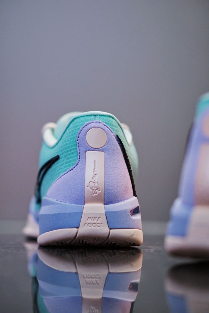 作为进入很多博主的2023年度排行的鞋子 Sabrina确实有自己的一套东西 何况它还具有非常帅气的外观 这双新配色BROOKLYN FINEST 薄荷绿与淡紫色的主色调搭配 有点Sabrina所在球队 纽约自由人主场配色的感觉了 鞋子最让我满意的就是脚感了 上脚就能感受到的软弹属实不错 前掌的zoom气垫反馈很足 还没穿过的可以尝试尝试啦~