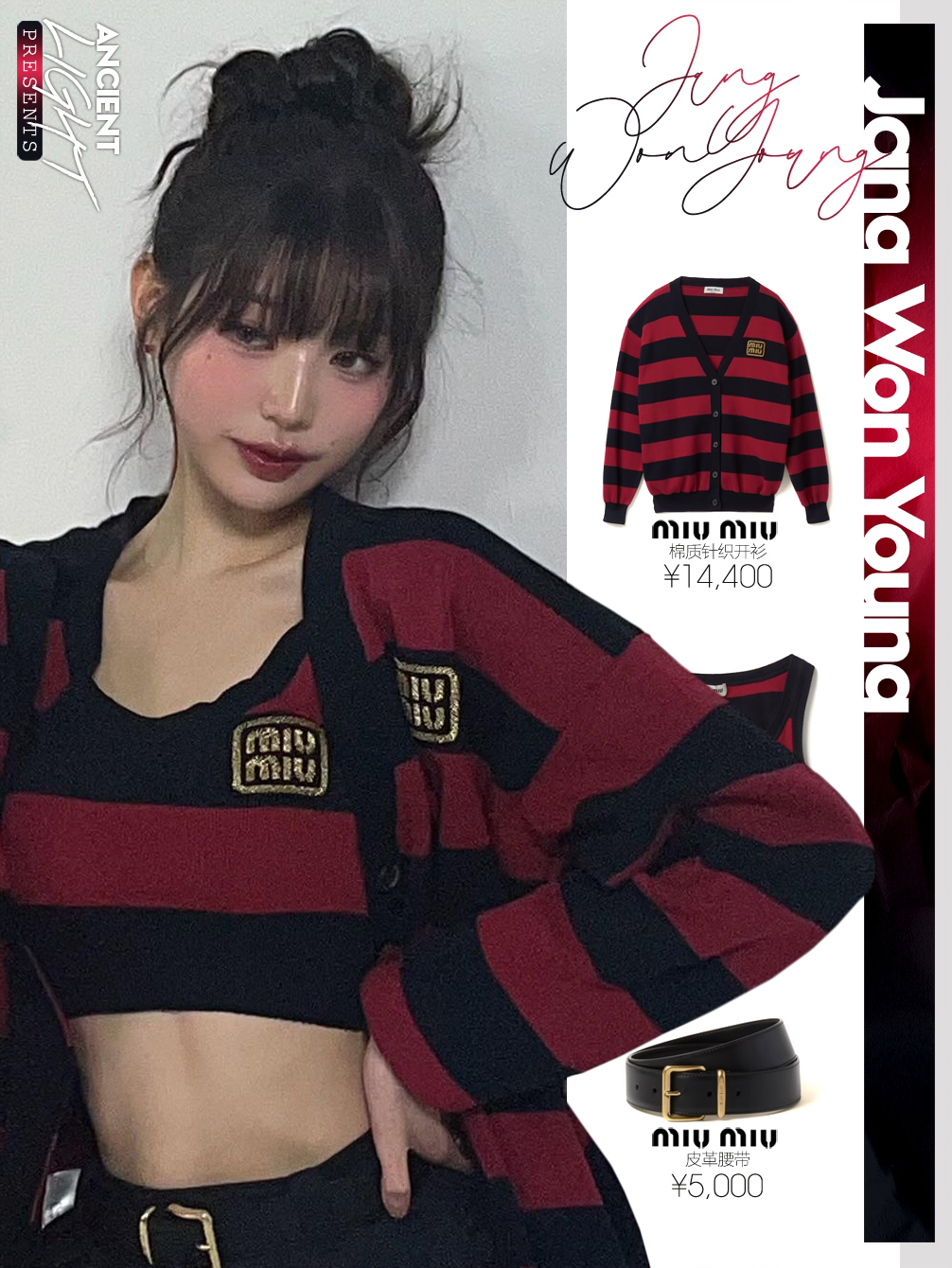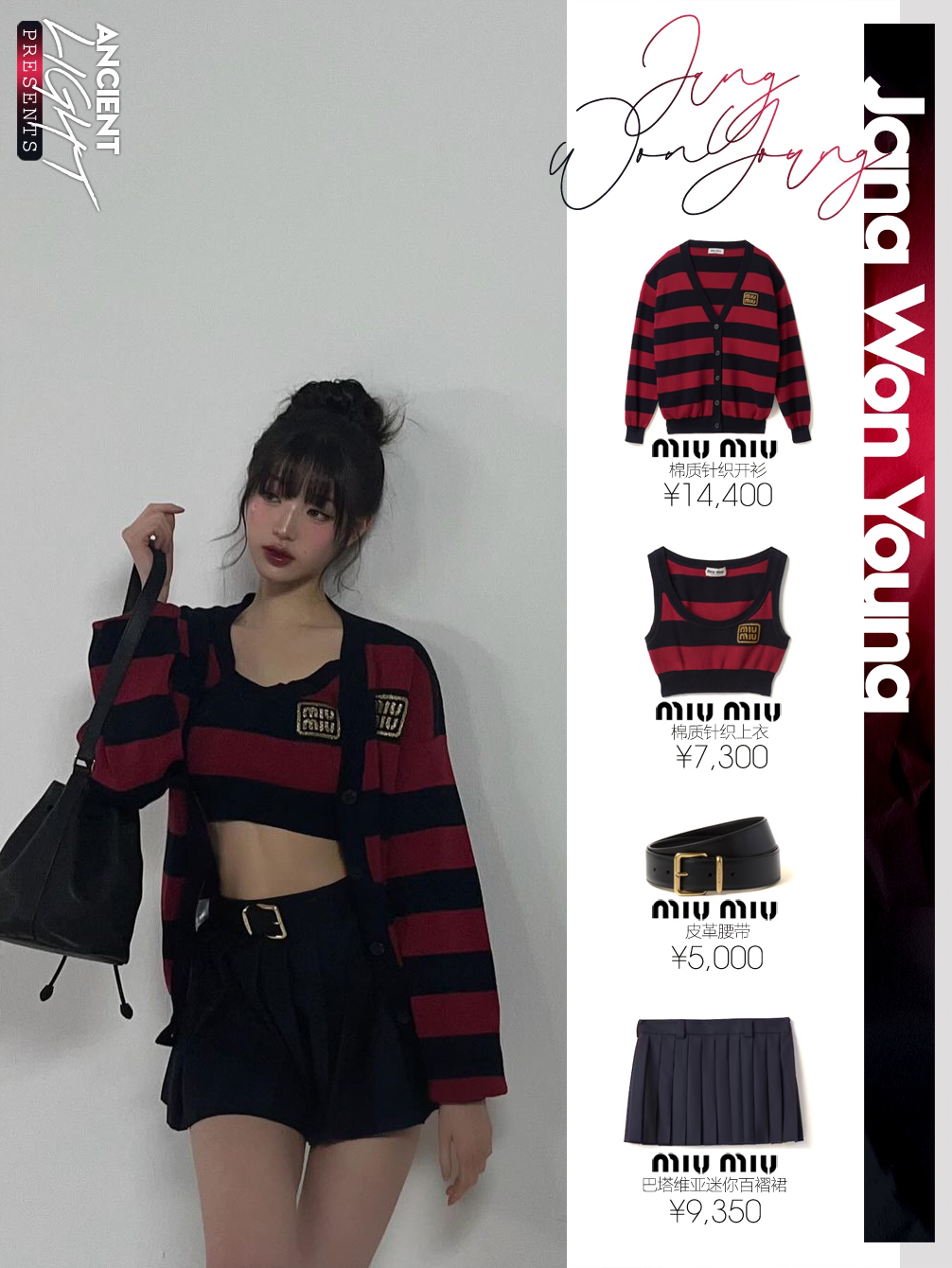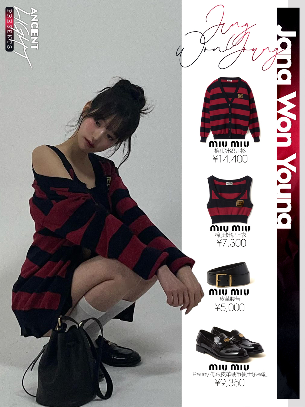 被条纹衬衫映衬下的小圆,犹如涩谷辣妹,高花苞发,配上桃子妆感,甜美微醺看着水嘟嘟的。 针织衫|miumiu棉质针织开衫 货号MMF857_14M2_F0X58_S_OOO 上衣|miumiu棉质针织上衣 货号MMV169_14M2_F0X58_S_OOO 腰带|miumiu皮革腰带 货号5CC536_2AIX_F0002 半身裙|miumiu巴塔维亚迷你百褶裙 货号MG2040_11AD...