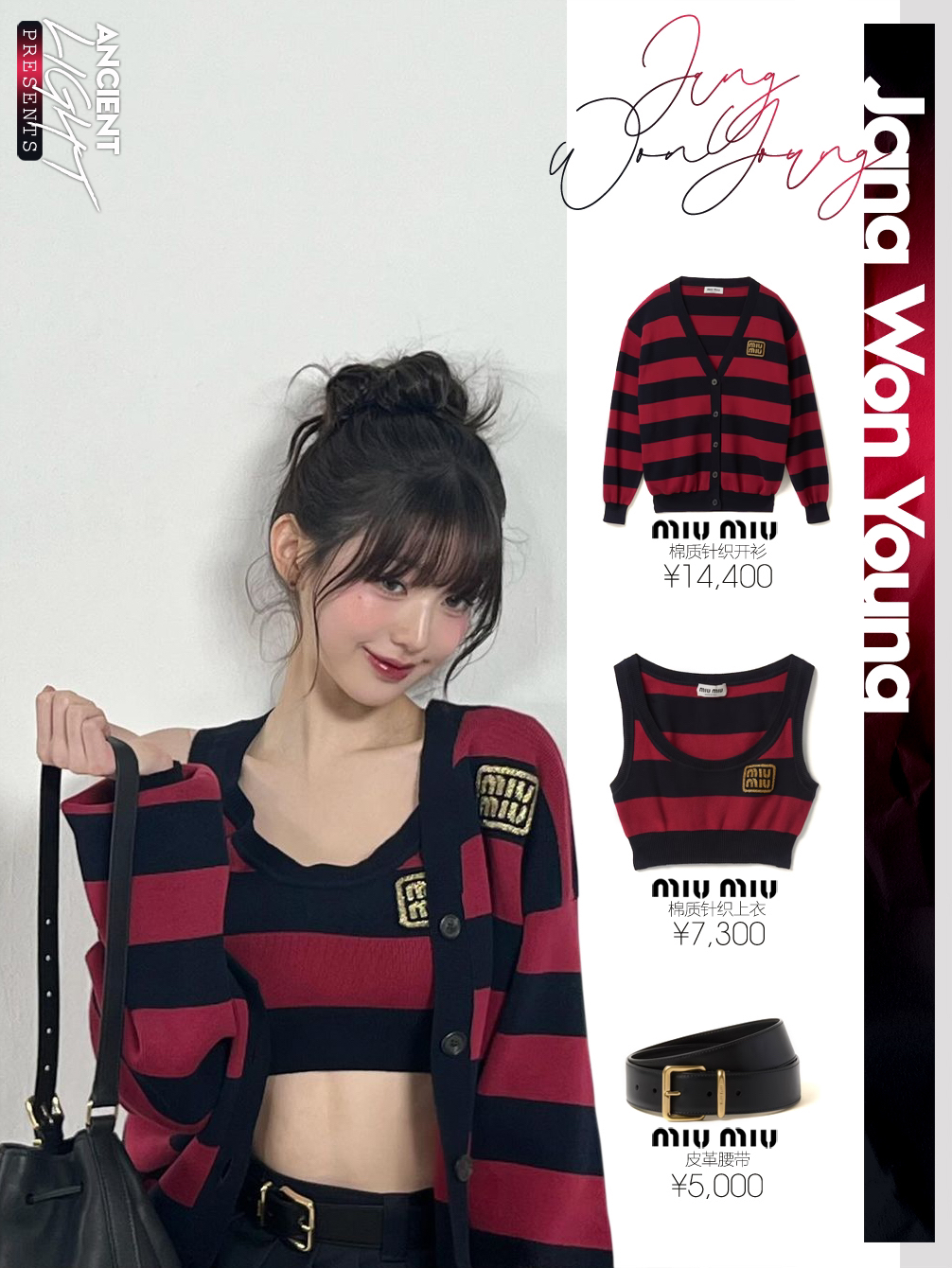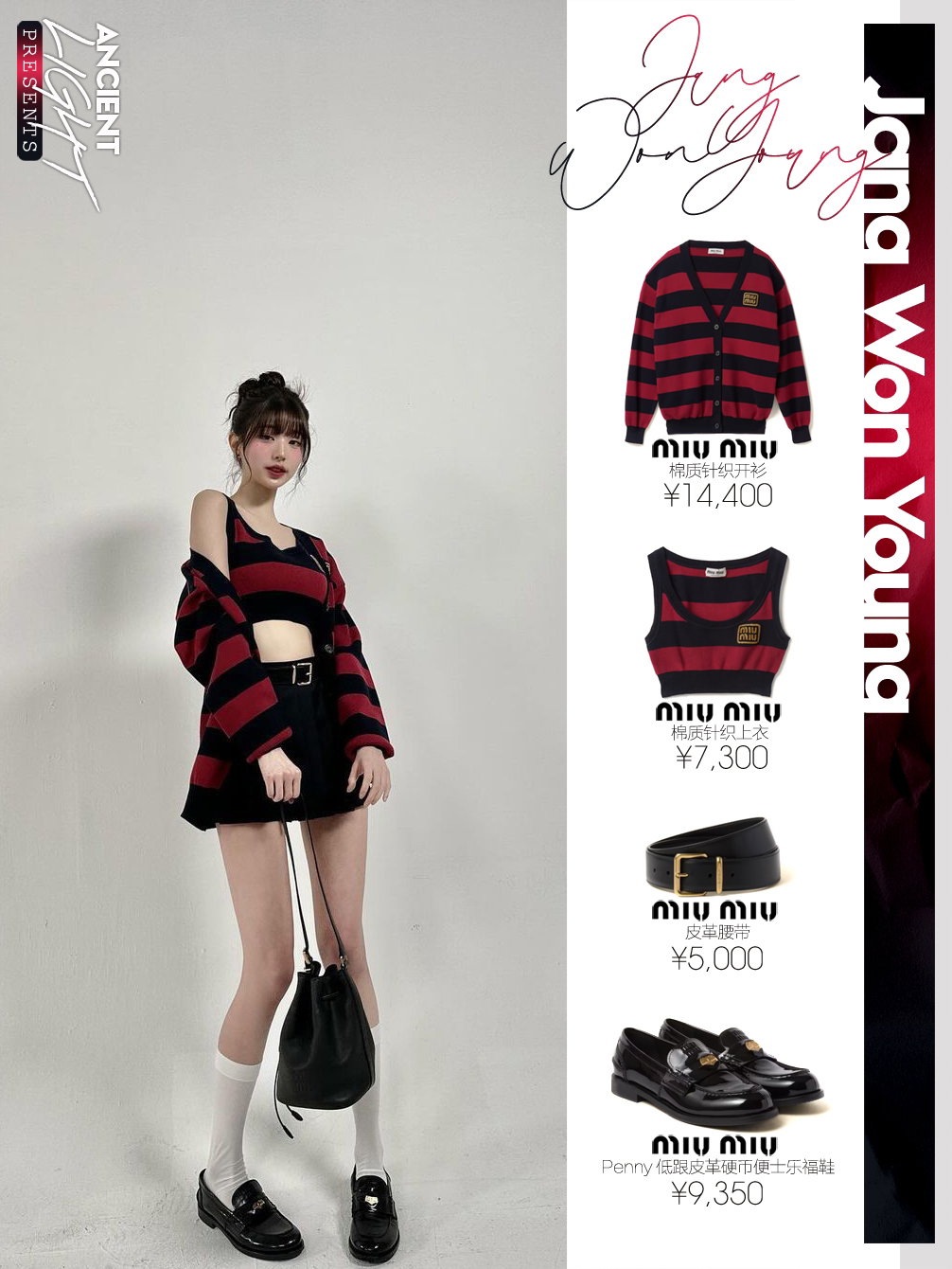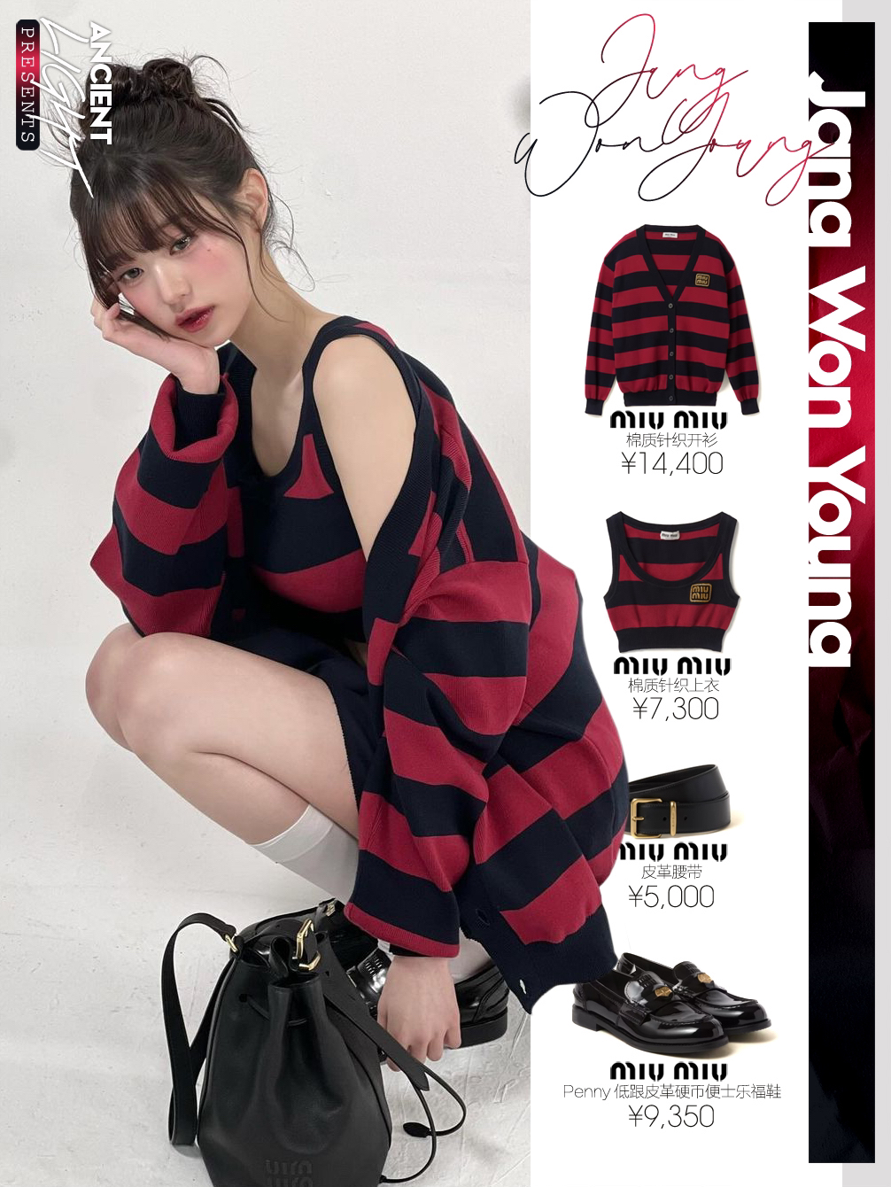 被条纹衬衫映衬下的小圆,犹如涩谷辣妹,高花苞发,配上桃子妆感,甜美微醺看着水嘟嘟的。 针织衫|miumiu棉质针织开衫 货号MMF857_14M2_F0X58_S_OOO 上衣|miumiu棉质针织上衣 货号MMV169_14M2_F0X58_S_OOO 腰带|miumiu皮革腰带 货号5CC536_2AIX_F0002 半身裙|miumiu巴塔维亚迷你百褶裙 货号MG2040_11AD...