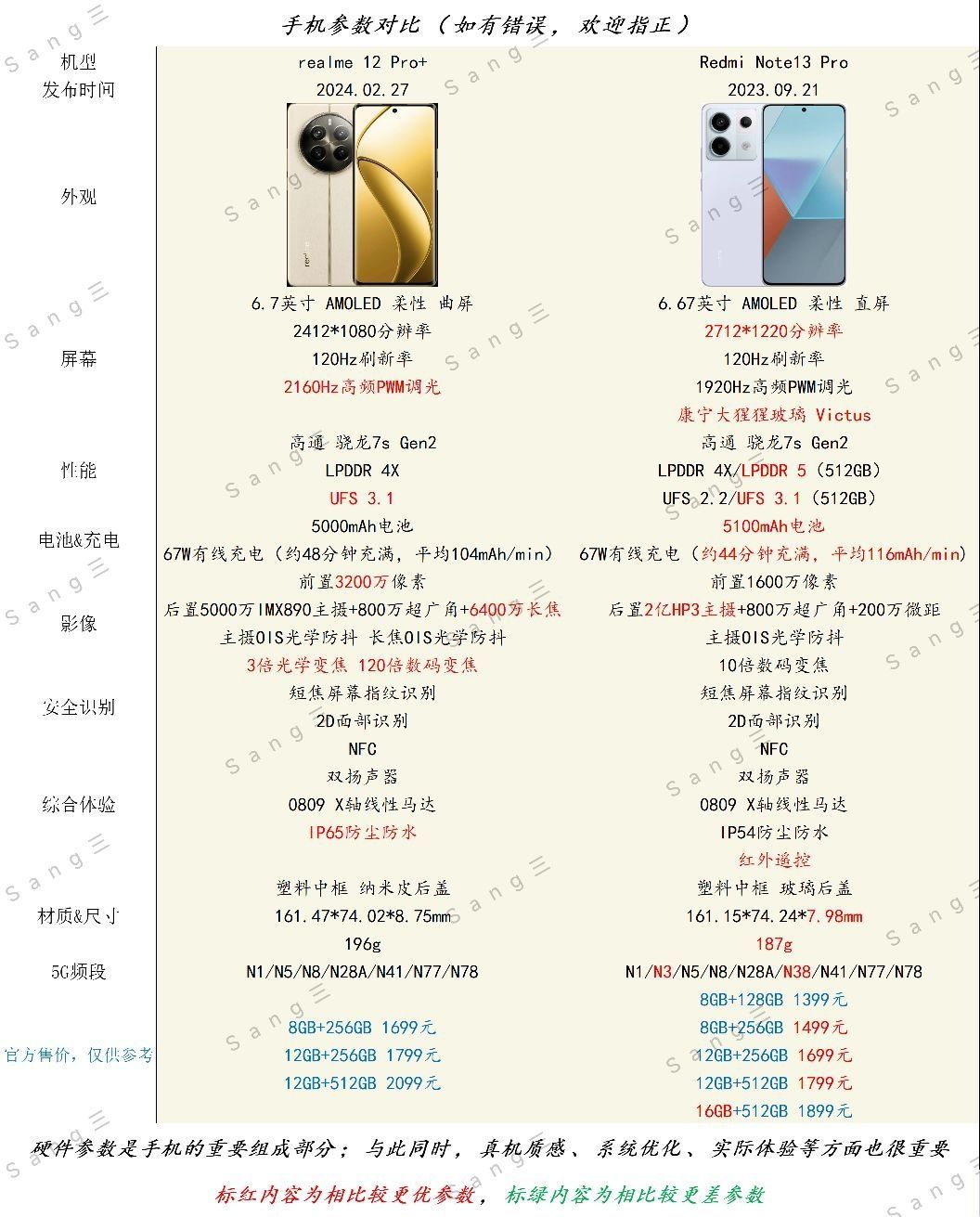 【realme 12 Pro+「对比」Redmi Note13 Pro】,由用户 Sang三 分享,来自上海。这是一篇来自识货社区的真实用户分享笔记。
