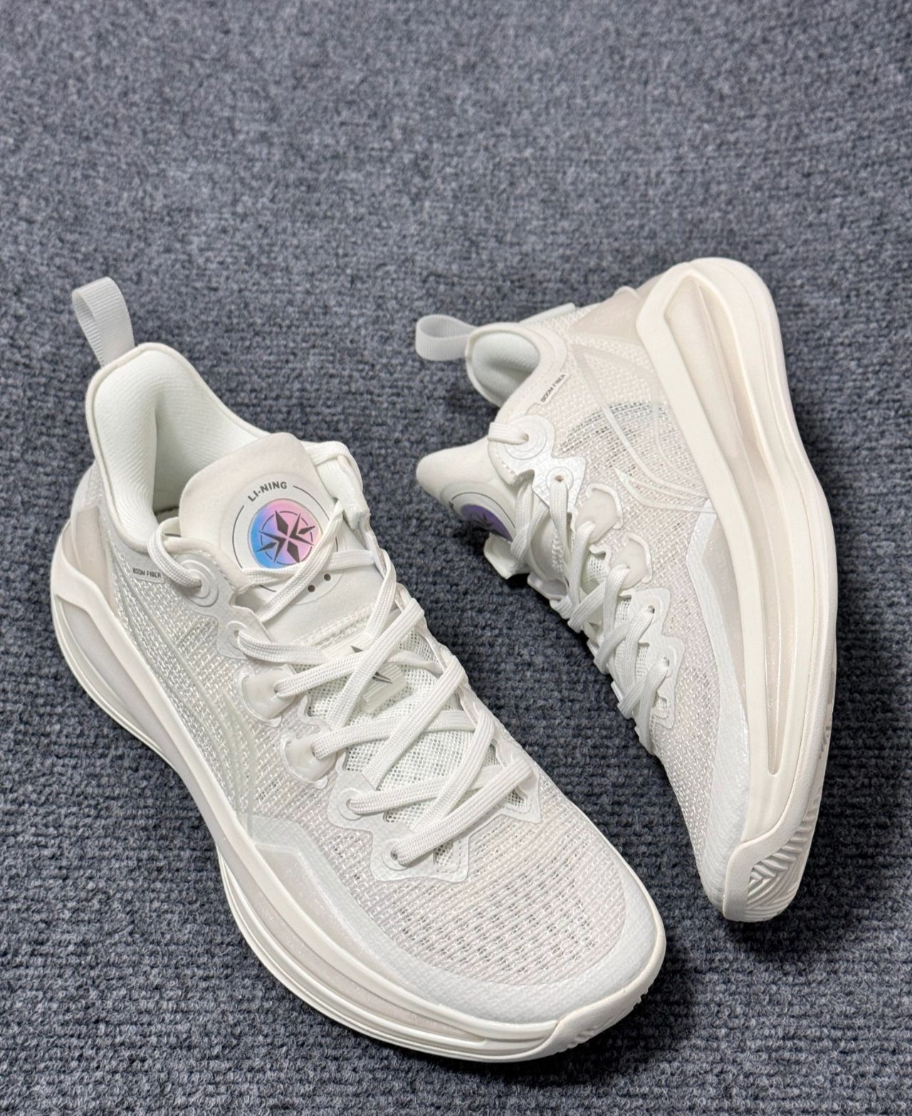 今天分享一双李宁利刃3V2珍珠白高帮实战篮球鞋 这双鞋子的鞋面采用的是鑫丝材质,鞋子整体比较轻。 中底使用了内外两层TPU,内部还有一块抗扭支撑片,上脚感觉足弓支撑感蛮强的。鞋底采用的是橡胶材质,水波纹的纹路,是鞋子的防滑耐磨性提升蛮大的。除了实战 这个鞋子的配色也适合日常穿搭,搭配上运动装或者校服都蛮不错 适合学生党