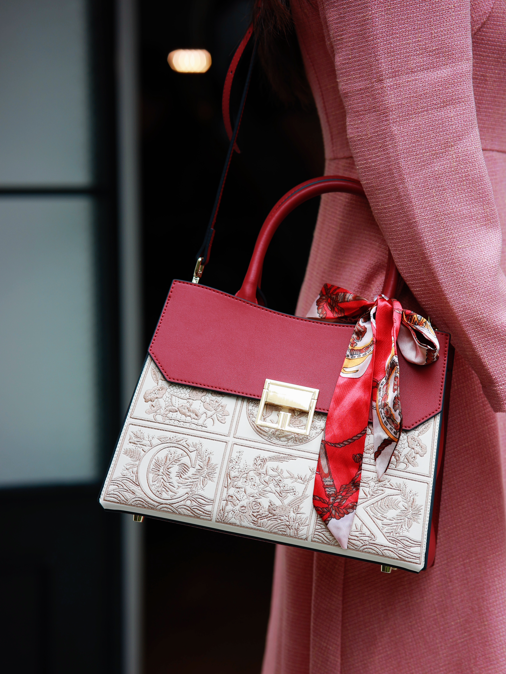 今天尝试一下职场迷人大姐姐的气质通勤穿搭吧~ 粉粉嫩嫩的小香风 毕竟女生过了20岁就不要穿的像个孩子了嘛~ 粉色真的很适合夏天 清新又优雅~ 粉色不会显沉闷~ 这只红色系的包包和连衣裙色系一样~ 出门旅游 通勤的话一只包包就能解决大部分需求 防晒喷雾,手机📱墨镜什么都能装下 可手提也可斜挎 包包的实用性很大~ 女神节送女朋友也很不错~ 包包 VINEY @VINEY女包 @VINEY穿搭