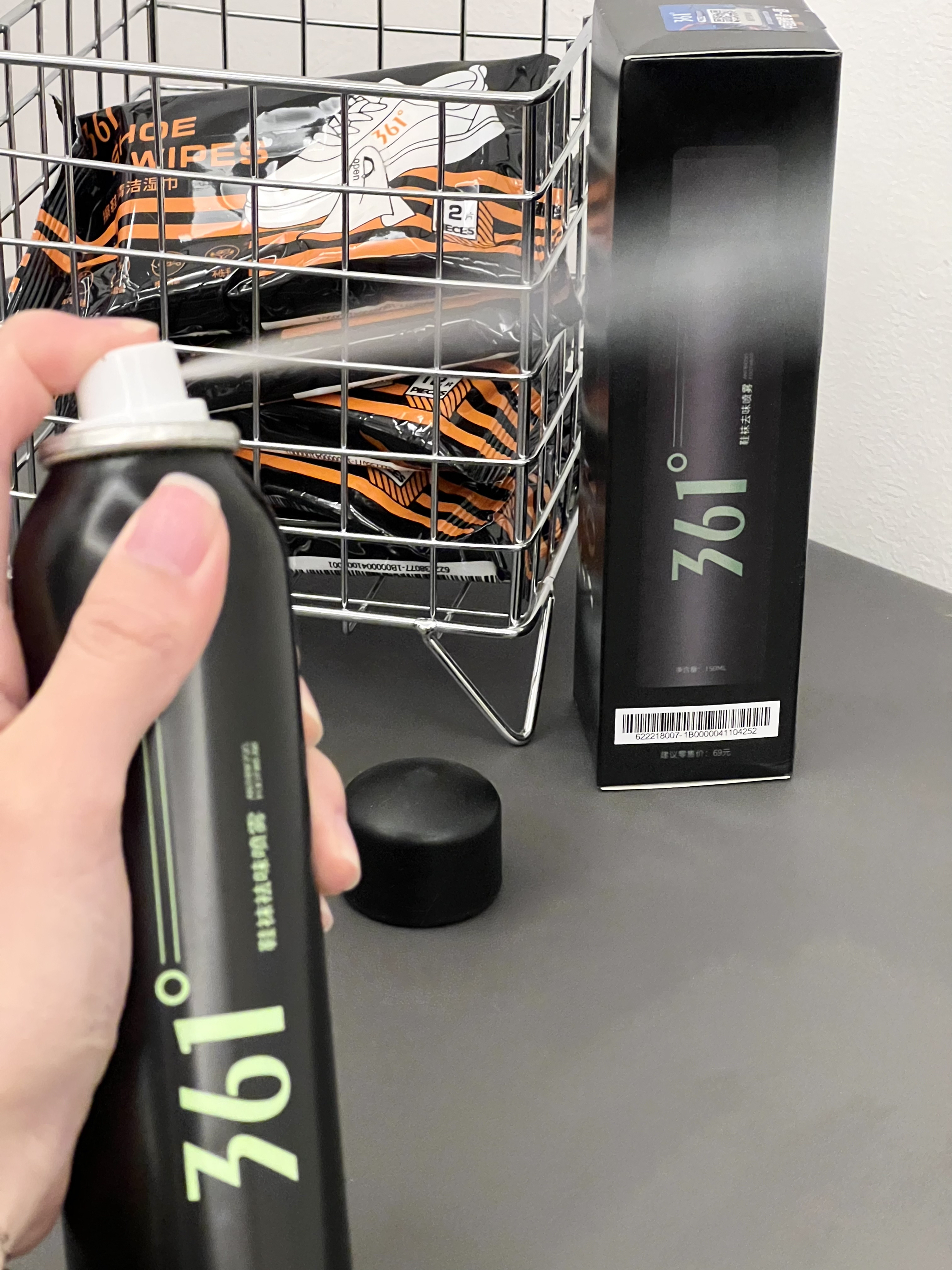 有些鞋子比较闷脚 一脱鞋那个味道真的绝了 入手361这个除臭喷雾 简单方便 只需要按压就可以了 喷雾很细腻 味道也很好闻 祛味很有效果 小小一瓶方便携带 还有送擦鞋湿巾 擦鞋子尊的hin干净