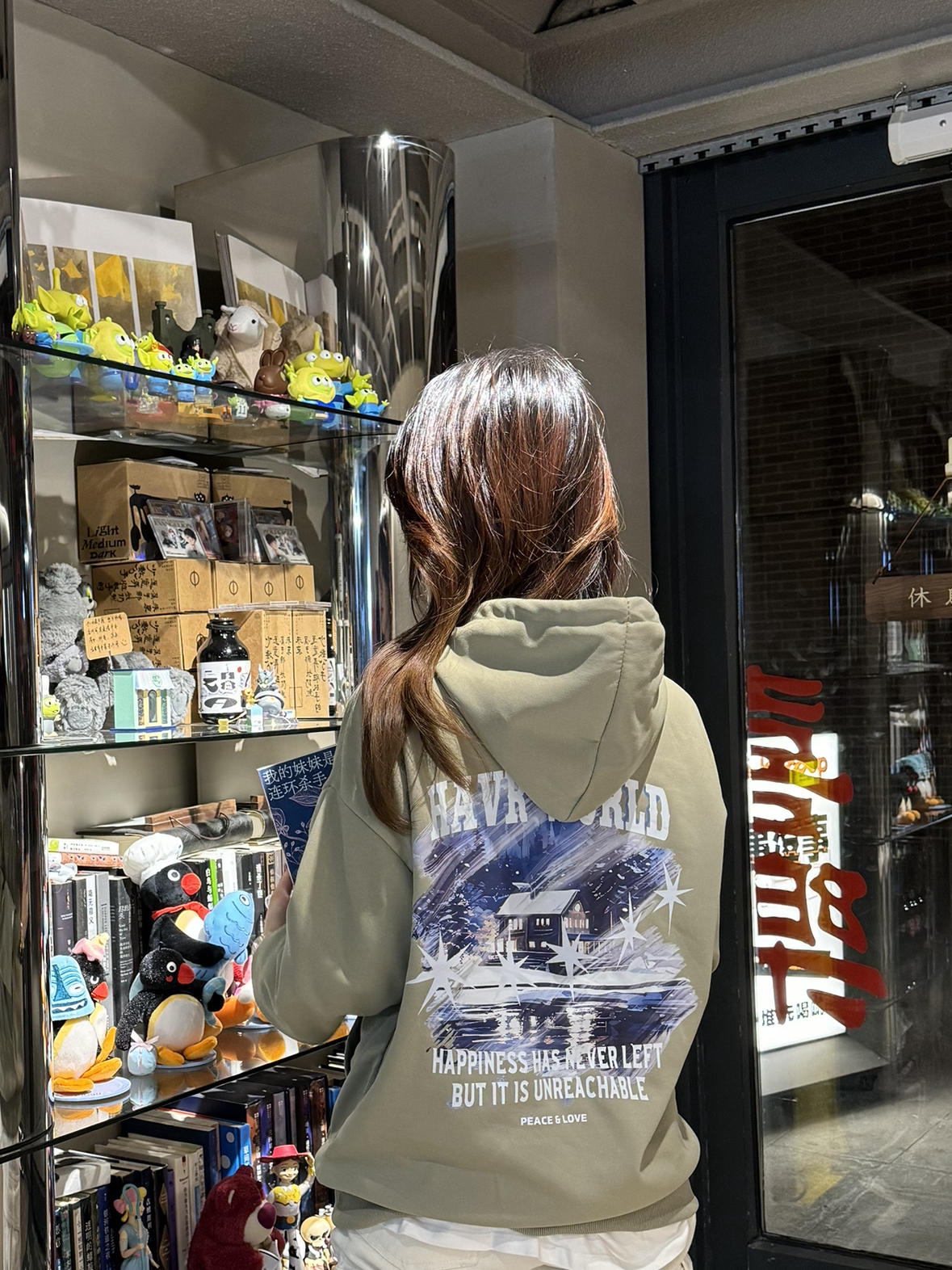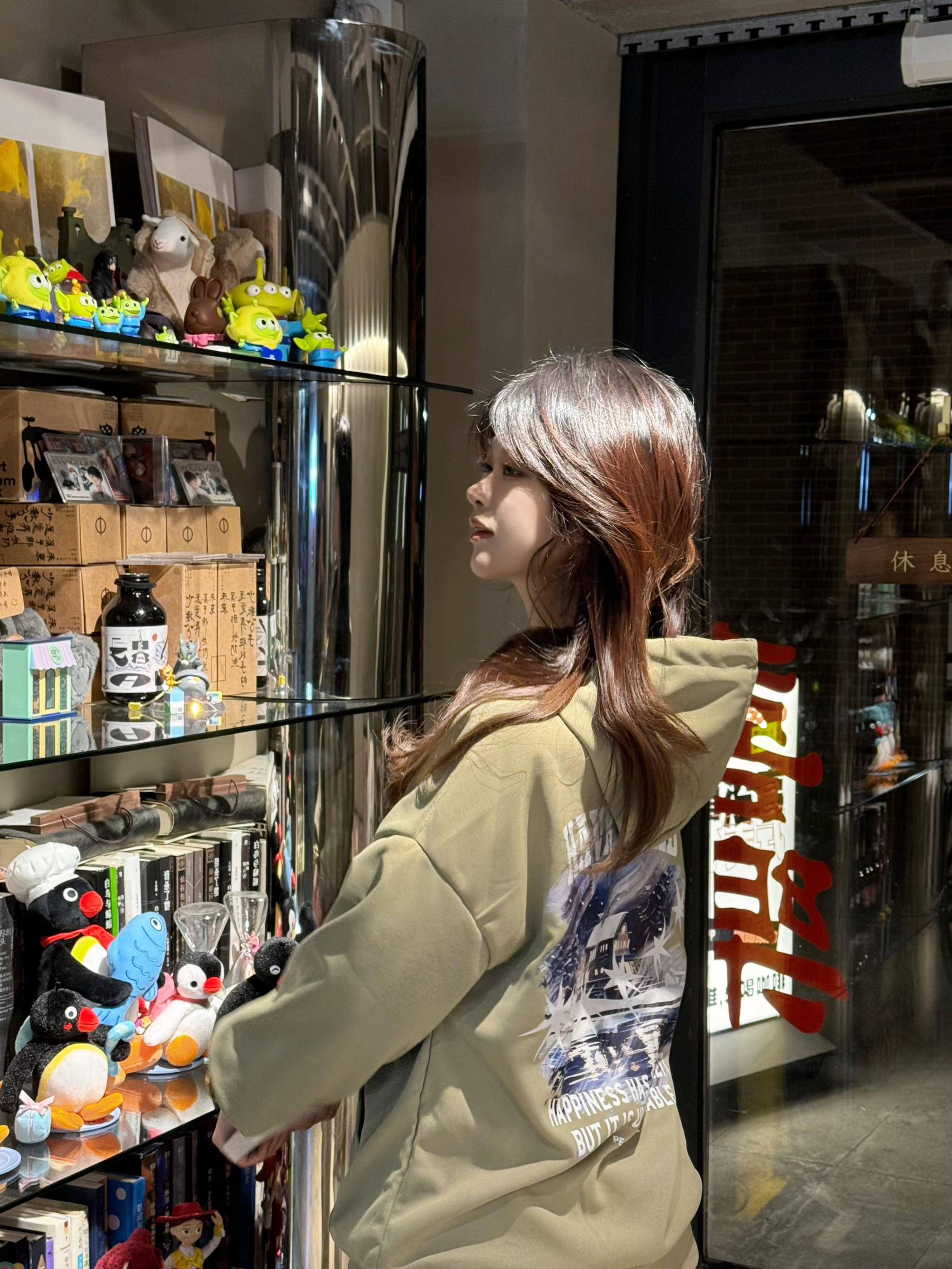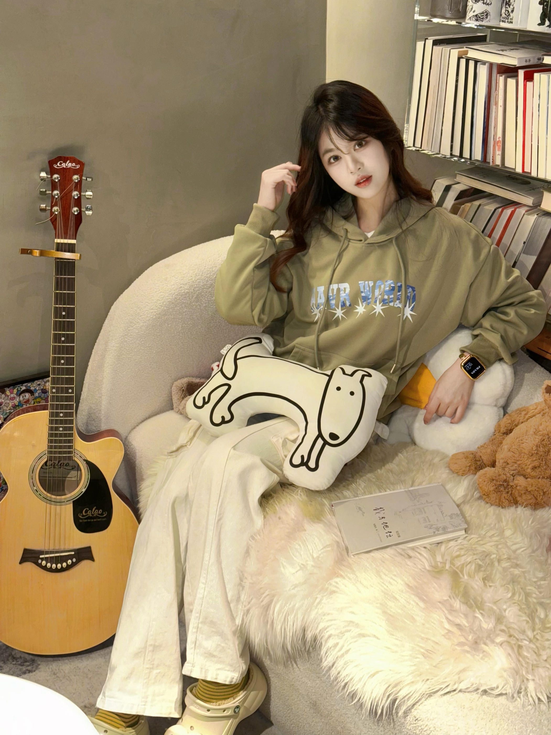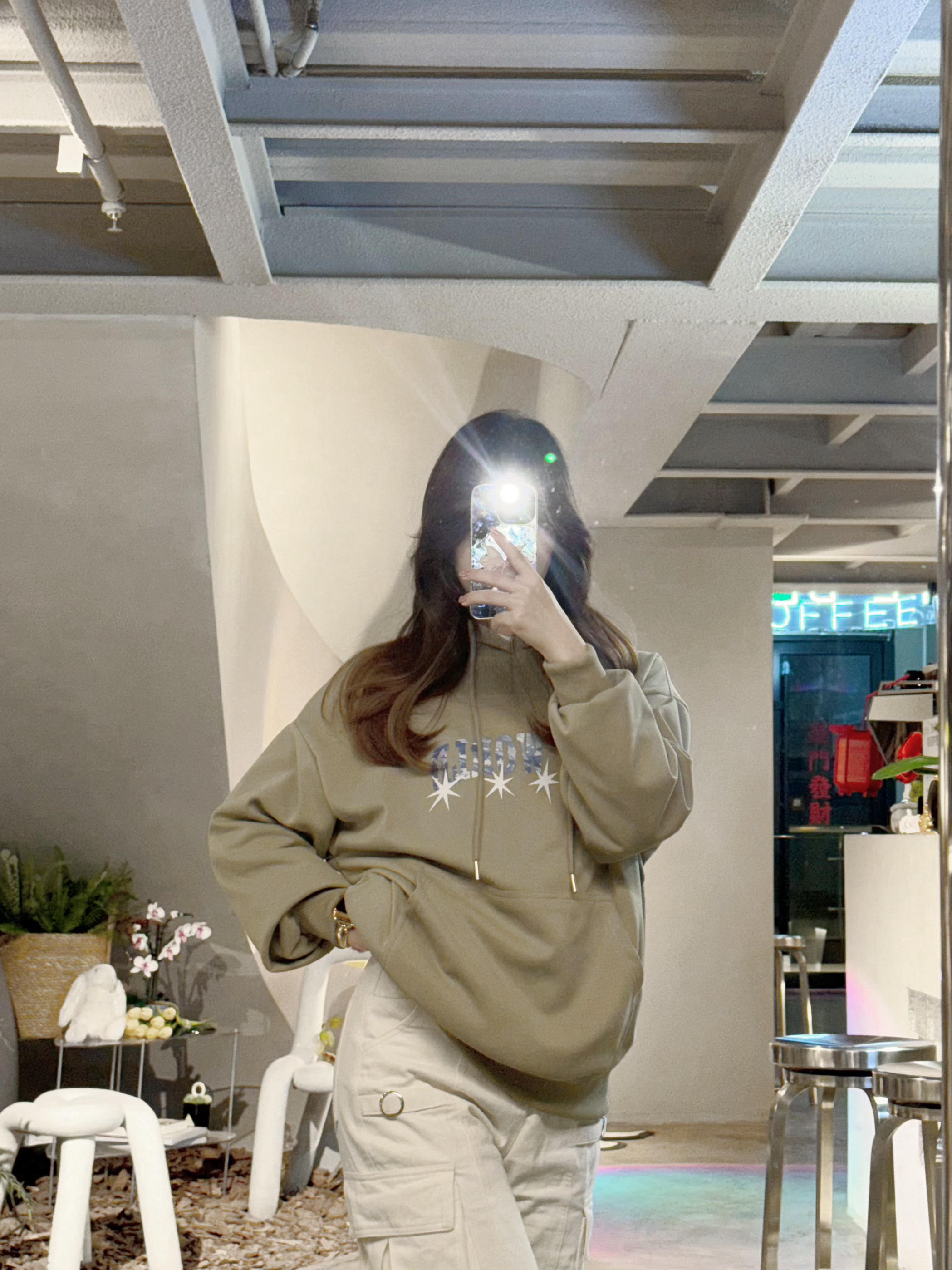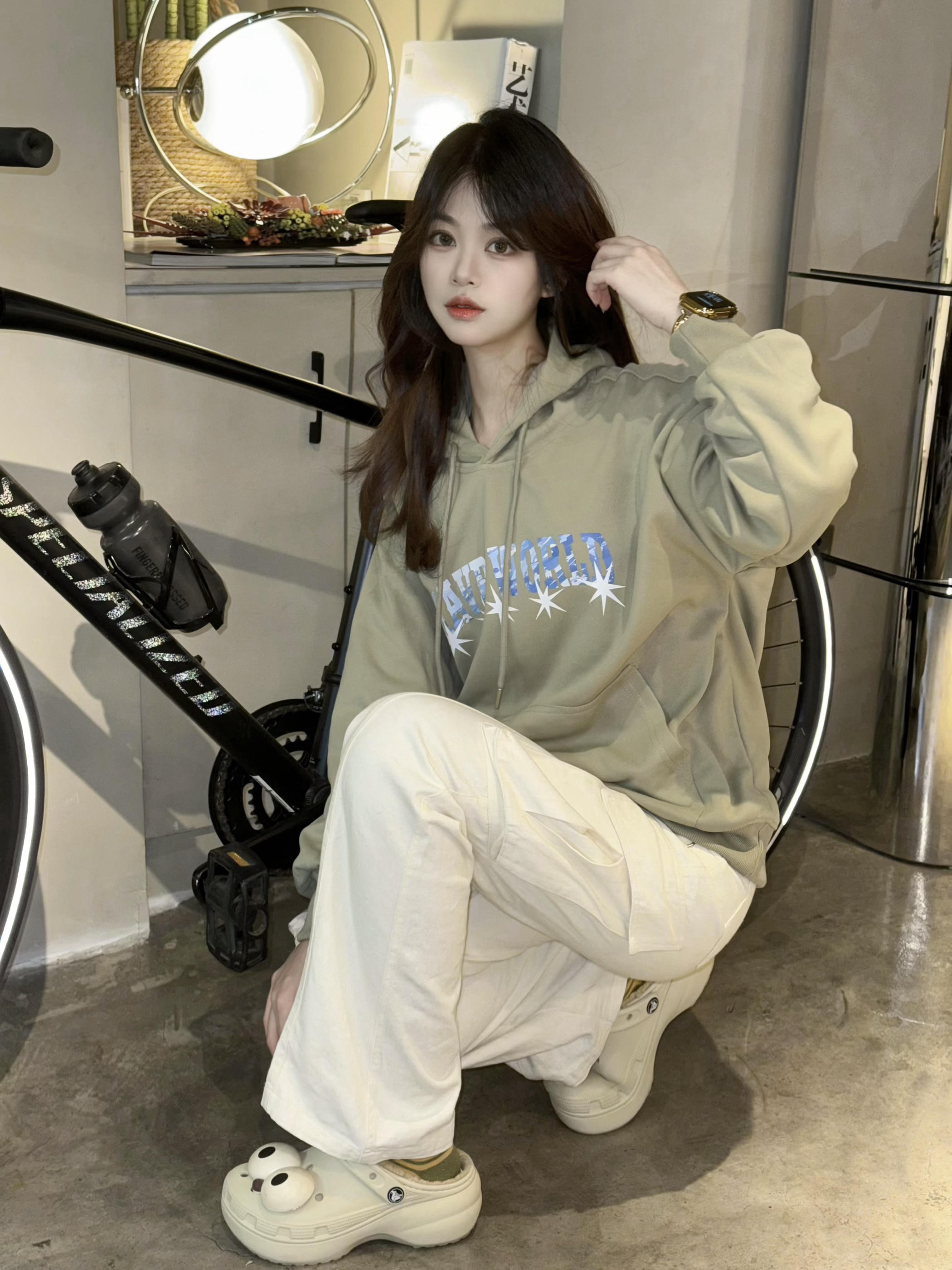 哈喽哈喽👋这里是分享小个子穿搭的亦小木🌸 🥰158/82斤的小个子平时经常买不到合身的卫衣,要么太长要么太宽松 这件卫衣S码衣长只有66,真滴很合适不到160的小个子👧~ 苔藓绿很显高级,卫衣+毛绒洞洞鞋+袜子都是同色系穿搭,搭配白色工装裤, 色调干净的高级绿色系,很适合开学季嗷🙋