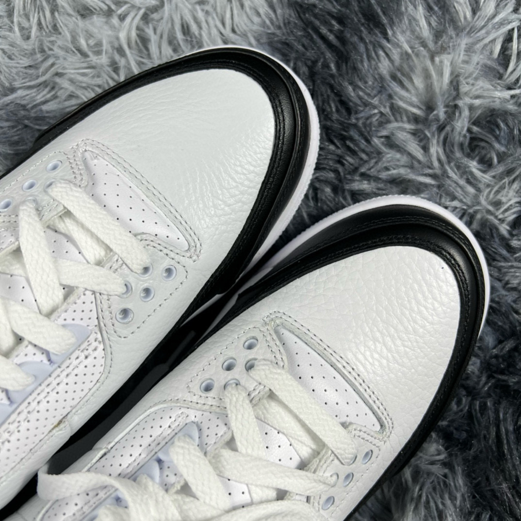 藤原浩外号“盖章大师”,这双Air Jordan Ill Fragment 是其代表作之一,当然不出所料整双鞋盖满了章🔥 1️⃣外观细节 鞋子整体采用黑白配色,简约大气,在侧边上加入了黑色皮革包边,替代了原有的爆裂纹设计。白色部分使用质感极佳的荔枝皮,手感细腻柔软;黑色也是光面皮革,非常好打理。后跟侧面则是闪电logo的压印了,非常的饱满,彰显联名身份。后跟则是以经典的Fragment ⚡⚡log...