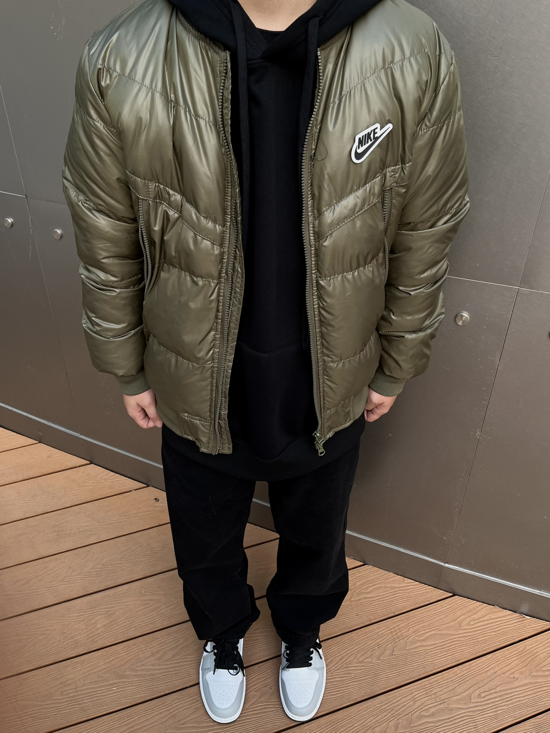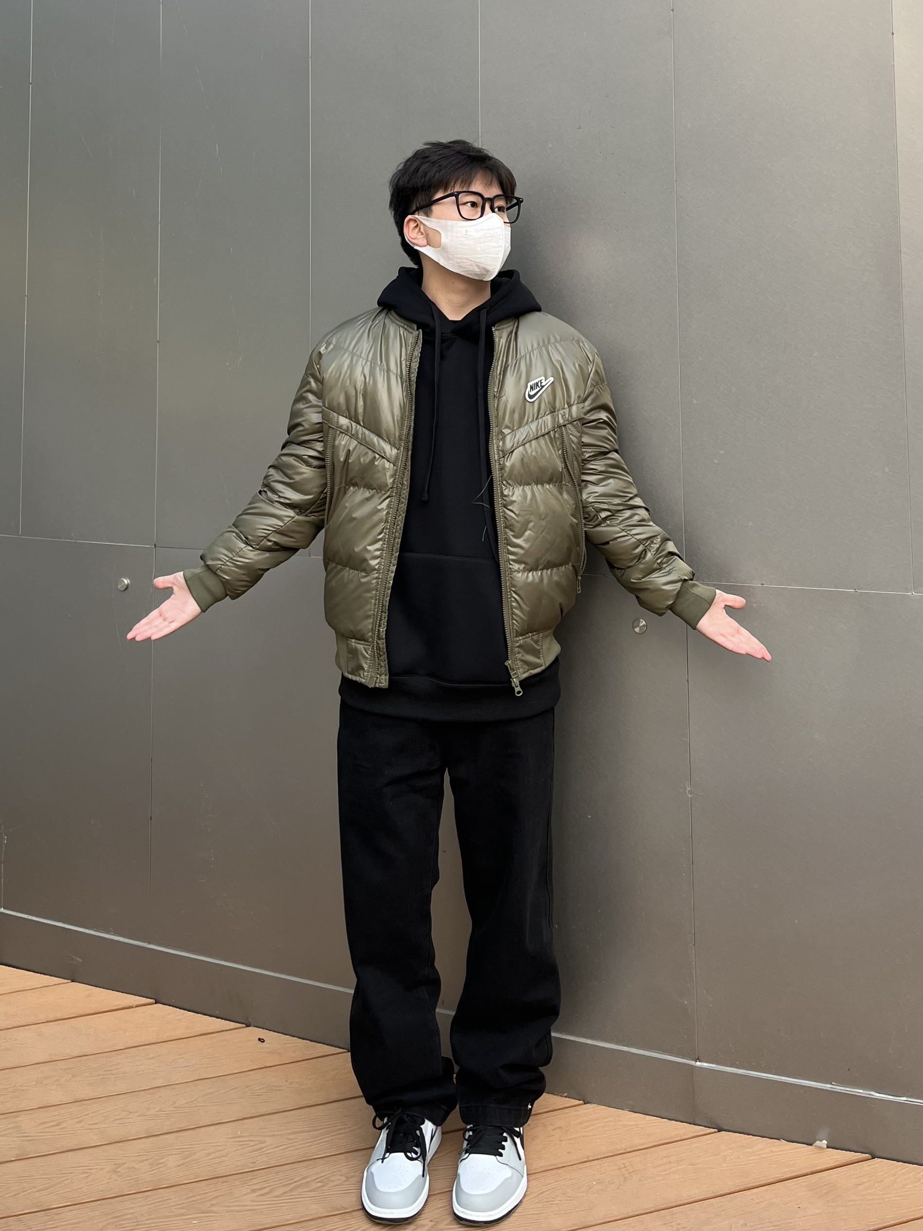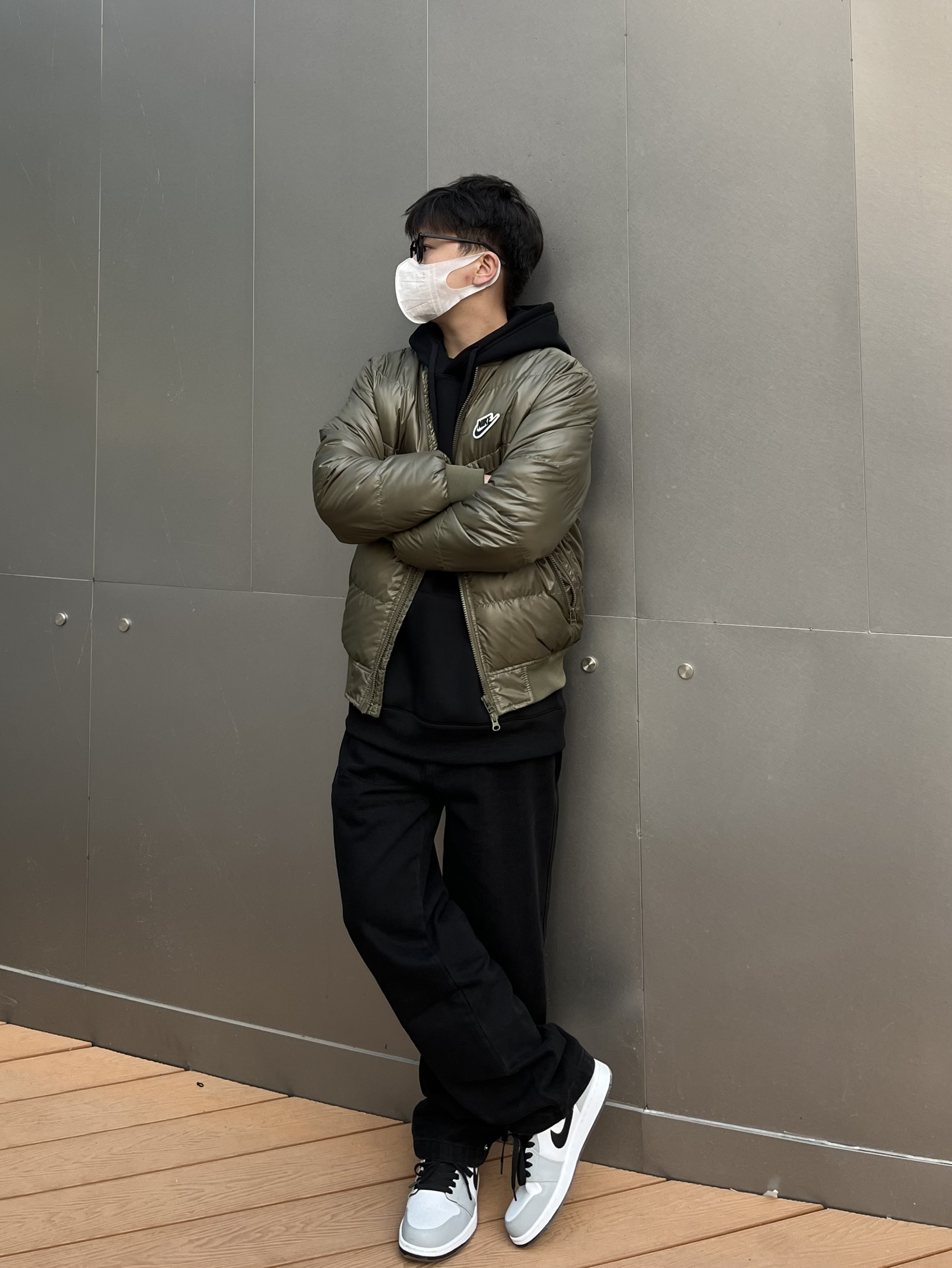 NIKE这件橄榄绿外套还是非常有质感的✔️ 复古百搭耐看 冬季运动男生这样穿真的好看 内里叠穿一件卫衣更保暖还可以增加层次感 裤子选择一条黑色休闲卫裤 直筒神裤不嫌多 微宽松版型日常舒服 显高显瘦显腿直很正🤓 鞋子穿的是AJ1的烟灰配色 一套街头感满满