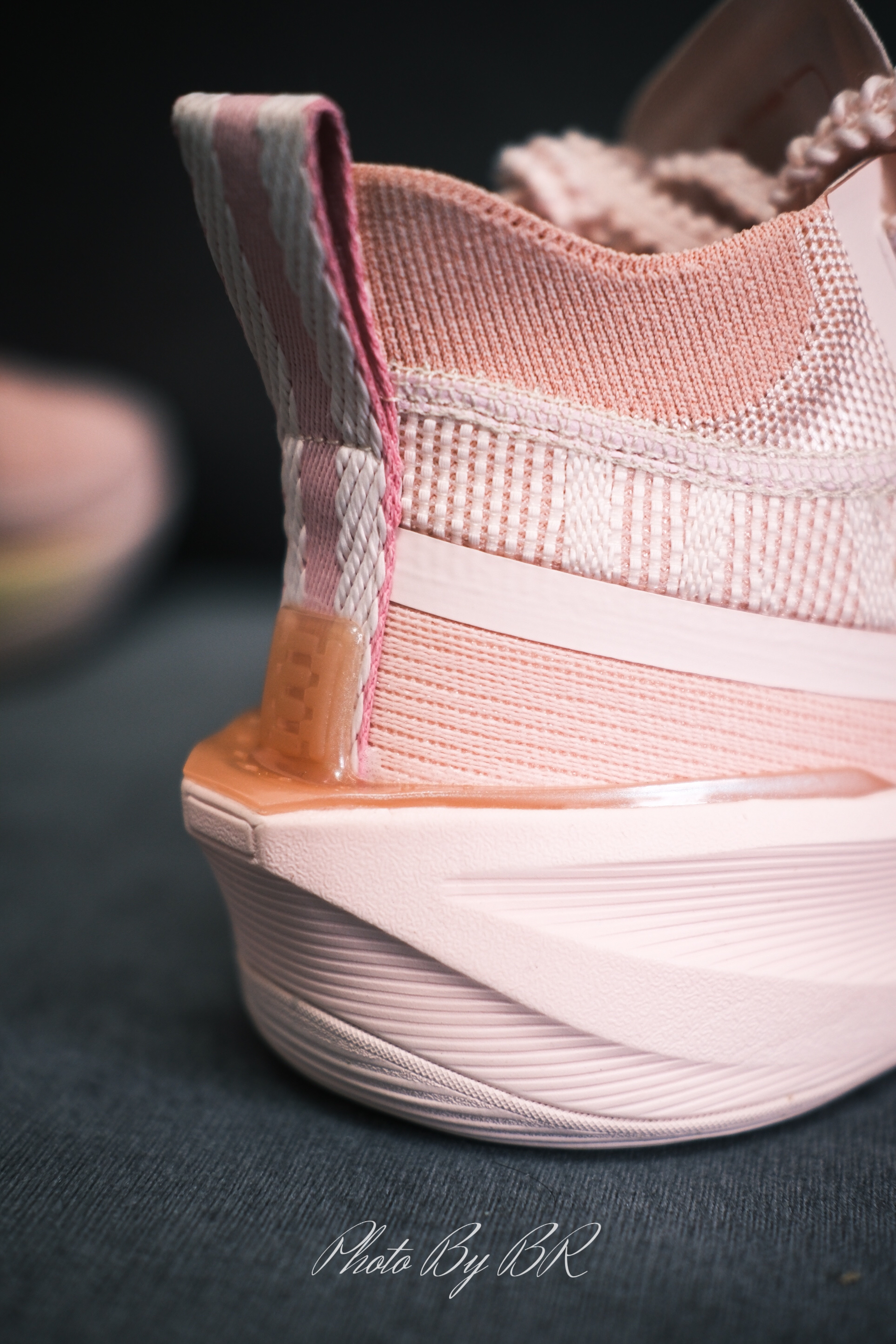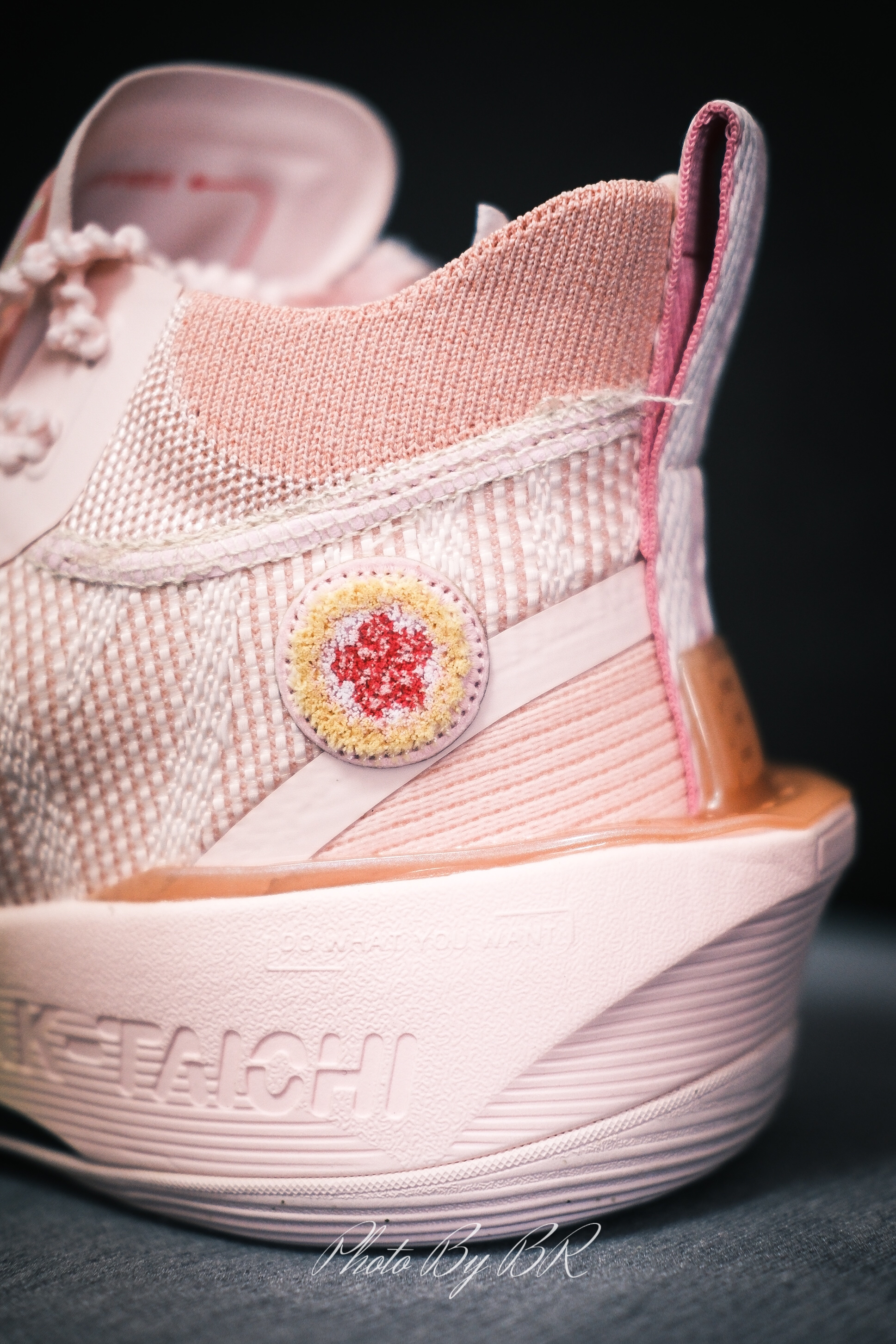 樱花配色可谓是态极大三角家族最为经典的配色之一,在大三角3.0 Pro 表现也是十分出色,鞋身采用大面积嫩粉色处理,在后跟区域设有樱花🌸点缀,就连鞋带也都采用攒绒处理,质感优秀。