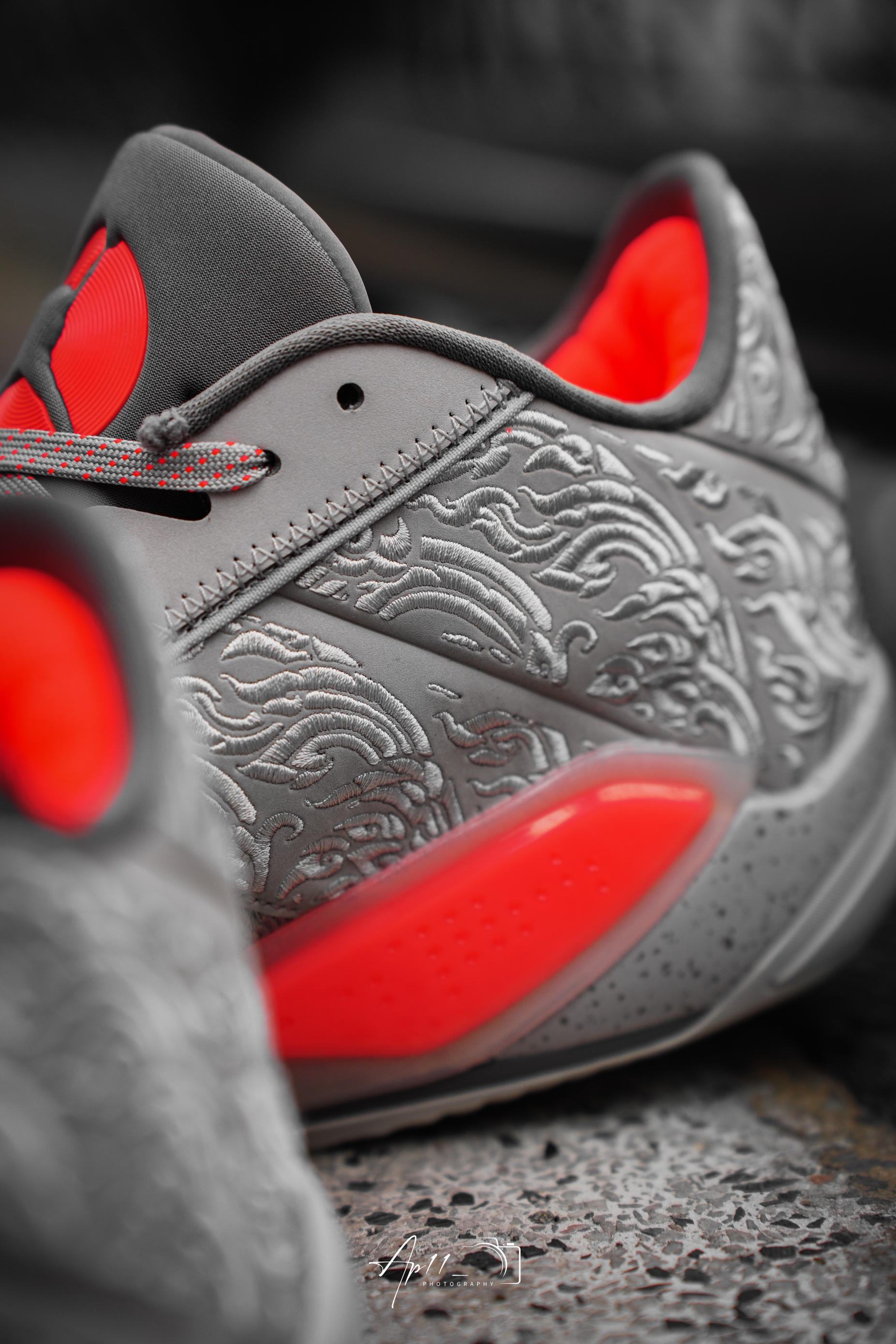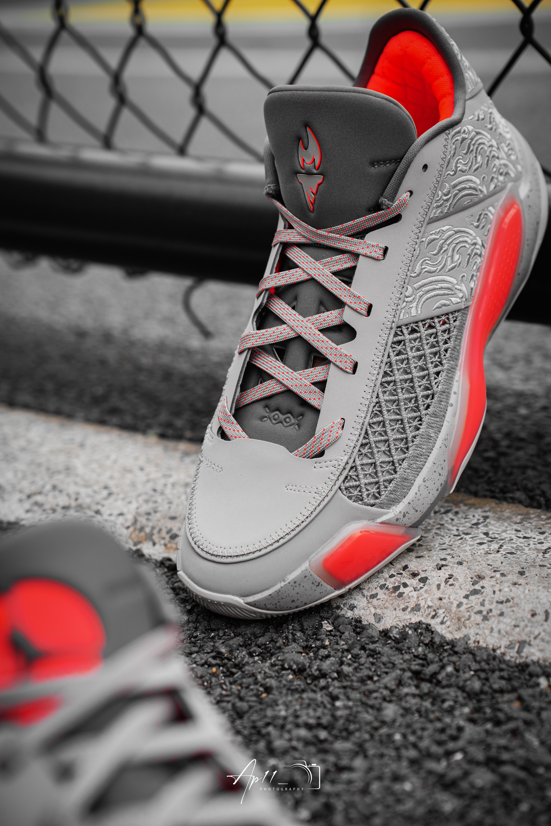 此次为大家带来的这款 Air Jordan 38 Low Torch 的设计灵感来自即将在今年夏天迎来的巴黎奥运会。整双鞋选用类似水泥灰色巧搭深红色进行呈现,带来别样的运动时尚属性。与此同时,印在鞋舌上的火炬图案点明巴黎奥运会主题。另一方面,出现在鞋身上的刺绣工艺设计再度将火焰图案进行呈现。最后在中底位置缀有水泥灰色的斑点细节。