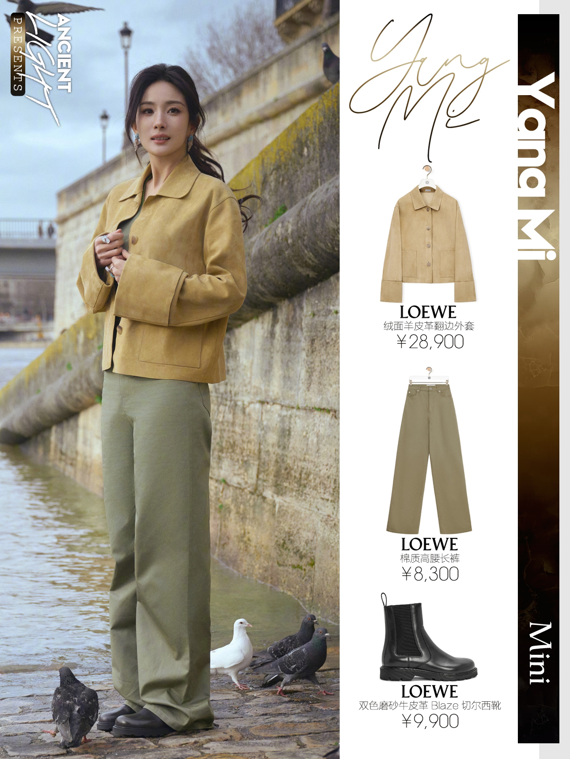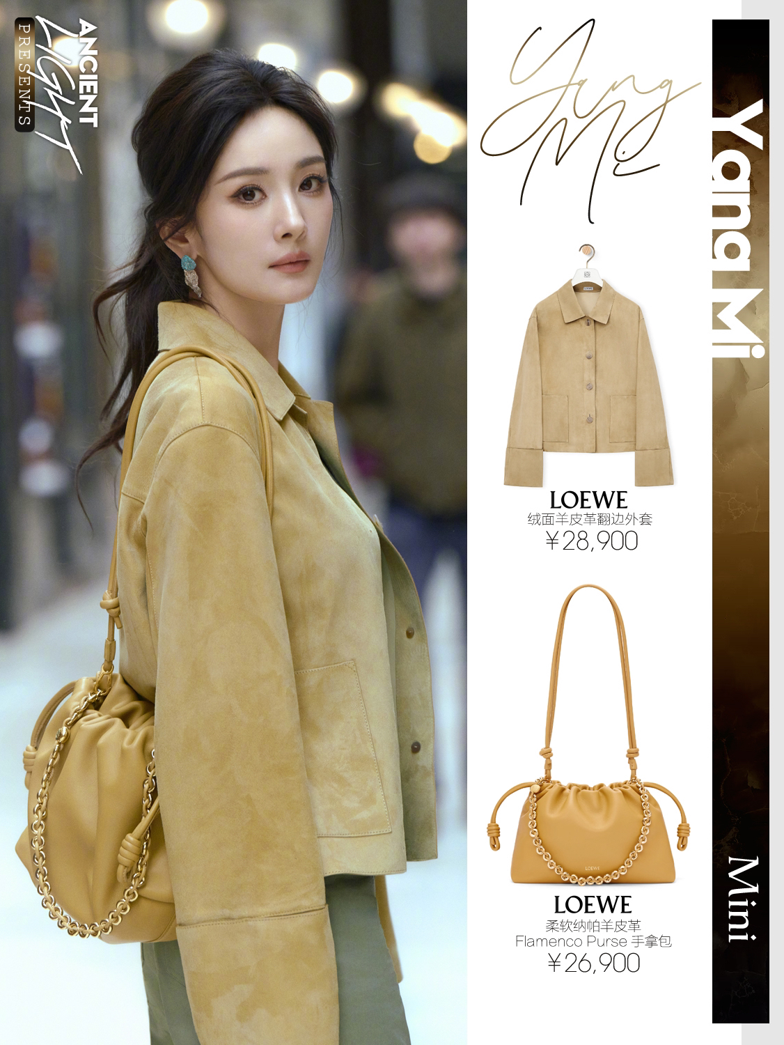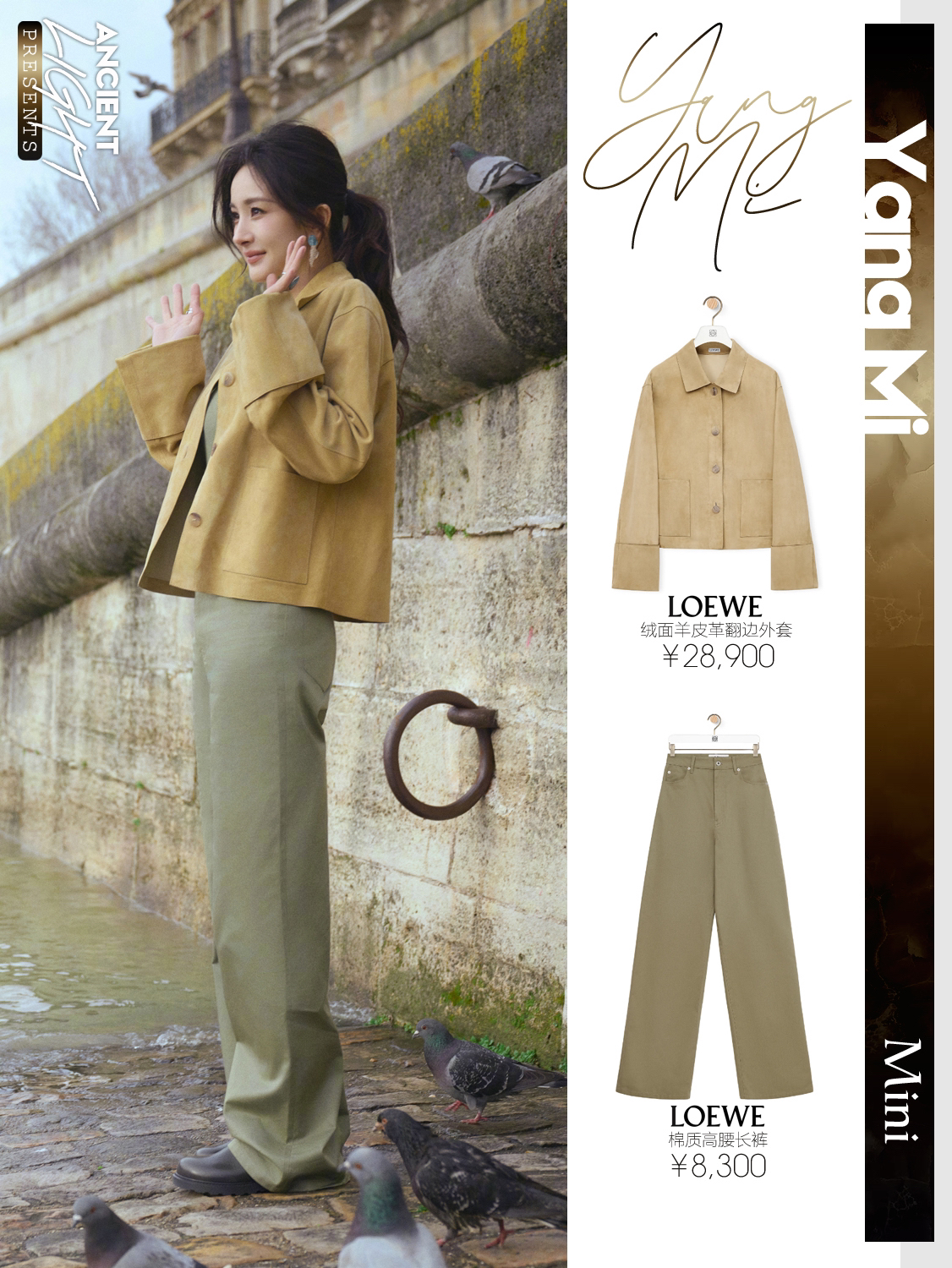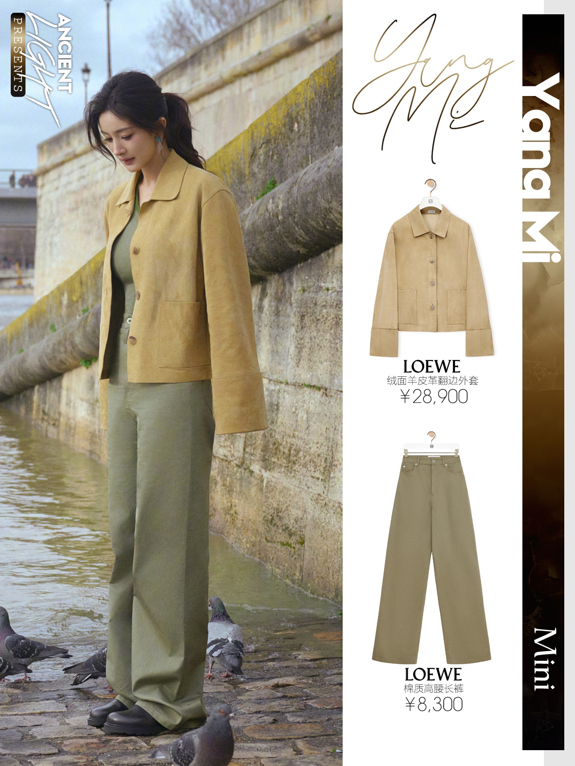 真真儿只是被杨幂这一颦一笑吸引了,很松弛的美,美的很简单。又怂又可爱的大幂幂,又见月牙笑啦。 外套|LOEWE绒面羊皮革翻边外套 货号S359Y19LA0 背心|LOEWE丝绸背心上衣 货号S540Y23X30 长裤|LOEWE棉质高腰长裤 货号S540Y04XHI 手袋|LOEWE柔软纳帕羊皮革 Flamenco Purse 手拿包 货号A411FCRX02 鞋履|LOEWE双色磨砂...