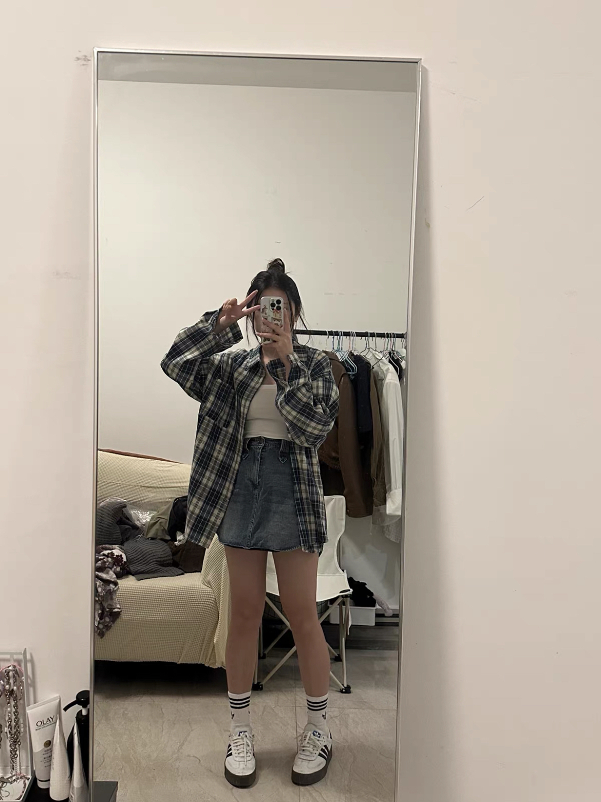 真的很爱各种格子衬衫。格子元素的单品一直都是四季常穿款。上身一件浅色系的格子衬衫外套,颜色自带氛围感,而且不会呆板。版型宽松,秋冬保暖的话内搭保暖衣也没有问题。搭配一条黑色牛仔裤就不会像蓝色裤子那么普通。 (图片来自网络,侵删)