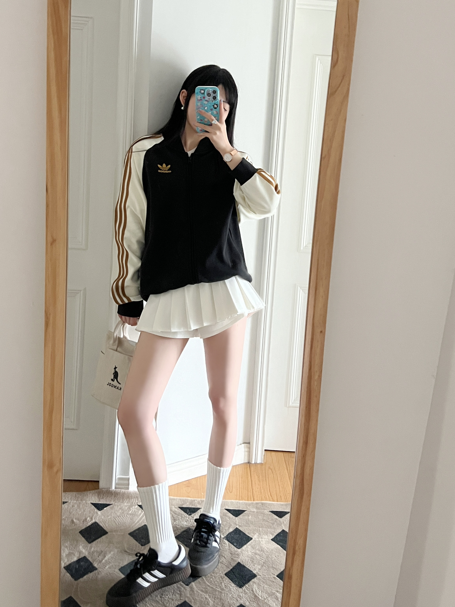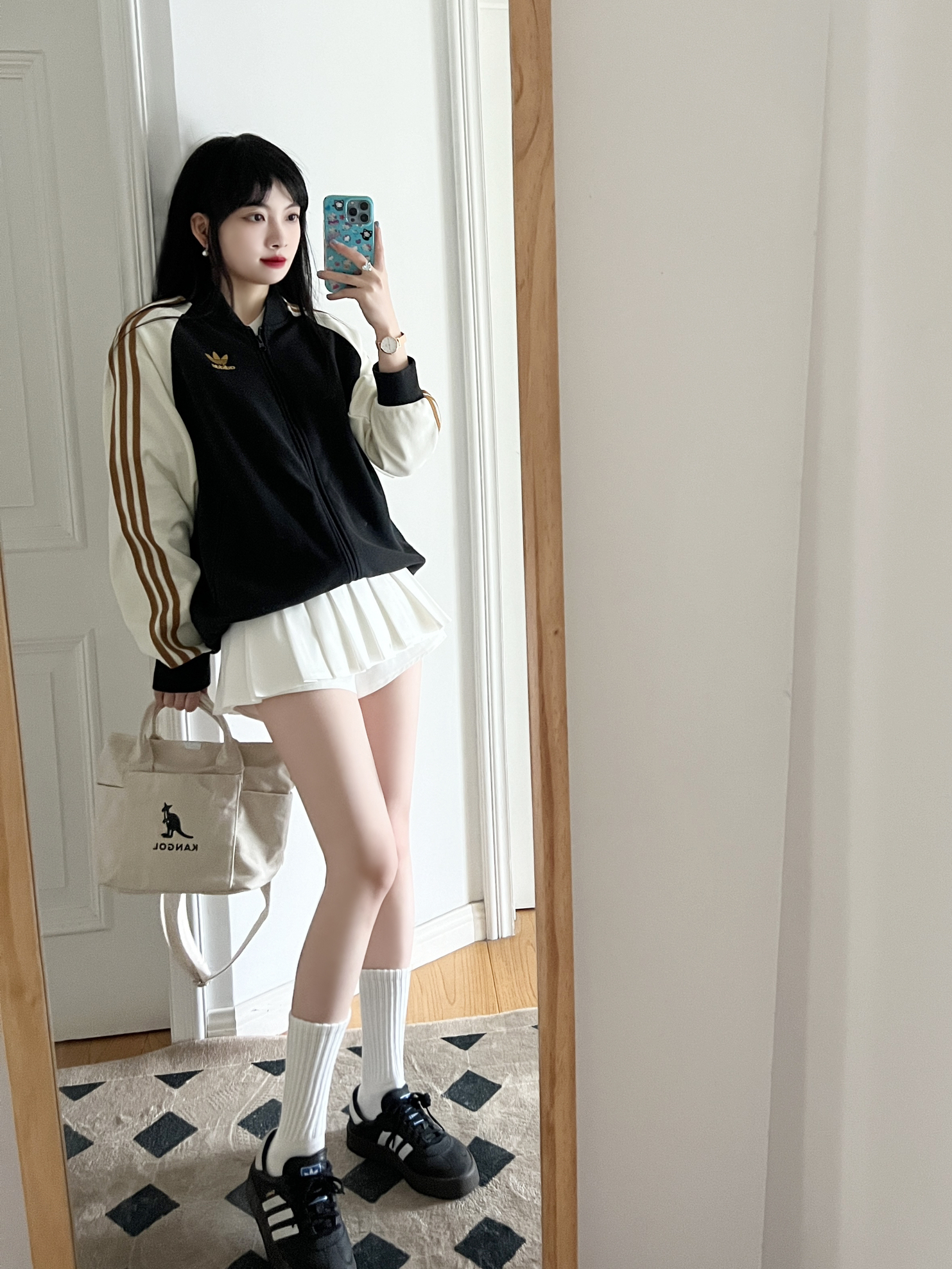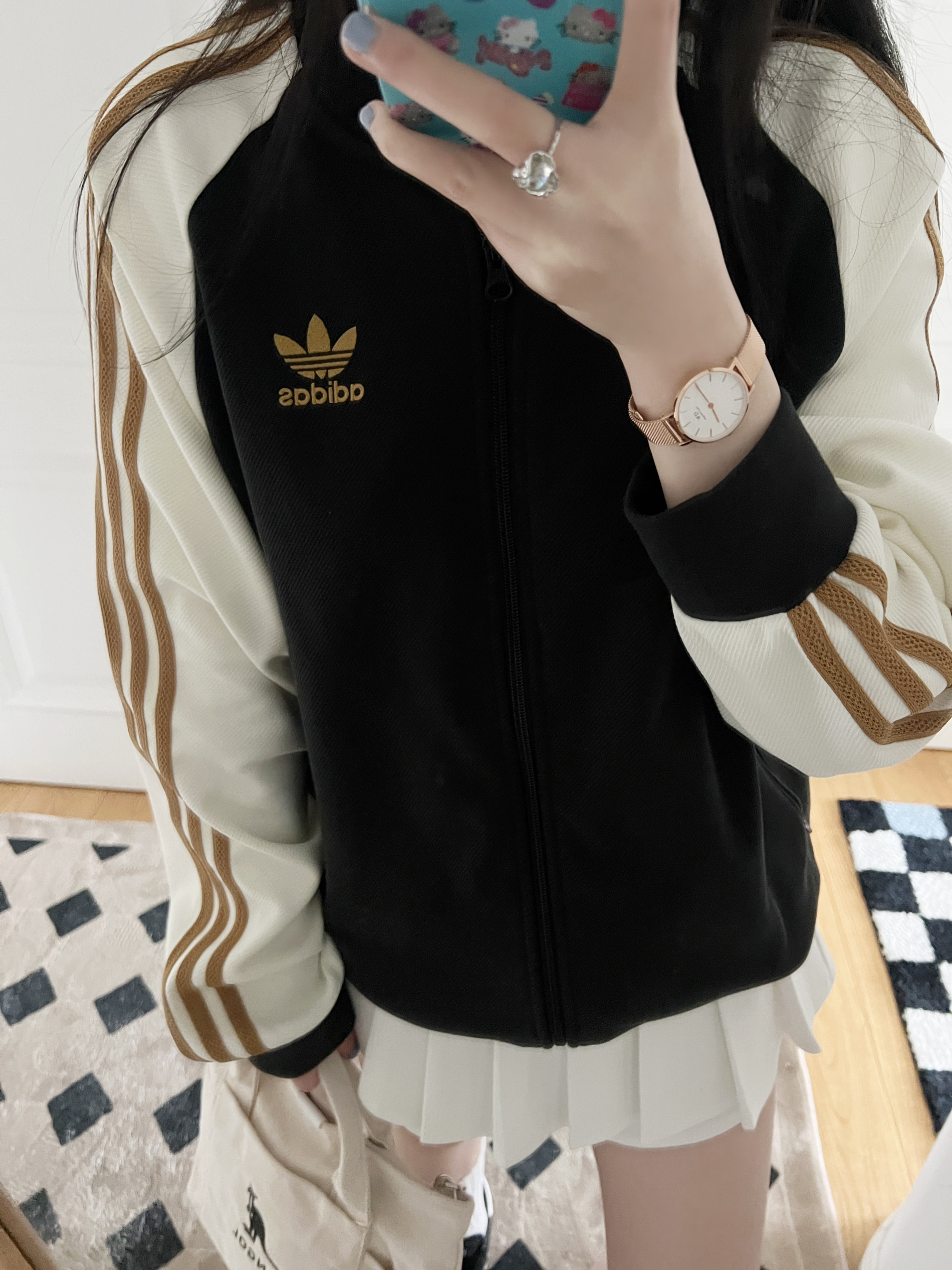 今日份的adidas girl穿搭来啦❕ 美式复古外套🎧➕白色学院风百褶裙🤍 是酷飒女孩氛围感的一套🦋 春日里简单随性的cleanfit~