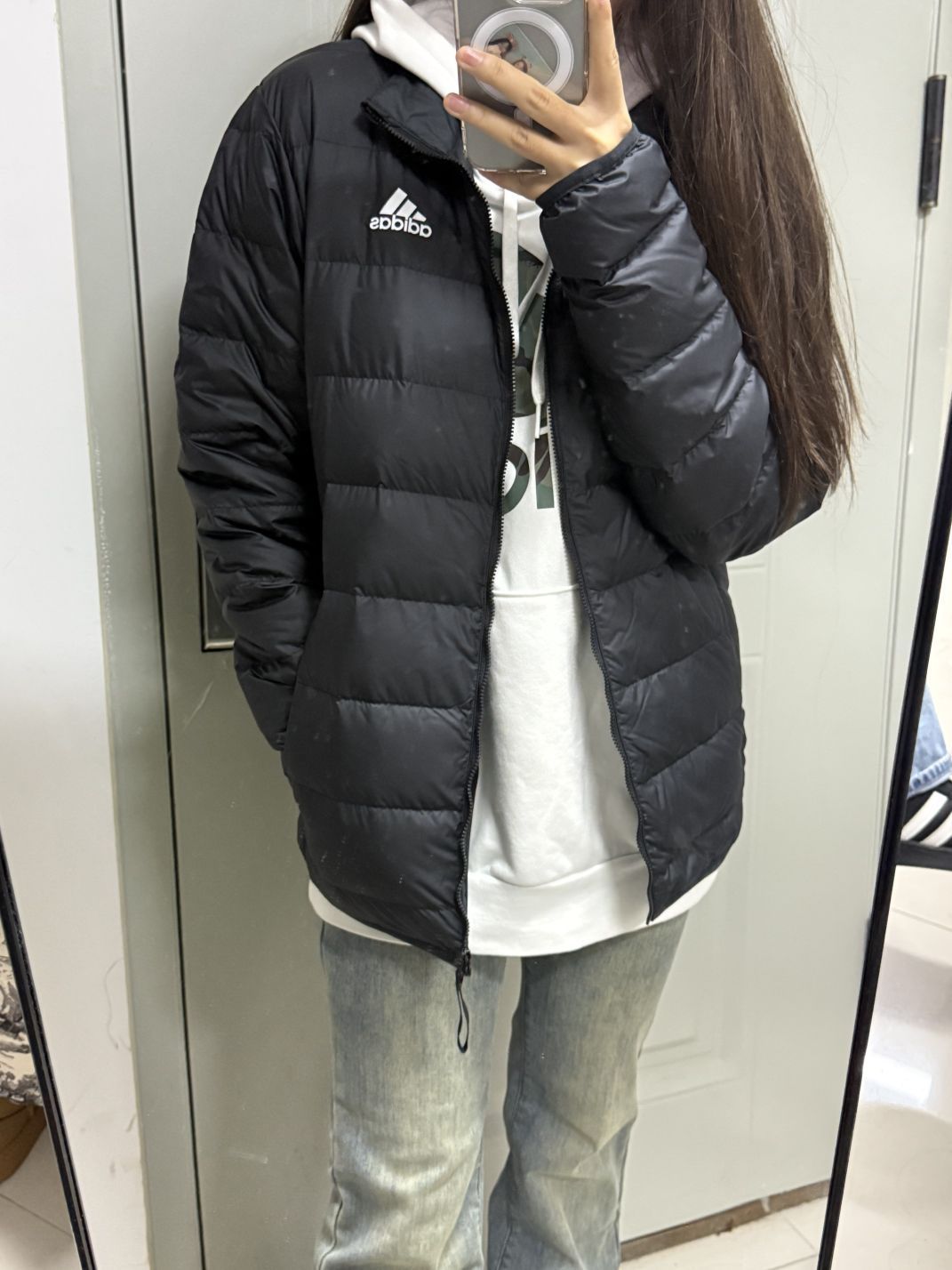 Adidas三条纹鸭绒羽绒服,奶白色的颜色真的太好看了。