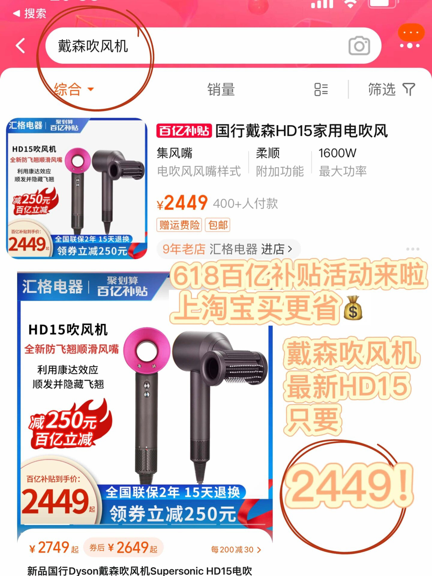 作为一个博主,平时有很多上镜的需要,对于发型的要求真的很高,而且现在夏天到了,和姐妹们总约着一起出去拍照,那肯定要精致啦~ 前几天逛🍑时看到我最爱的戴森吹风机已经出到HD15啦,正好赶上618百亿补贴的活动,疯狂心动!我对比后发现还是淘宝的力度最有诚意,并且都是正品大牌口碑好物,趁着优惠入手不香嘛!!! 我自己用的蕞多的就是✨戴森的吹风机,可以说是忠实用户了,说实话,虽然价格有点贵,但是好用是真...