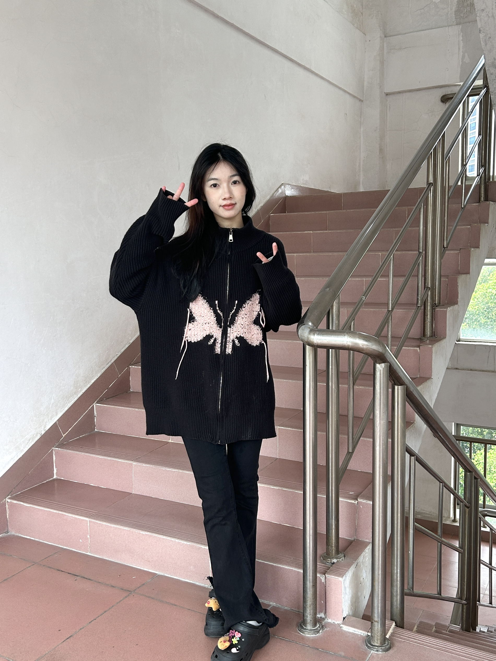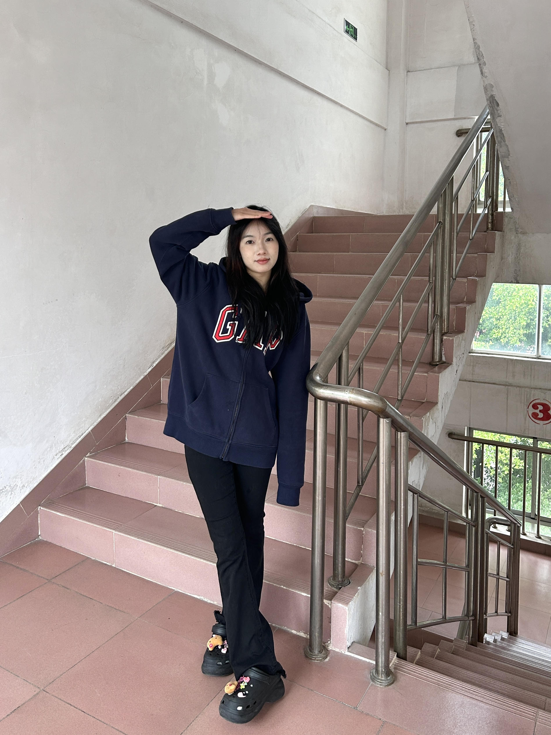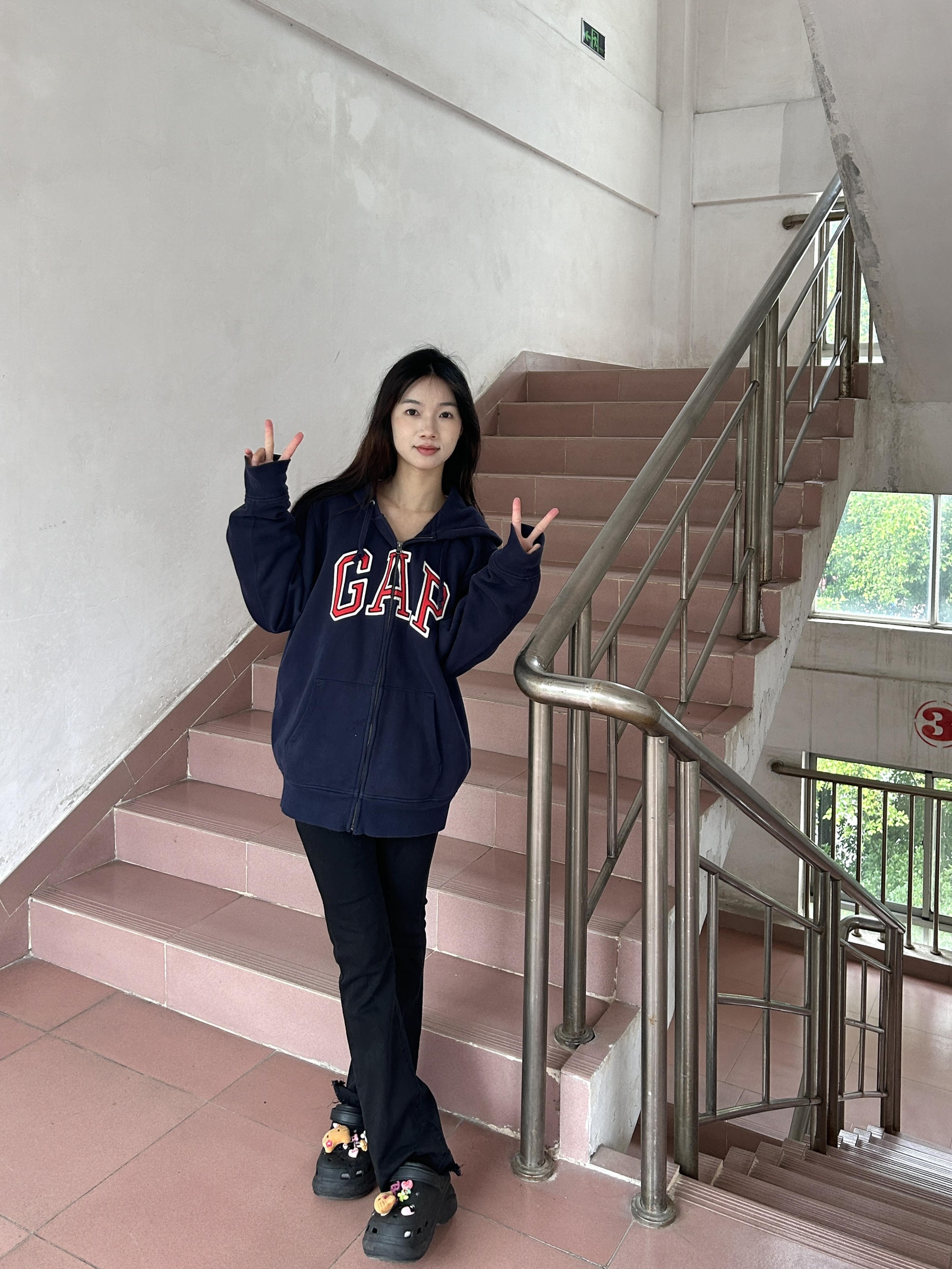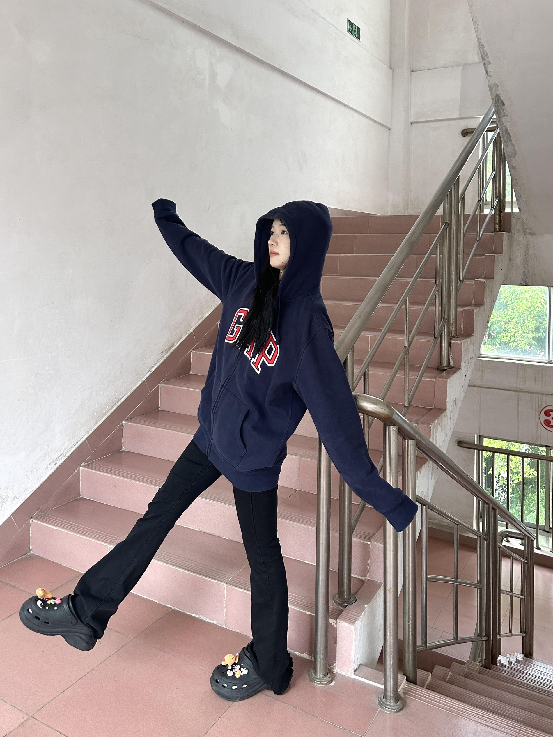 160/42. 第一套是gap家的藏蓝色连帽卫衣, 我冬天的穿搭单品 百搭日常 我拍的是m码版型很好看 上身体效果不错😌 第二套是蝴蝶🦋毛衣外套 搭配黑色牛仔裤 好显瘦🥳