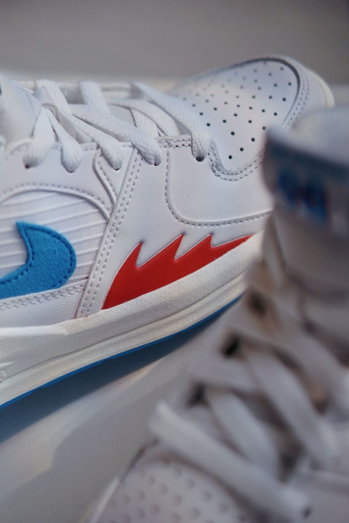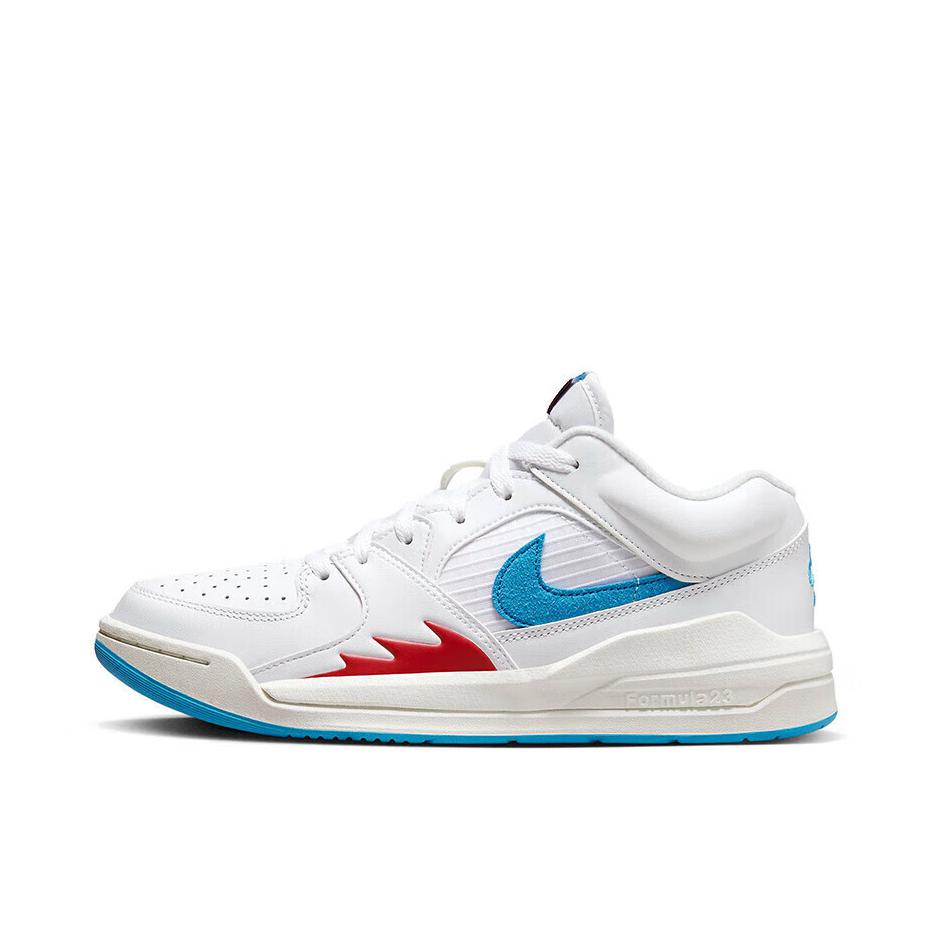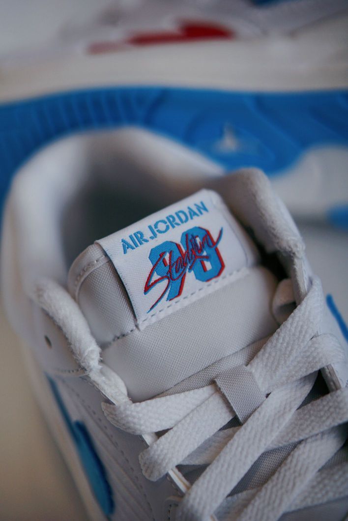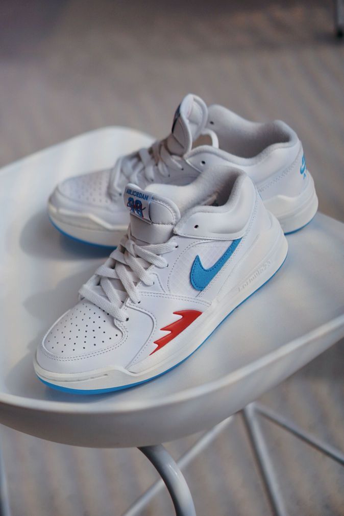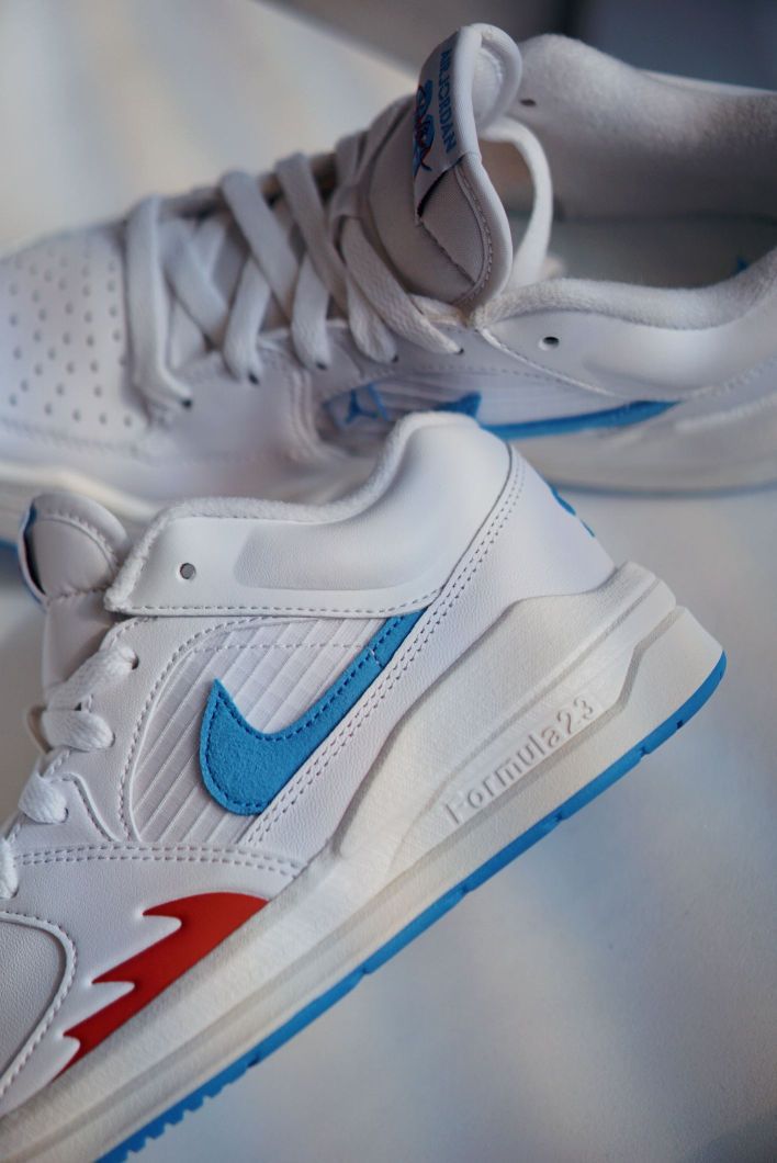 不俗的颜值 经典的设计元素 都是STADIUM值得称道的点 融合AJ1和AJ5的经典元素 并且在中底使用了FORMULA23泡绵 让这双板鞋的脚感也是不错的 这双新配色全白鞋身加持 点缀红蓝细节很有UNION的感觉