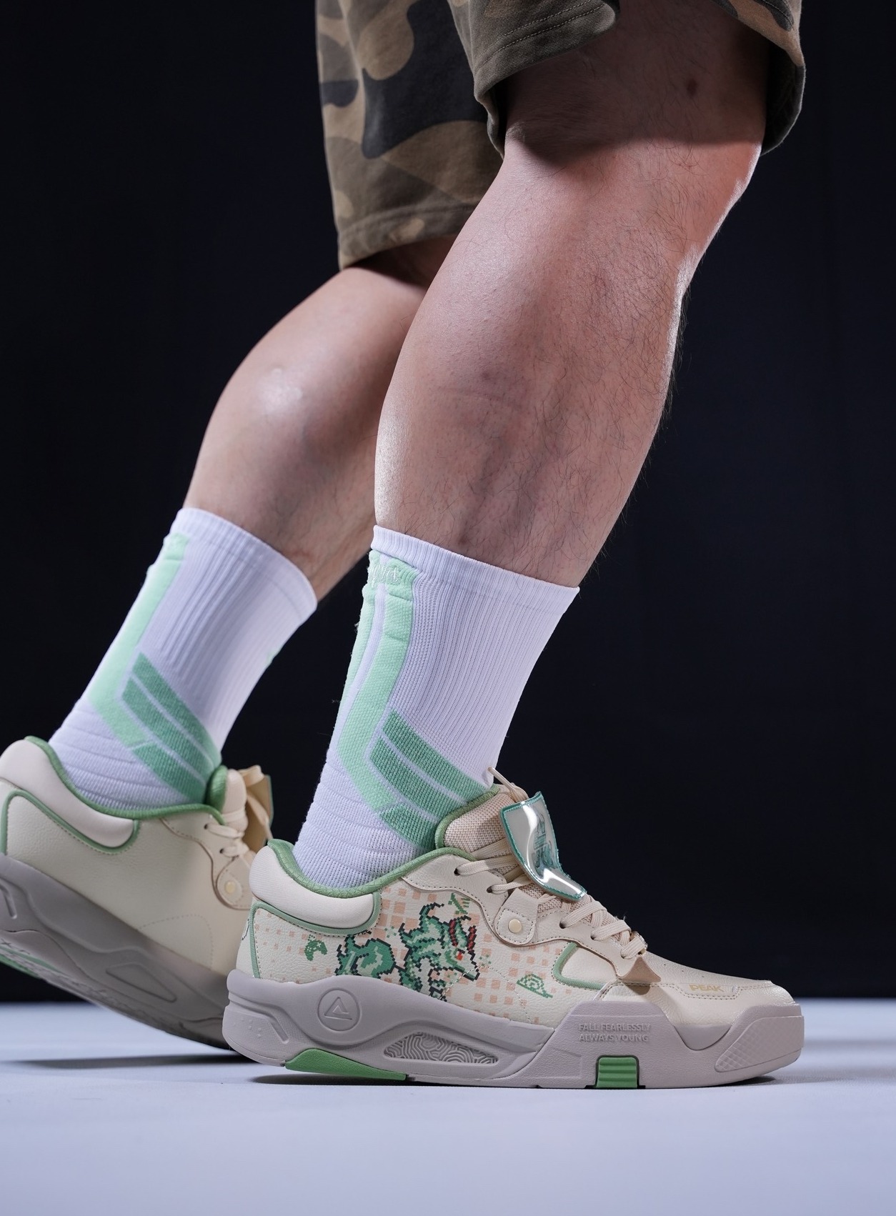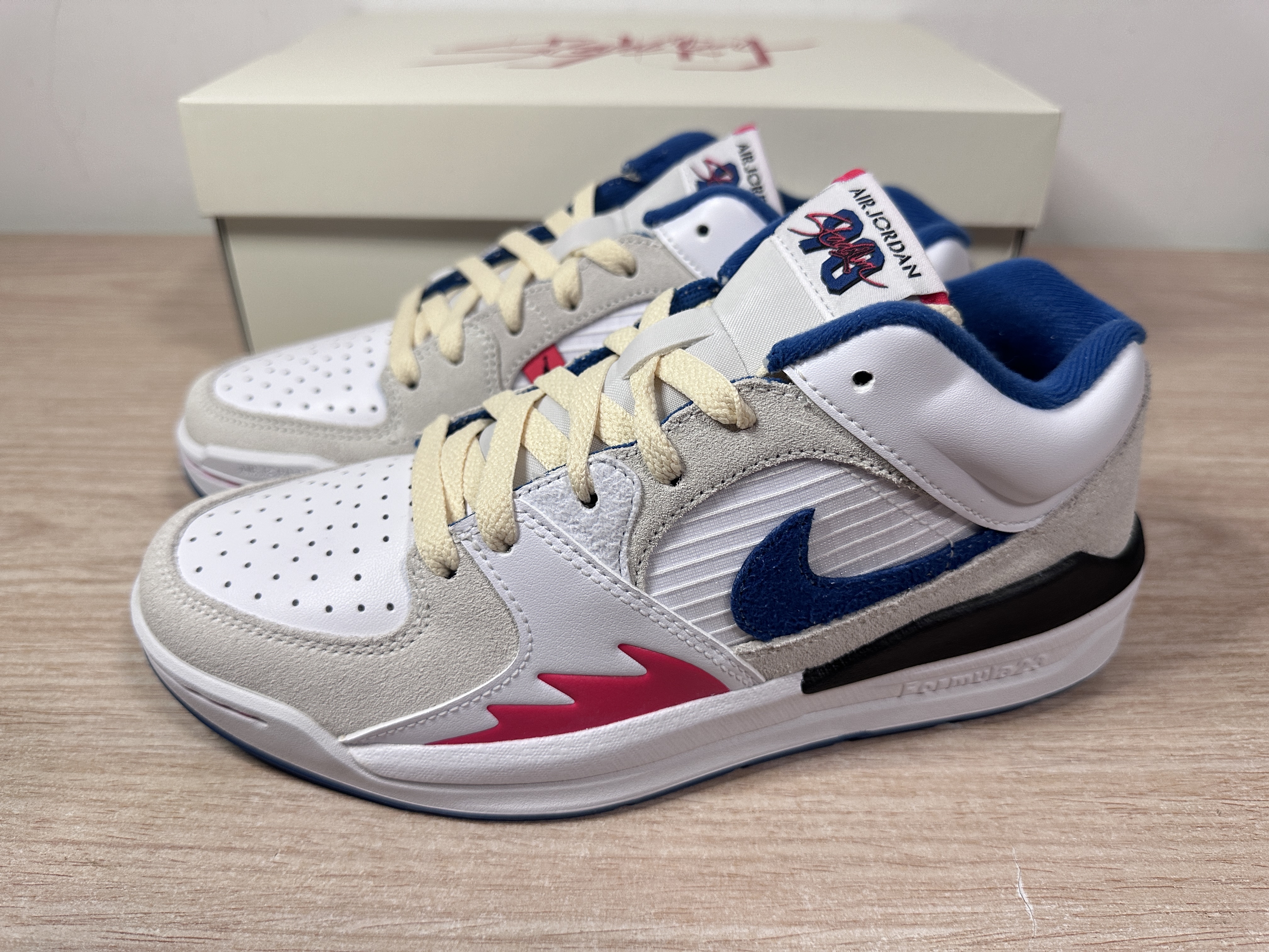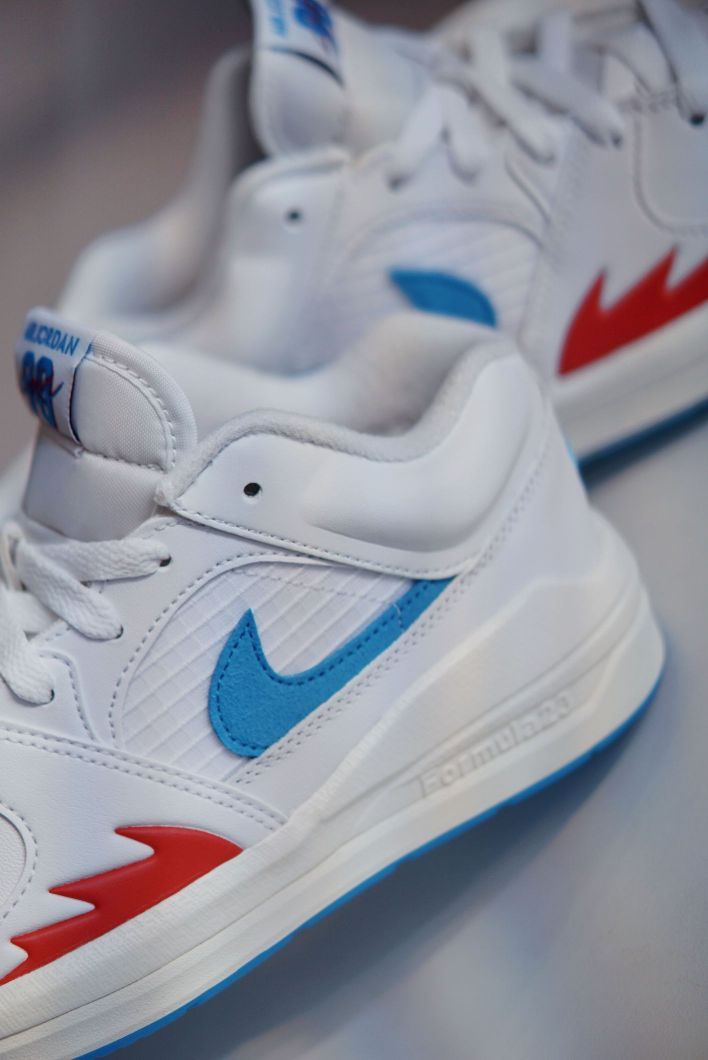 不俗的颜值 经典的设计元素 都是STADIUM值得称道的点 融合AJ1和AJ5的经典元素 并且在中底使用了FORMULA23泡绵 让这双板鞋的脚感也是不错的 这双新配色全白鞋身加持 点缀红蓝细节很有UNION的感觉