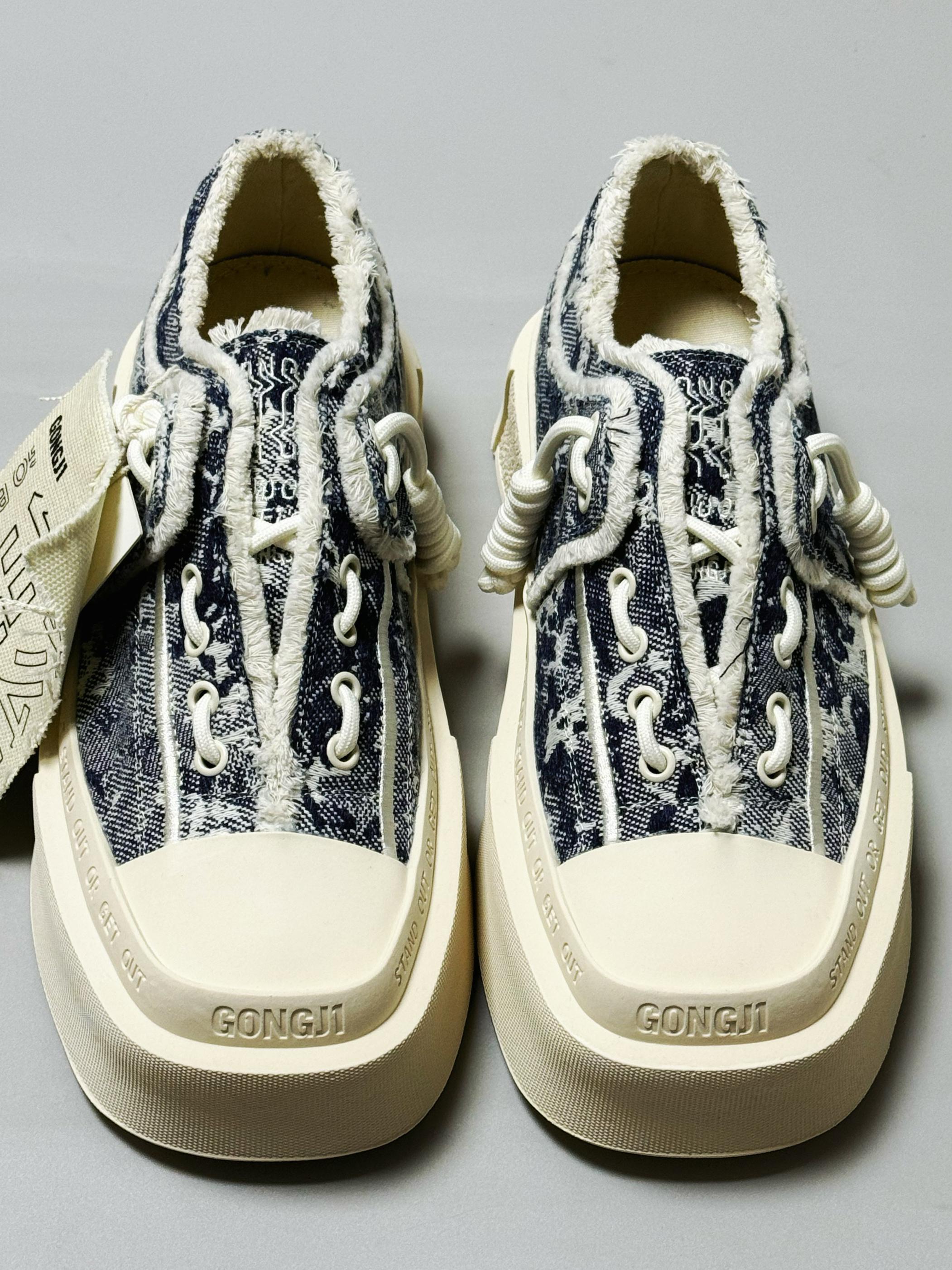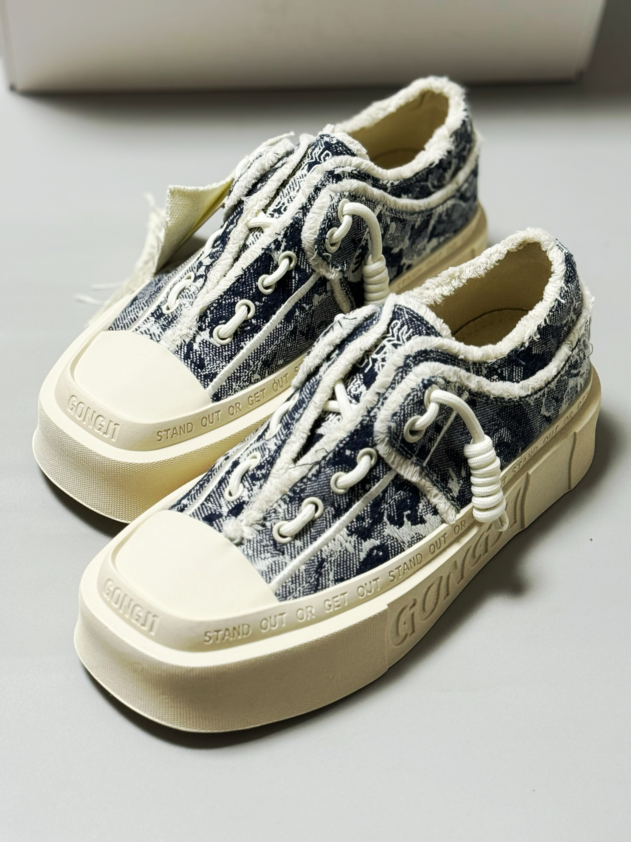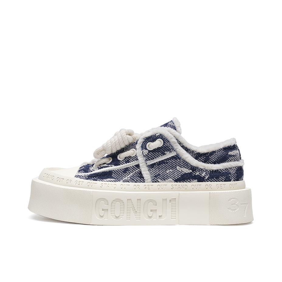 halo 阿迪来了,本期分享的潮鞋是这双来自 GONGJI 🏠的方寸之地厚底复古增高板鞋! 整双鞋子外观以白蓝色为主色调,鞋面部采用织物材质搭配做旧风!上脚质感透气都很不错! 方形鞋头设计潮流时尚感拉满! 另外这款鞋虽然有鞋带 但是却是做的一个“免系一脚蹬”的设计,对于我们这种“懒人”真的是既方便又时尚!直接上脚,同时也不会出现掉跟的情况 ! 最后这加厚中底增高效果也太明显!目测至少3-5cm日...