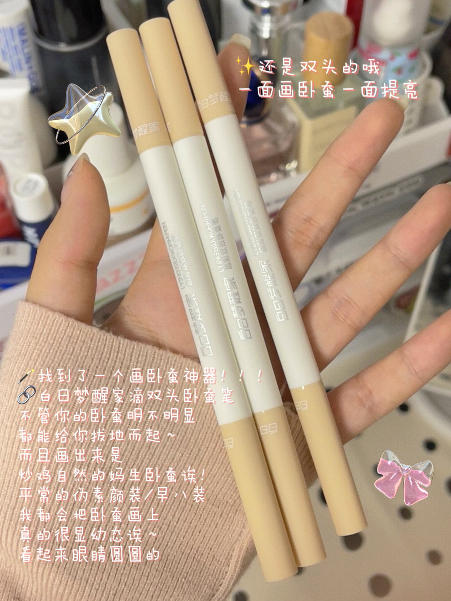 本篇笔记关联了白日梦醒家 晶彩双效卧蚕笔 两用 0.8g #D001 嘭嘭惹人怜-哑光、可复美 吨吨小水膜透明质酸钠藻萃盈润面膜 保湿补水舒缓焕亮敏感肌肤 2.0 补水修复、白日梦醒家 晶彩双效卧蚕笔 两用 0.8g #D002 嗲嗲小哭包-哑光等商品,为用户提供真实的使用体验和购买参考。