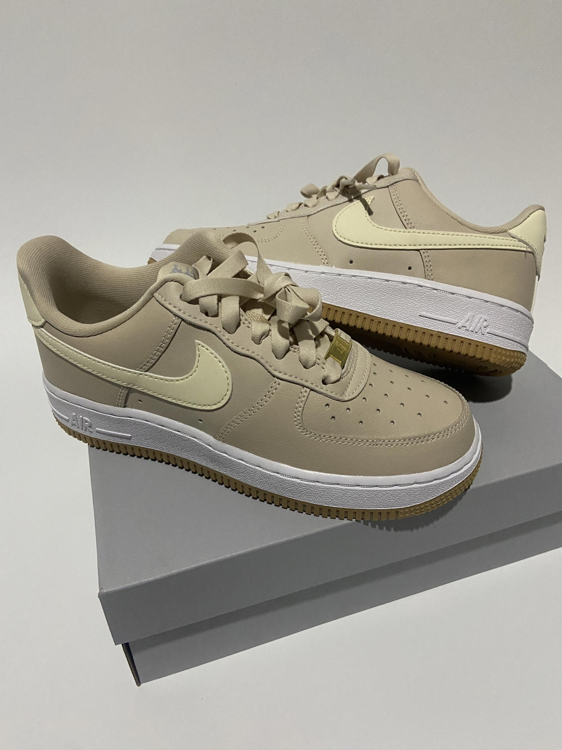 一直觉得 A F 1 很神秘也很特别 但是特别在哪里,我也说不上来 大家的鞋柜里好像都有一双af1 好穿是真的好穿,还有很好的增高效果 平时搭配牛仔裤,休闲裤都可以让你秒变靓仔 就这中底的厚度,阴雨天气咱也不怕🤣🤣 这双奶茶色给我一种奶里奶气的感觉 这个鞋带的材质好像丝绸啊,摸起来特别顺滑🥰 我不管你们,我先冲了😜😜